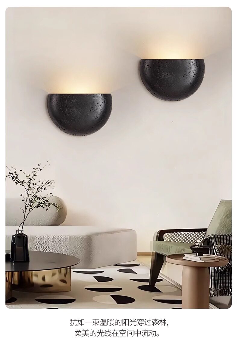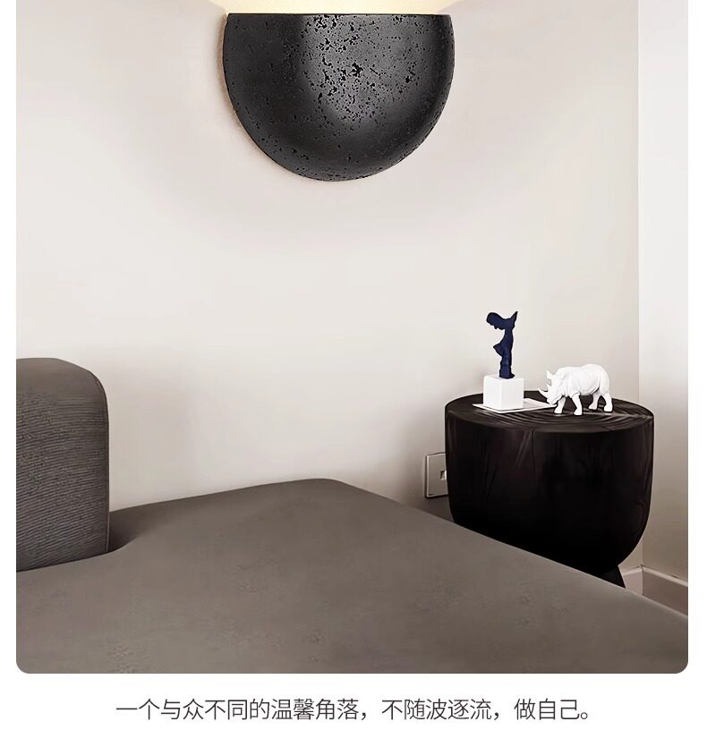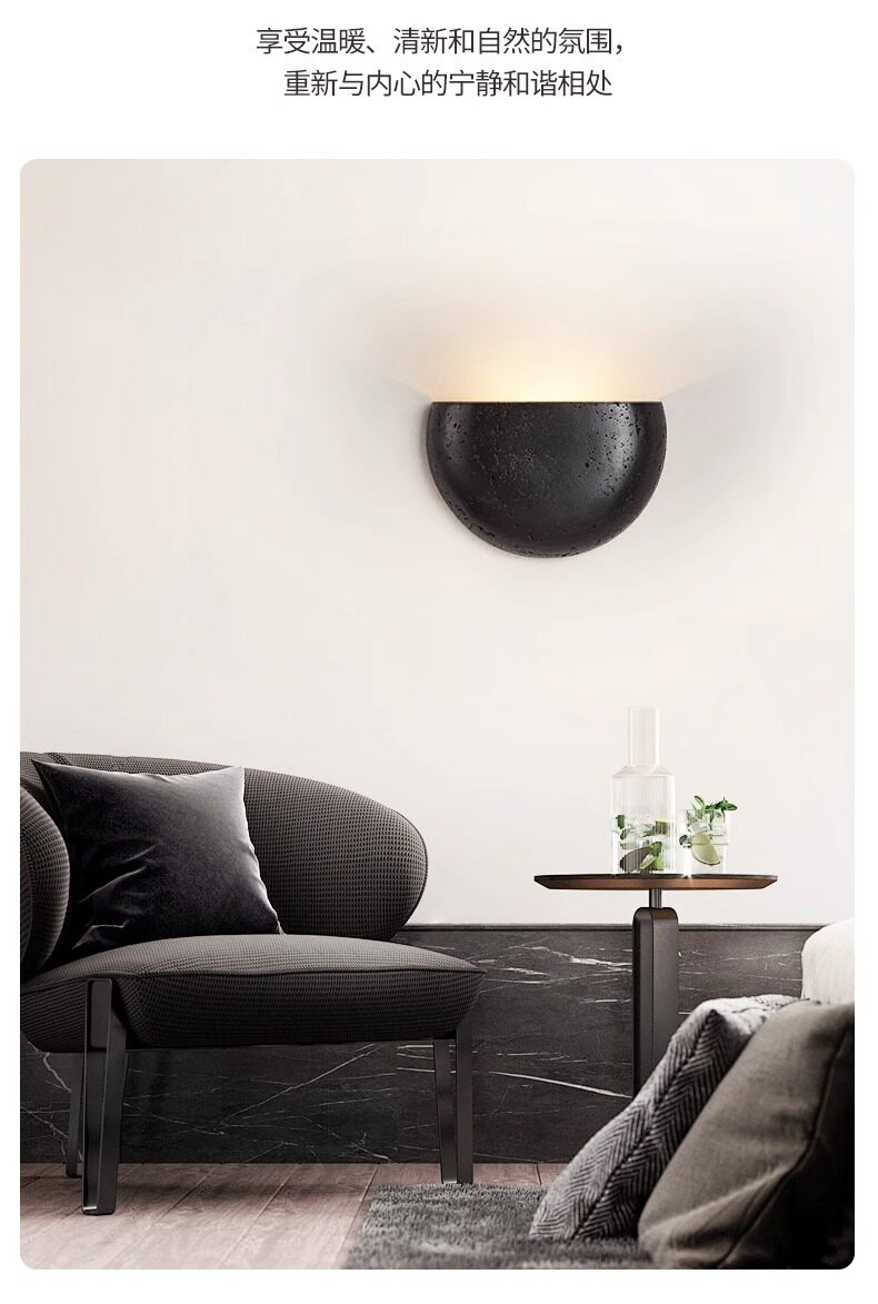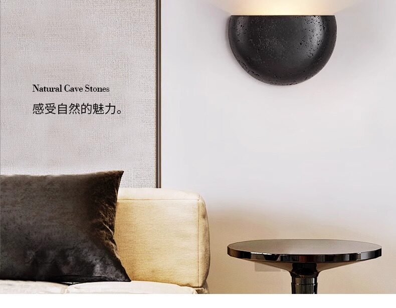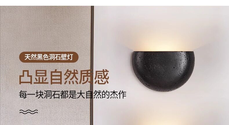 Black Hole Stone Vintage Retro Living Room Bedroom Bedside Wall Lamp Wabi-Sabi Niche Entryway Corridor Homestay Cafe Lighting Fixtures