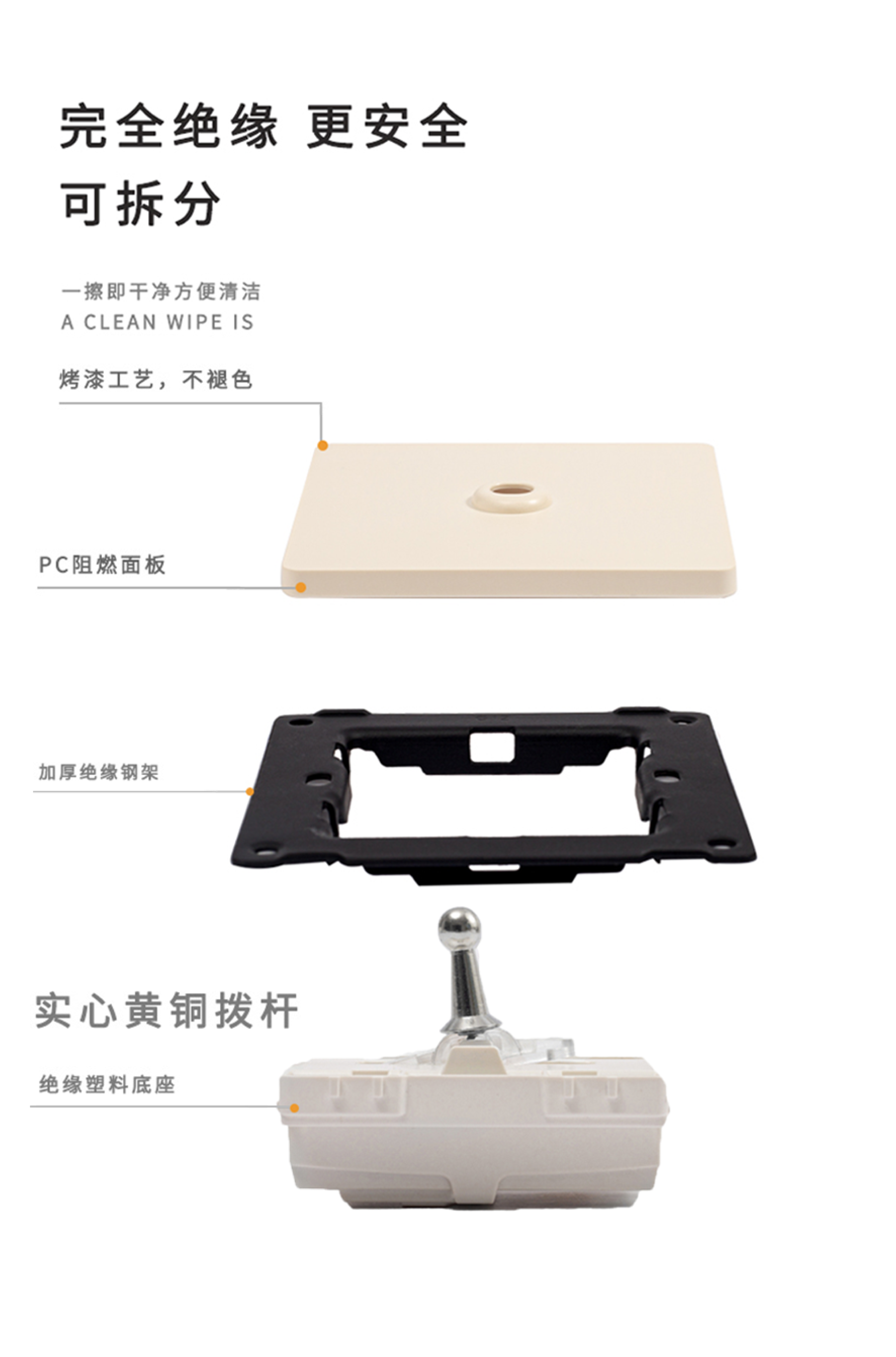 | Color Classification | One-On-Two Control, Single/Dual Control Universal (Silver Lever),Dual-Pole Dual-Throw (Dpdt) - Compatible with Single/Dual Control (Silver Lever),Three-Way, Dual-Control, Compatible with Single/Dual Control (Silver Lever),Four-Way, Dual-Control, Compatible with Single/Dual Control (Silver Lever),One Opening with Five Holes (Silver Rod),One-On-Multiple-Control (Mid-Route Switch) Silver Lever,Dual Control (Silver Lever),Five Hole Socket,Inclined Five Holes (Misaligned Five Holes),Four-Hole Socket,Seven-Hole Socket,16A Three-Hole Air Conditioning Socket,20W Fast Charging Five Holes (Type-C),Category 6 Gigabit Ethernet,Tv,Tv Computer,Phone Computer,Phone,Dual Computers,Cover,Alarm Switch,Threading Panel,Infrared Foot Lamp,Nine-Hole Socket,Twelve Hole Socket,Single-Pole 16A Three-Prong Air Conditioner Socket |