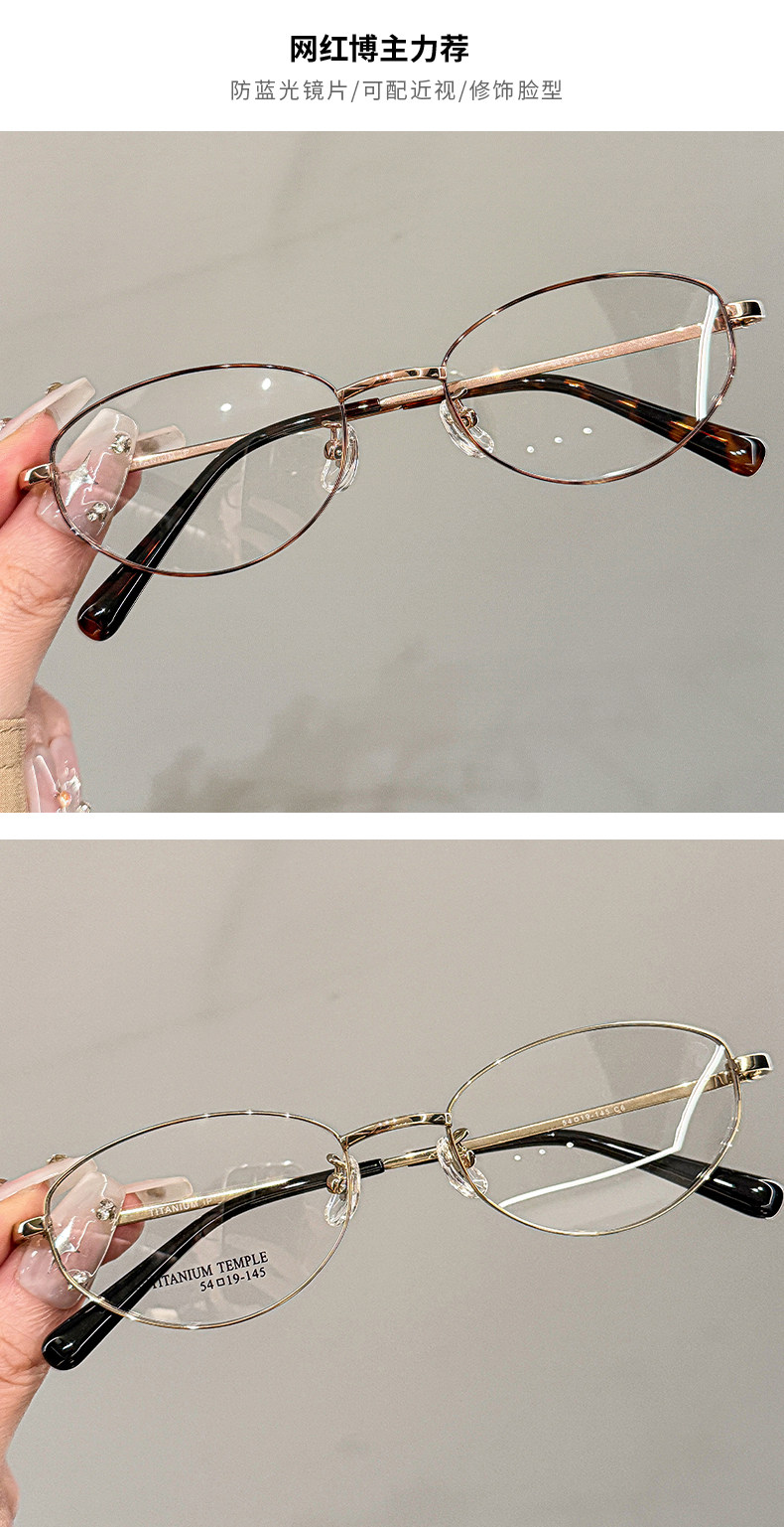 Elegant High-Tech Oval Half-Rim Glasses for Women, Ultra-Light Titanium Material, Can Be Customized with Prescription Lenses, Natural Look, Enhances Temperament, Blue Light Blocking Eyeglass Frame