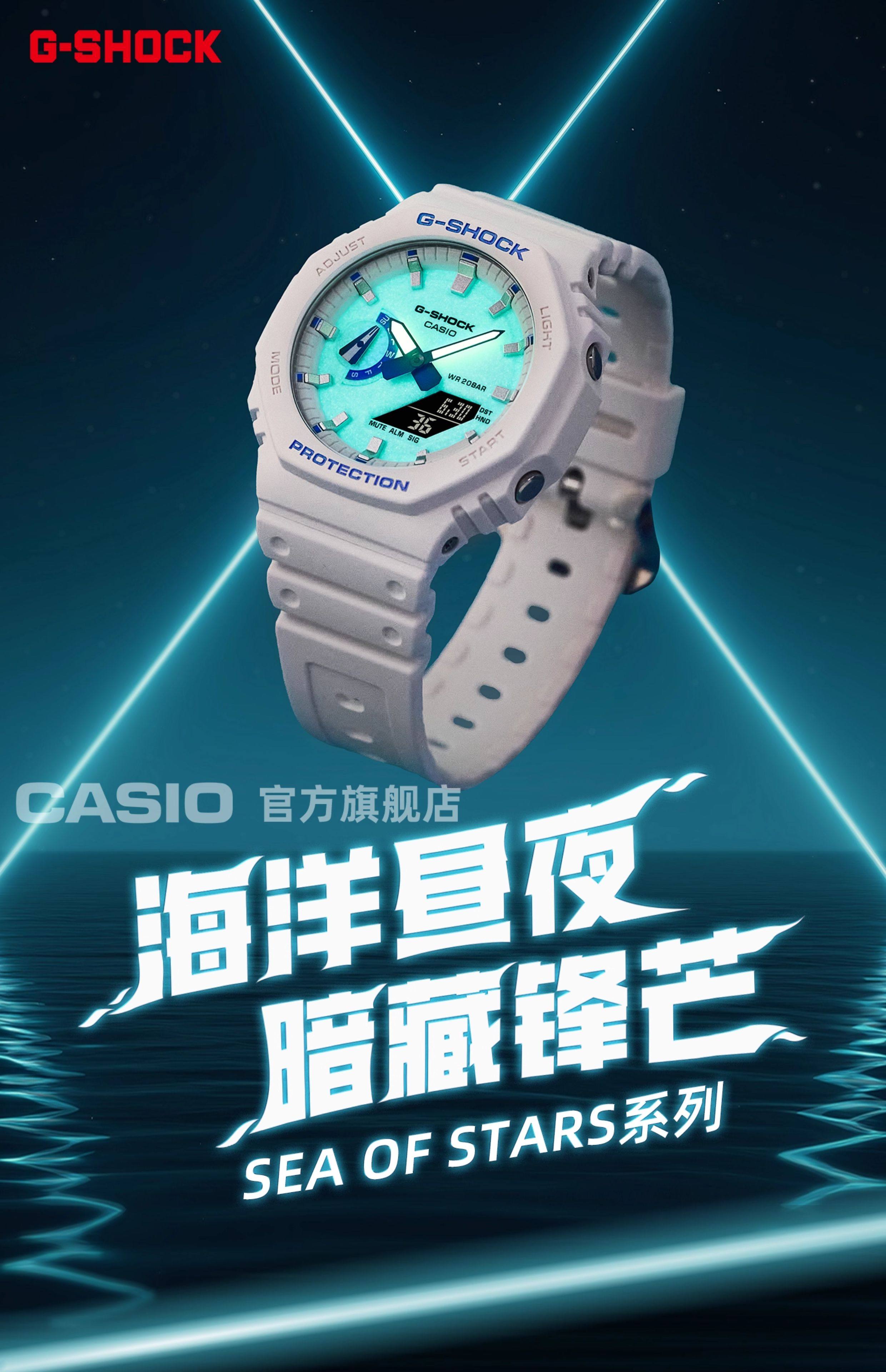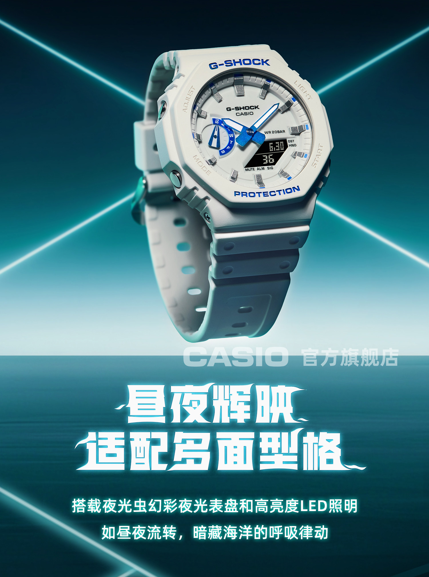 [New Year's Gift] Casio Official official store Dark Night Fluorescent Second Edition Octagonal Watch for Men G-Shock