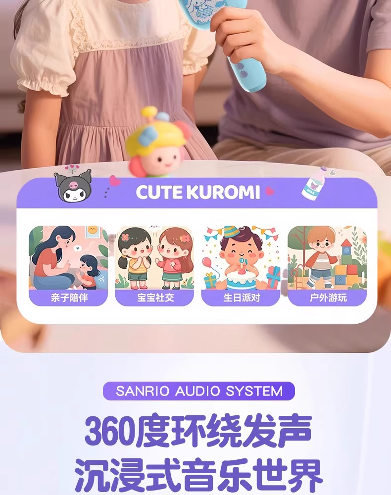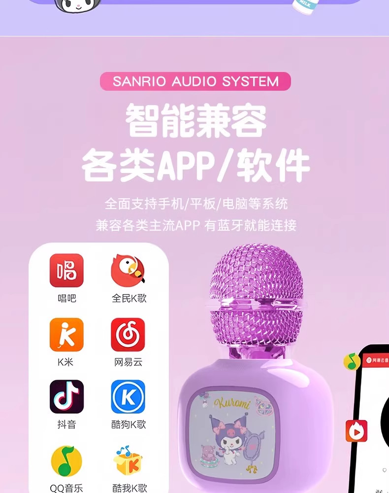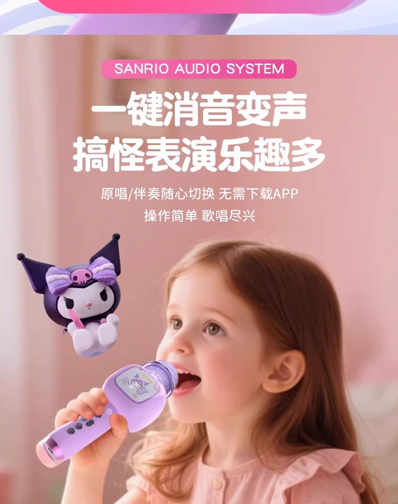 Kuromi Children's Small Microphone with Integrated Speaker for Karaoke Singing, Baby Music Singing, Early Education Toy