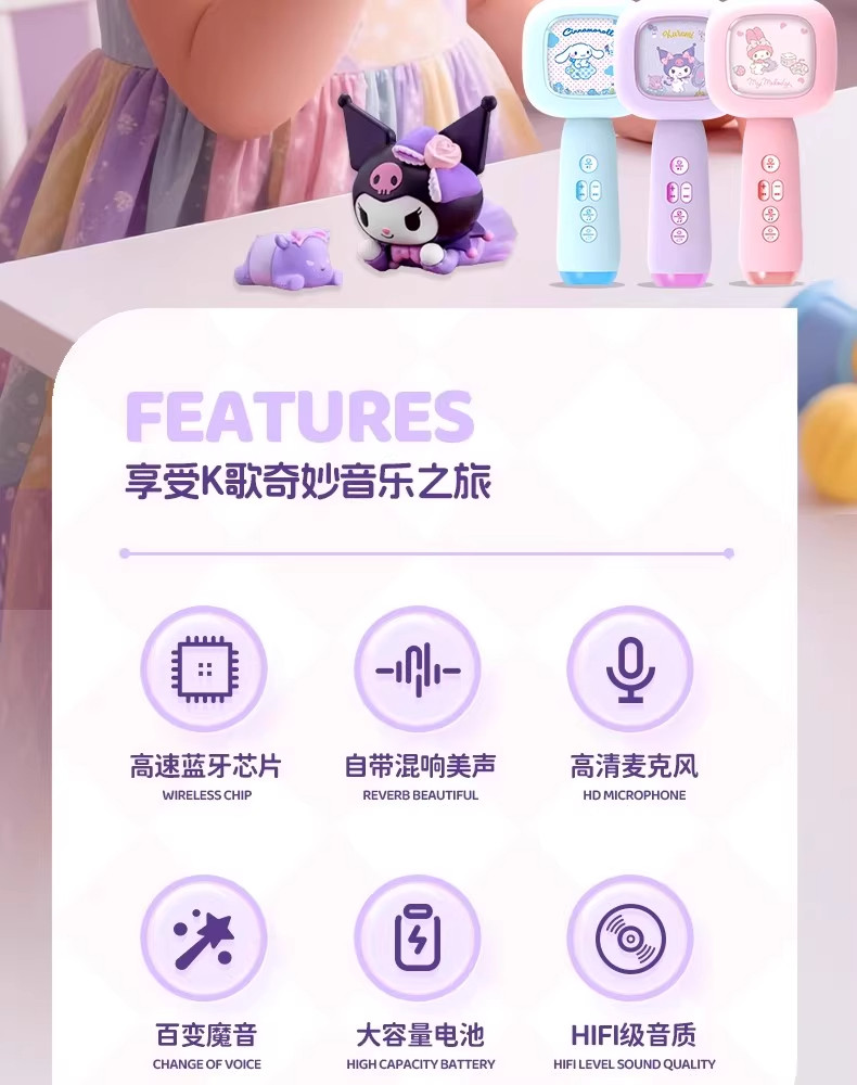 | Color Classification | Official Authentic - New Kuromi (Dual Machine Interconnection + Bluetooth + Singing + USB Charging),Official Authentic - New My Melody (Dual Machine Interconnection + Bluetooth + Singing + USB Charging),Official Authentic - New Cinnamoroll (Dual Device Interconnect + Bluetooth + Singing + USB Charging),Official Authentic - New Kuromi + 8Gb Memory Card + 1500 Content (Dual Machine Interconnection + Bluetooth + Singing + USB Charging),Official Authentic - New My Melody + 8Gb Memory Card + 1500 Songs (Dual Machine Interconnection + Bluetooth + Singing + USB Charging),Official Authentic - New Cinnamoroll + 8Gb Memory Card + 1500 Content (Dual Machine Interconnection + Bluetooth + Singing + USB Charging),Official Authentic - Kuromi (Dual Machine Interconnection + Bluetooth + Singing + USB Charging),Official Authentic - My Melody (Dual Machine Interconnection + Bluetooth + Singing + USB Charging),Official Authentic - Cinnamoroll (Dual Device Interconnect + Bluetooth + Singing + USB Charging),Official Authentic - Kuromi + 8Gb Memory Card + 1500 Contents (Dual Machine Interconnection + Bluetooth + Singing + USB Charging),Official Authentic - My Melody + 8Gb Memory Card + 1500 Songs (Dual Machine Interconnection + Bluetooth + Singing + USB Charging),Official Authentic Cinnamoroll - Includes 8Gb Memory Card + 1500 Songs (Dual Machine Interconnection + Bluetooth + Singing + USB Charging) |