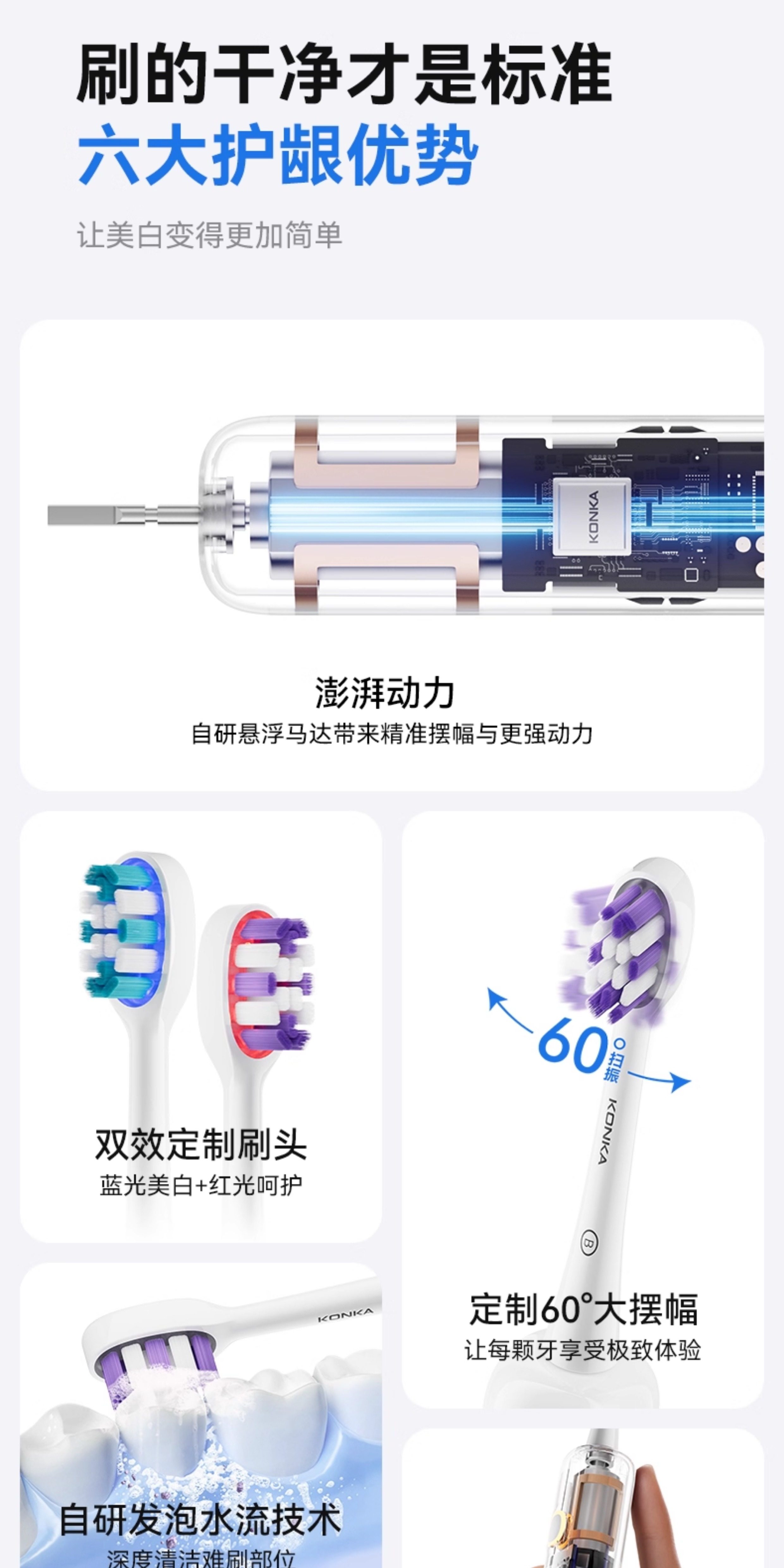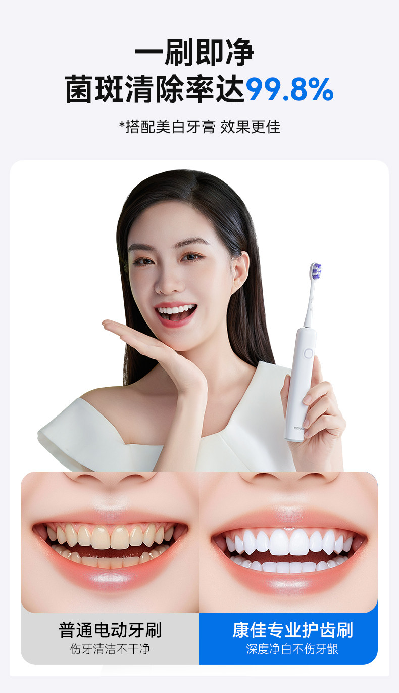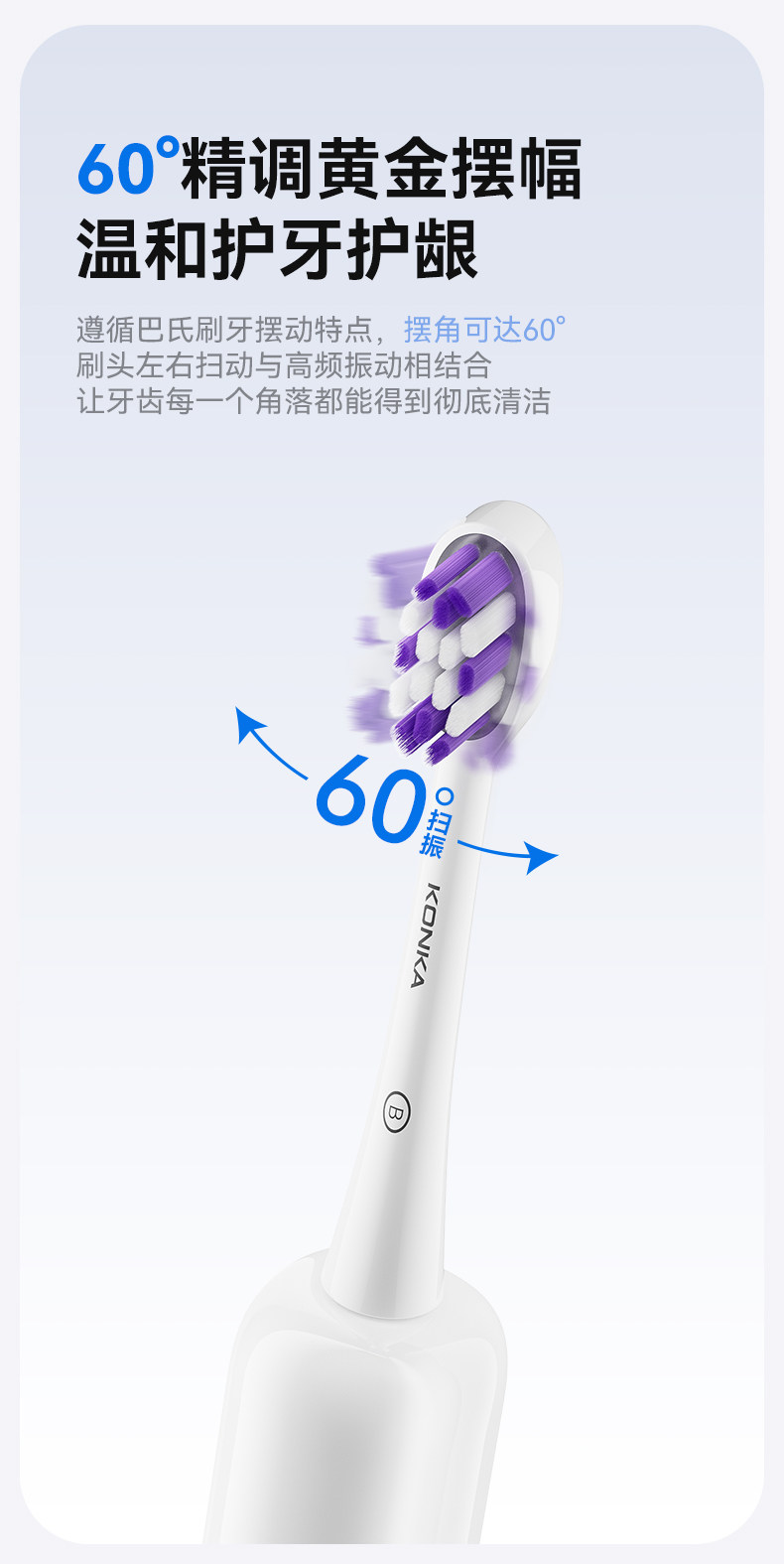 Konka Vibrating Electric Toothbrush with Soft Bristles, Smart Adult Teeth Whitening, Removes Stains, Gift for Men and Women Couples on Birthdays