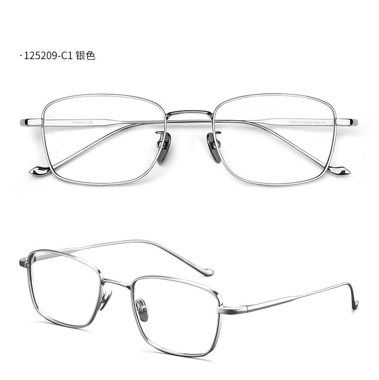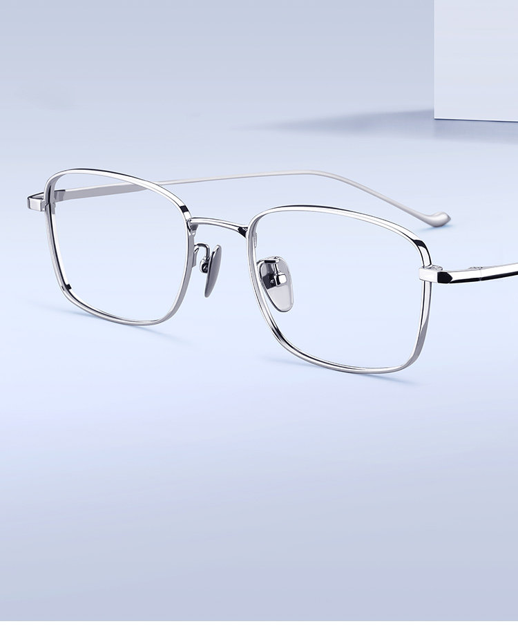 Ultra-Light Pure Titanium Myopia Glasses for Men, Customizable Prescription, Simple Silver Elegant Square Frame, Anti-Blue Light, Anti-Radiation Eyewear Frame