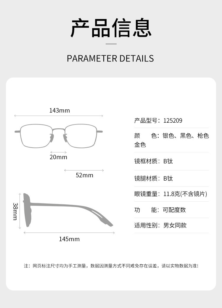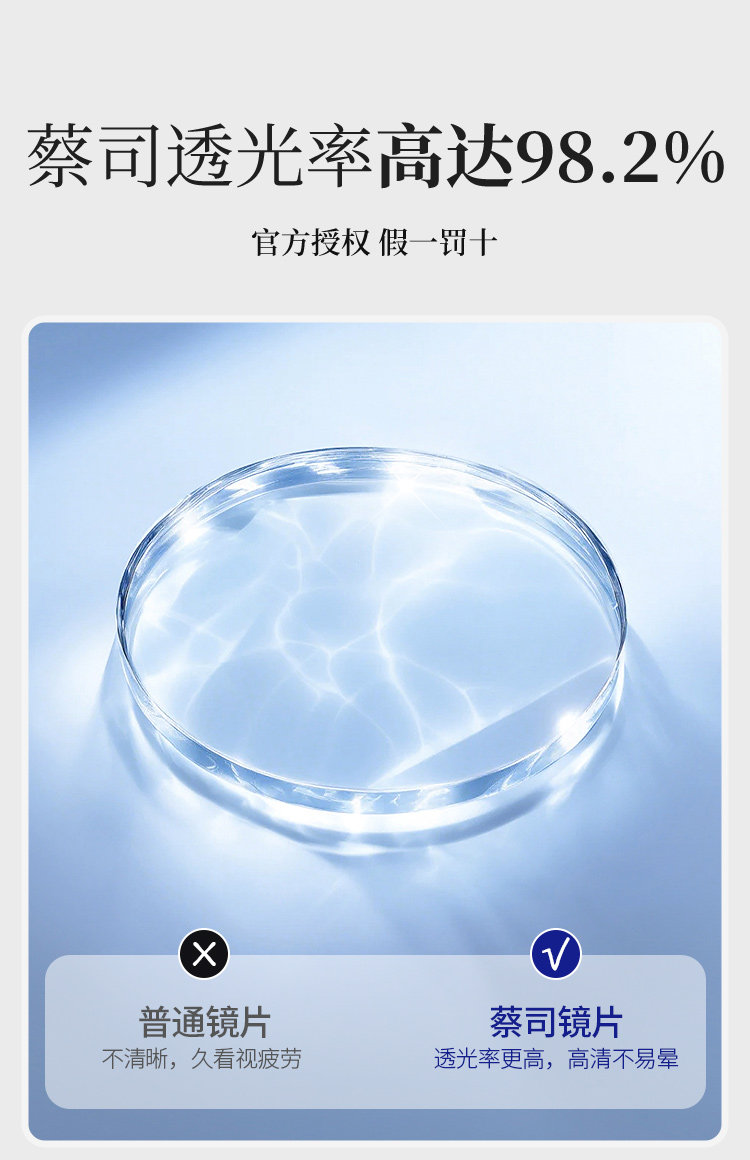 | Color Classification | The New National Standard Anti-Blue Light Is the Real Eye Protection with a Certificate,Professional Eyeglass Fitting: No Charge if Not Correct,Ultra-Light Titanium Frame as Light as a Feather,(Imported Titanium) Silver[Free Flat Anti-Blue Light Lenses],(Imported Titanium) Black[Free Flat Anti-Blue Light Lenses],(Imported Titanium Material) Gun Color[Free Flat Anti-Blue Light Lenses],(Imported Full Titanium) Black Frame Gold Legs[Free Flat Anti-Blue Light Lenses],(Imported Titanium) Gold[Free Flat Anti-Blue Light Lenses],Frame +1.56 Anti-Blue Light Lenses[Suitable for 0-300 Degrees,Astigmatism 0-200 Degrees],Frame +1.60 Ultra-Thin Lenses[Suitable for 0-500 Degrees,Astigmatism 0-200 Degrees],Frame +1.56 Gray Lenses[Suitable for 0-300 Degrees,Astigmatism 0-200 Degrees],Frame +1.56 Variable Tea Lenses[Suitable for 0-300 Degrees,Astigmatism 0-200 Degrees],Frame +1.60 Anti-Blue Light Lenses[Suitable for 0-500 Degrees,Astigmatism 0-200 Degrees],Frame +1.56 Turns Gray Anti-Blue Light[Suitable for 0-300 Degrees,Astigmatism 0-200 Degrees],Frame +1.60 Gray Anti-Blue Light[Suitable for 0-500 Degrees,Astigmatism 0-200 Degrees],Frame +1.67 Ultra-Thin Lenses[Suitable for 0-800 Degrees,Astigmatism 0-200 Degrees],Frame +1.67 Anti-Blue Light Lenses[Suitable for 0-800 Degrees,Astigmatism 0-200 Degrees],Frame +1.67 Ultra-Thin Double-Sided Aspherical Lenses[Suitable for 0-1000 Degrees,Astigmatism 0-200 Degrees],Frame +1.74 Ultra-Thin Lenses[Suitable for 0-1200 Degrees,Astigmatism 0-200 Degrees],Frame +1.74 Anti-Blue Light Lenses[Suitable for 0-1200 Degrees,Astigmatism 0-200 Degrees],↓[Zeiss Lenses]What Matters Is What Suits You,Lenses Are Shipped with Packaging. We Support Sending the Original Lens. if It's Fake, We'Ll Compensate You Tenfold!,With[Zeiss]1.56 Aspherical (0-600 Degrees, Astigmatism 0-200 Degrees),With[Zeiss]1.60 Aspheric (0-600 Degrees, Astigmatism 0-200 Degrees),With[Zeiss]1.67 Aspheric (0-800 Degrees, Astigmatism 0-200 Degrees),With[Zeiss]1.56 Anti-Blue Light (0-600 Degrees, Astigmatism 0-200 Degrees),With[Zeiss]1.60 Anti-Blue Light (0-600 Degrees, Astigmatism 0-200 Degrees),With[Zeiss]1.67 Anti-Blue Light (0-600 Degrees, Astigmatism 0-200 Degrees),Equipped with Zeiss a Series 1.56 Aspherical Lenses[0-400 Degrees,Astigmatism 0-200 Degrees],Equipped with Zeiss a Series 1.60 Aspherical Lenses[0-600 Degrees,Astigmatism 0-200 Degrees],Equipped with Zeiss a Series 1.67 Aspherical Lenses[0-800 Degrees,Astigmatism 0-200 Degrees],Equipped with Zeiss Diamond Cube 1.56 Aspherical Anti-Blue Light[0-400 Degrees,Astigmatism 0-200 Degrees],Equipped with Zeiss Diamond Cube 1.60 Aspherical Anti-Blue Light[0-600 Degrees,Astigmatism 0-200 Degrees],Equipped with Zeiss Diamond Cube 1.67 Aspherical Anti-Blue Light[0-800 Degrees,Astigmatism 0-200 Degrees],[Add to Favorites + Add to Cart]Free Mirror Box Gift Pack (Do Not Take This Photo) |