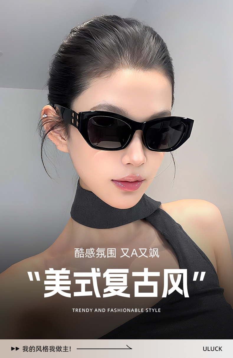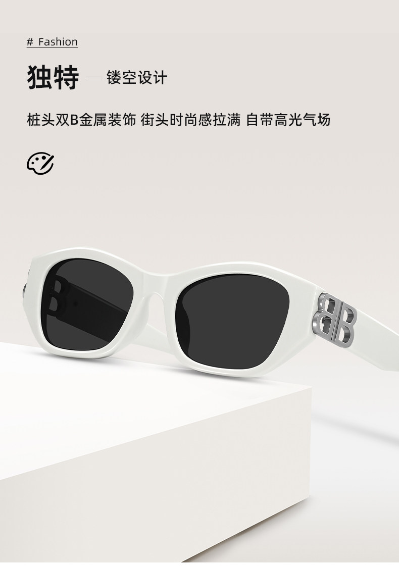 2025 New Double-B European and American Style Cat-Eye Sunglasses Trendy Street Style High-End Black Sunglasses for Women ins