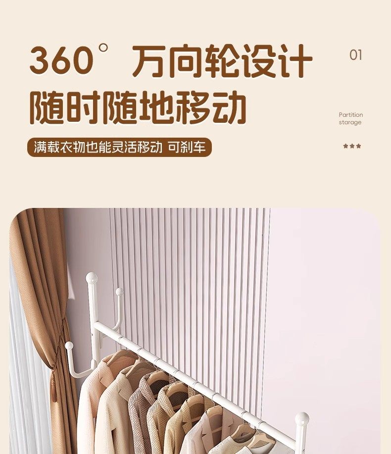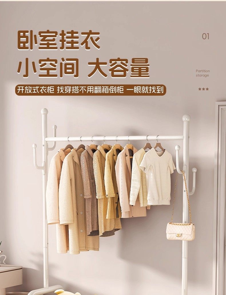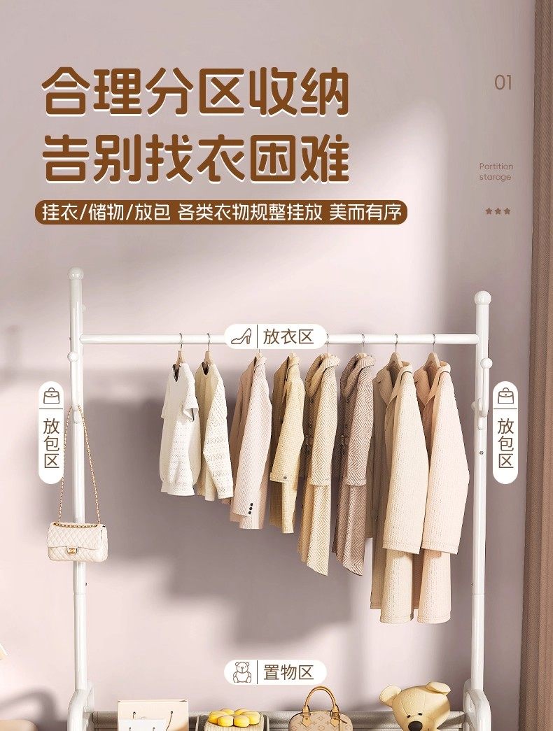 Coat Rack Floor-Standing Bedroom Clothes Rack 2025 New Model Household Indoor Simple Movable Clothes Storage Drying Rack