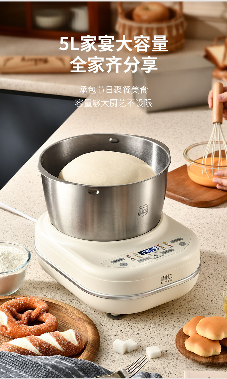 Liren Dough Mixer, Household Kneading Machine, Small Fully Automatic Chef Machine, Dough Fermentation All-In-One Mixer, New Model