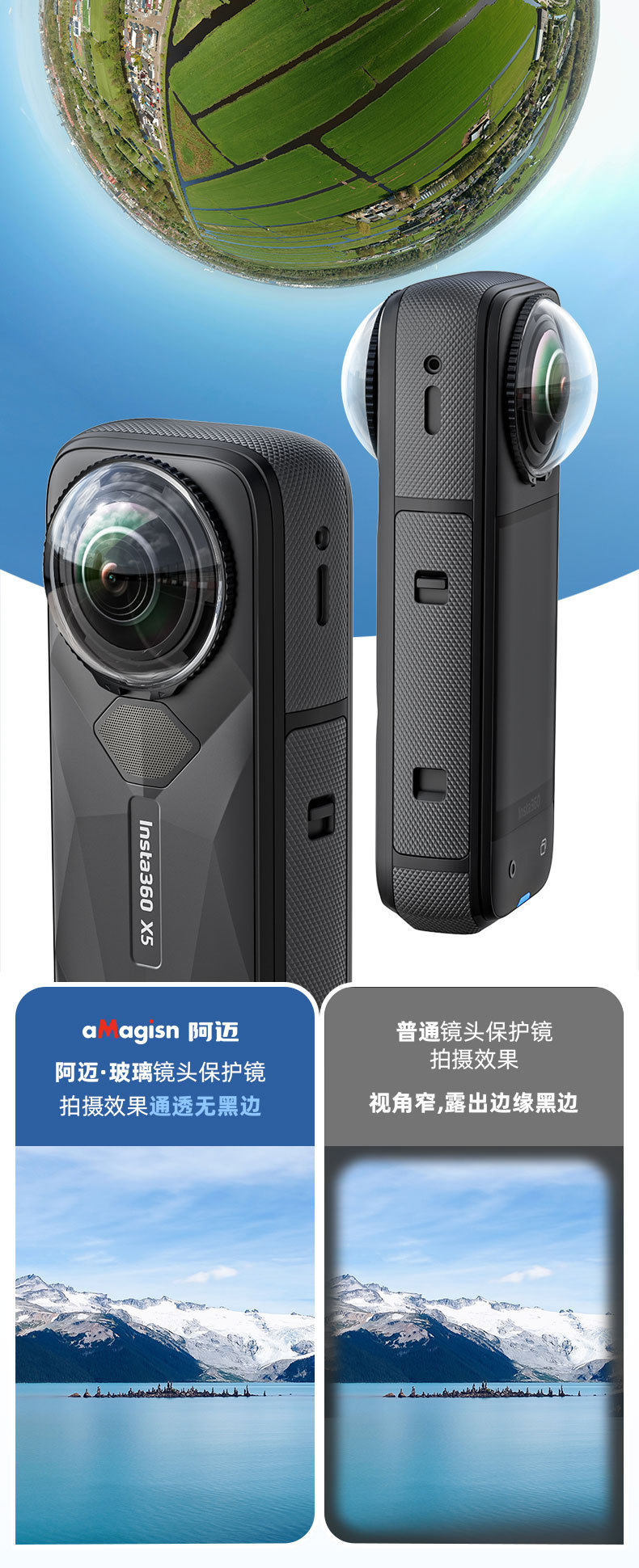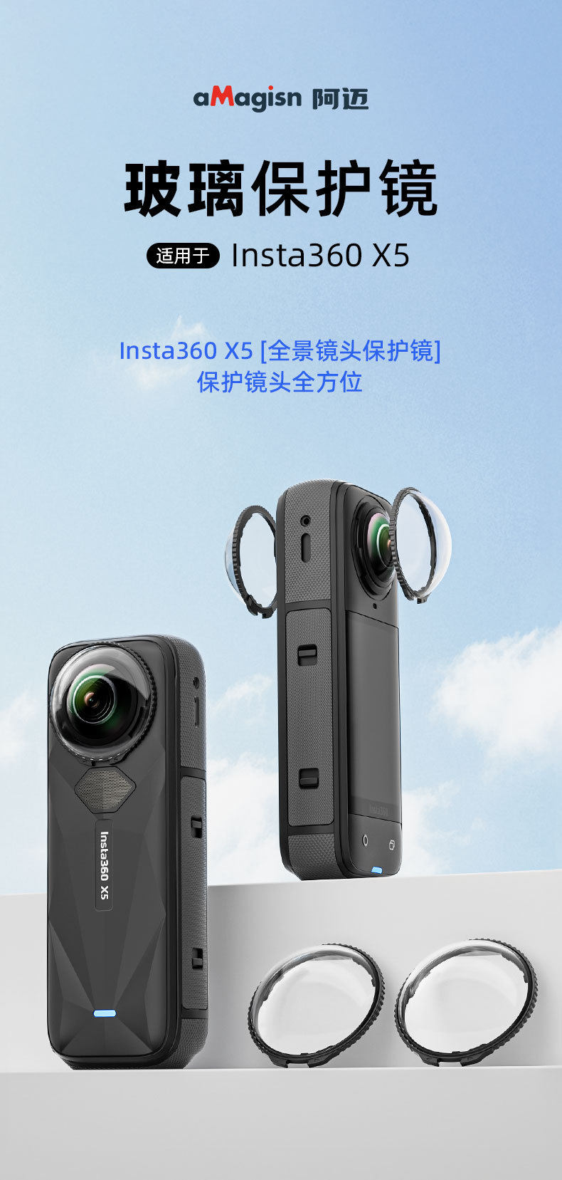 Amagisn Insta360 X5 Lens Protector X5 Detachable Glass Protector Accessories