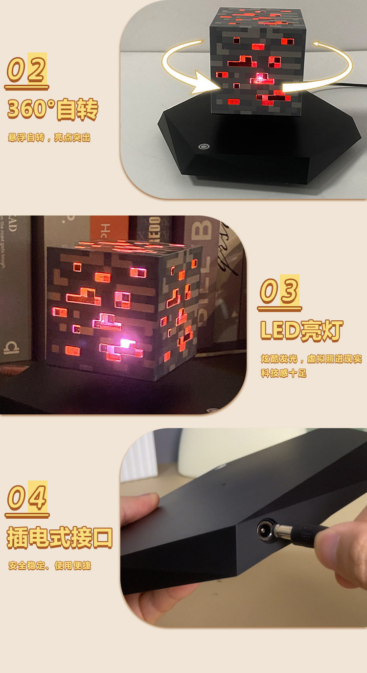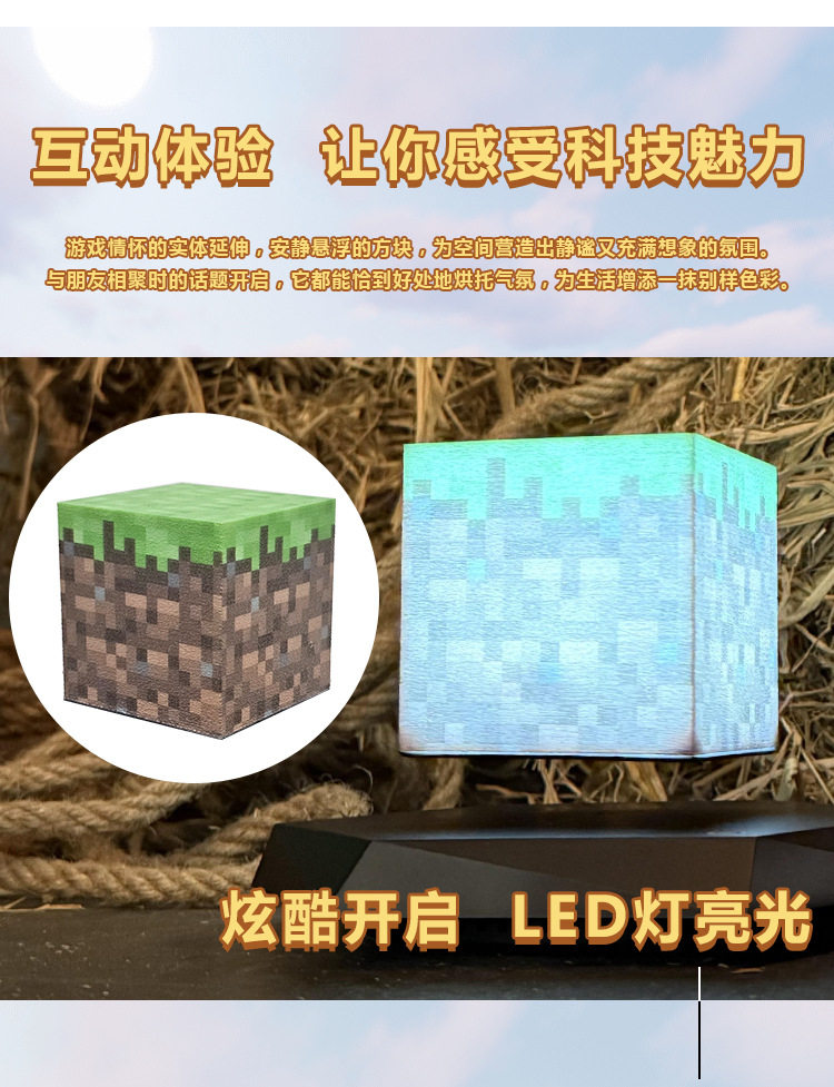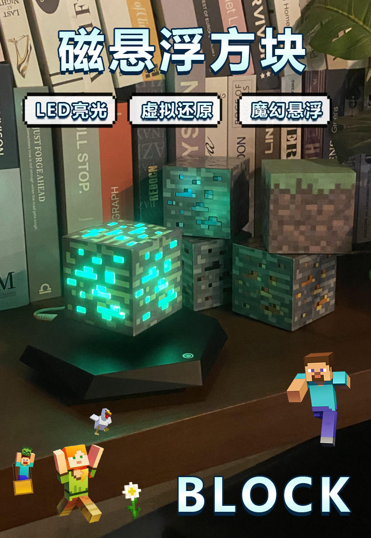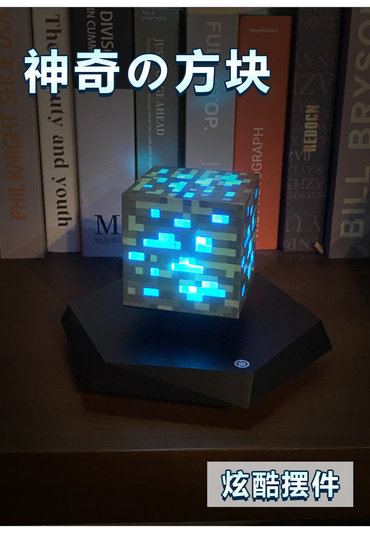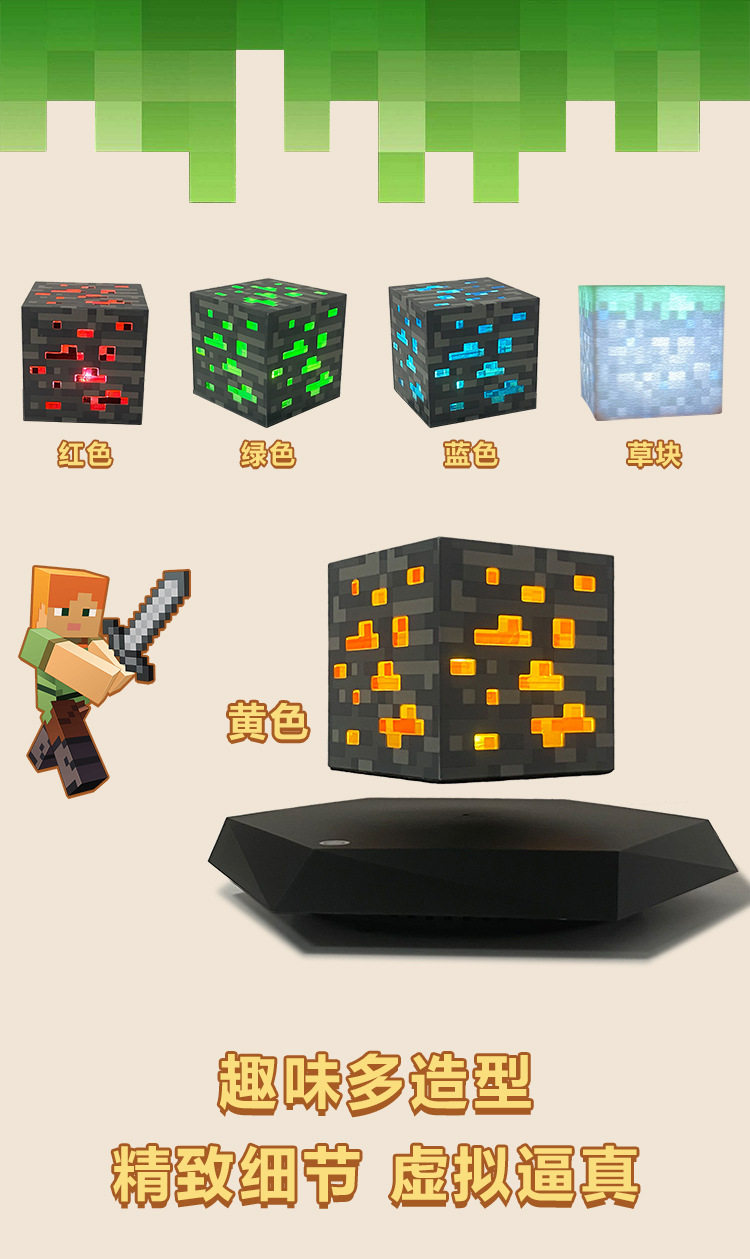 Minecraft Magnetic Levitation Mining Lamp Toy for Boys Magnetic Cube Peripheral Ore Lamp Pixel Night Light Gift