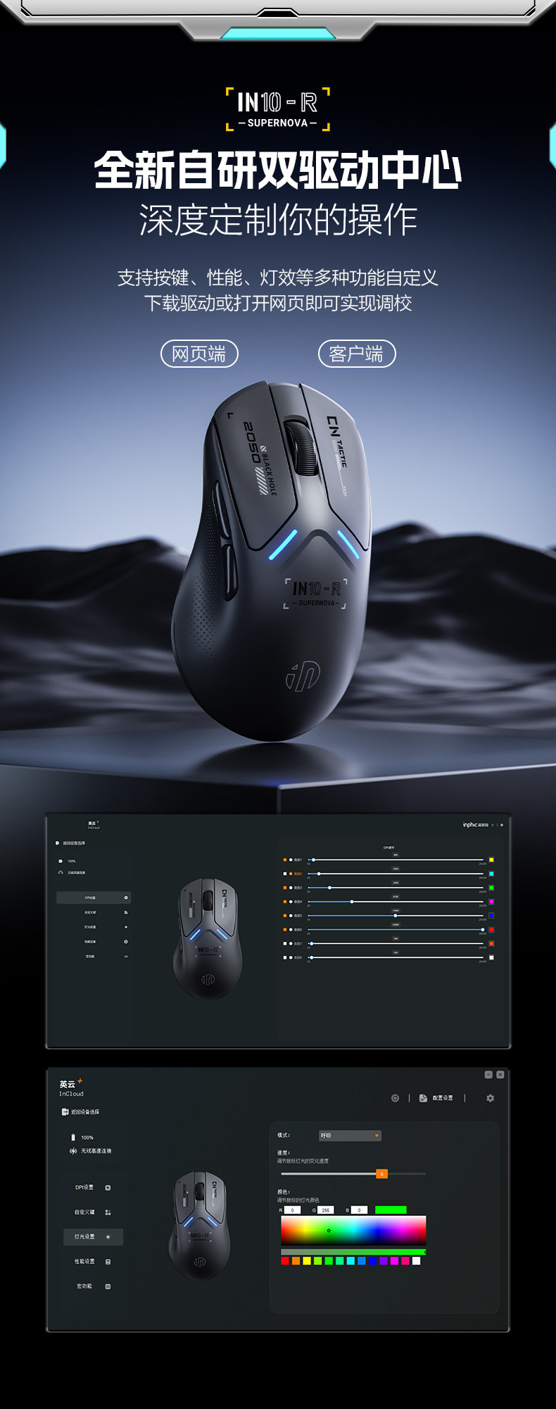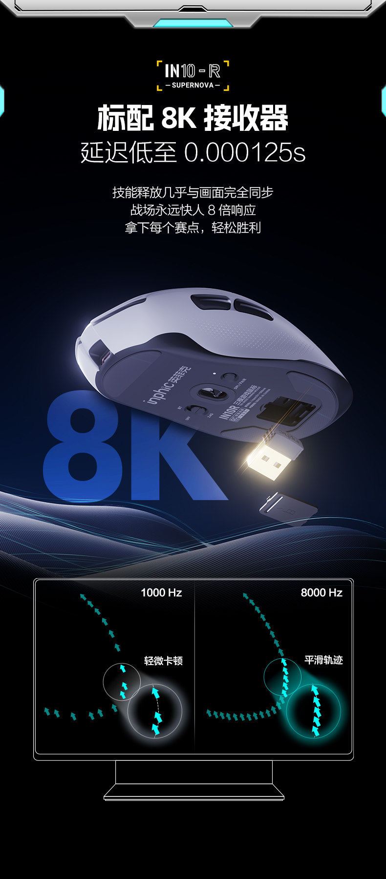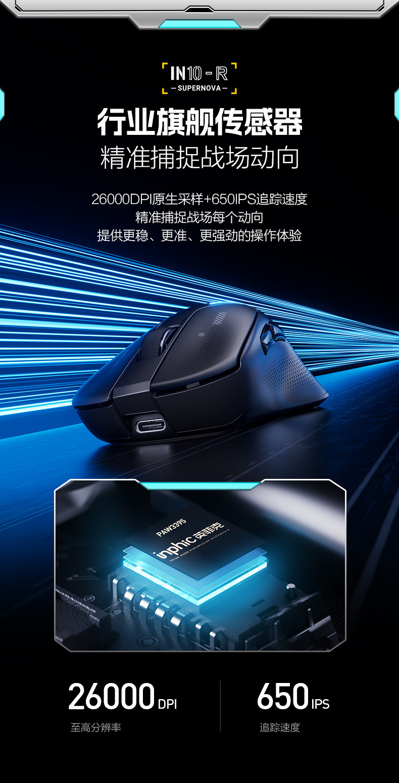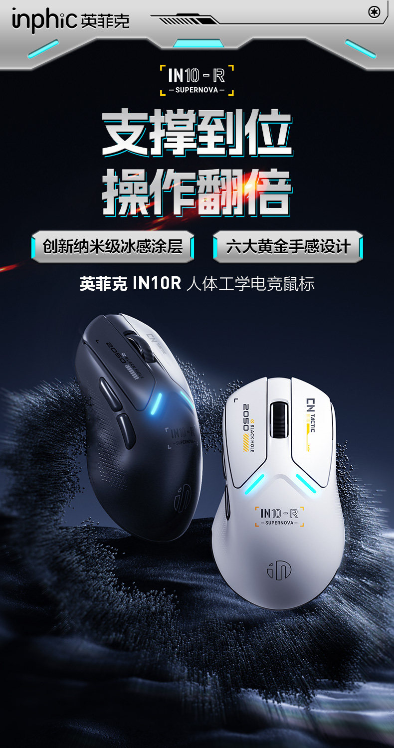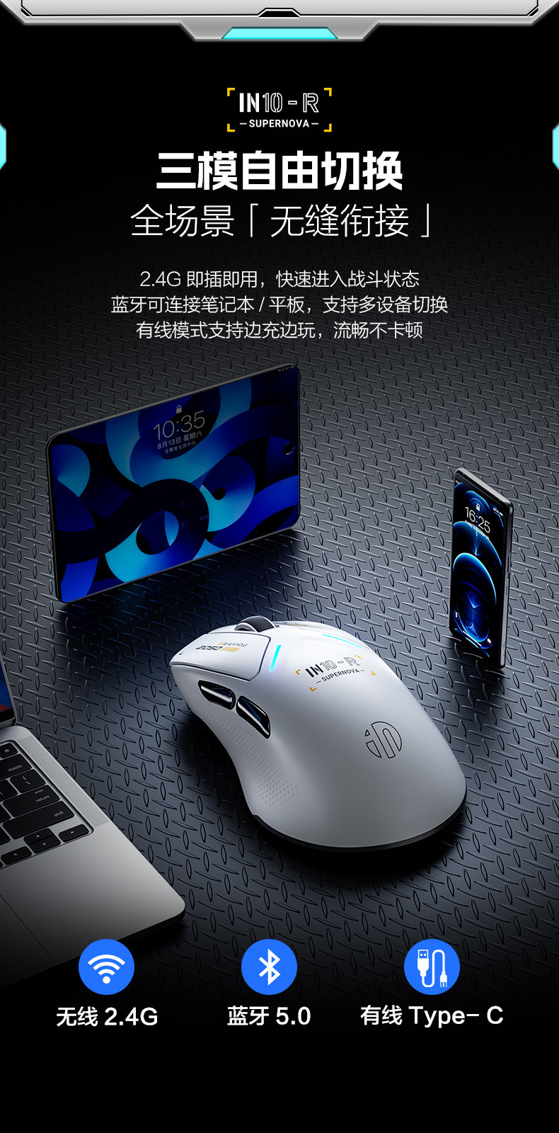 Inphic In10R Wireless Mouse Bluetooth Wired Three-Mode Gaming 3395 Computer Right-Hand Ergonomic