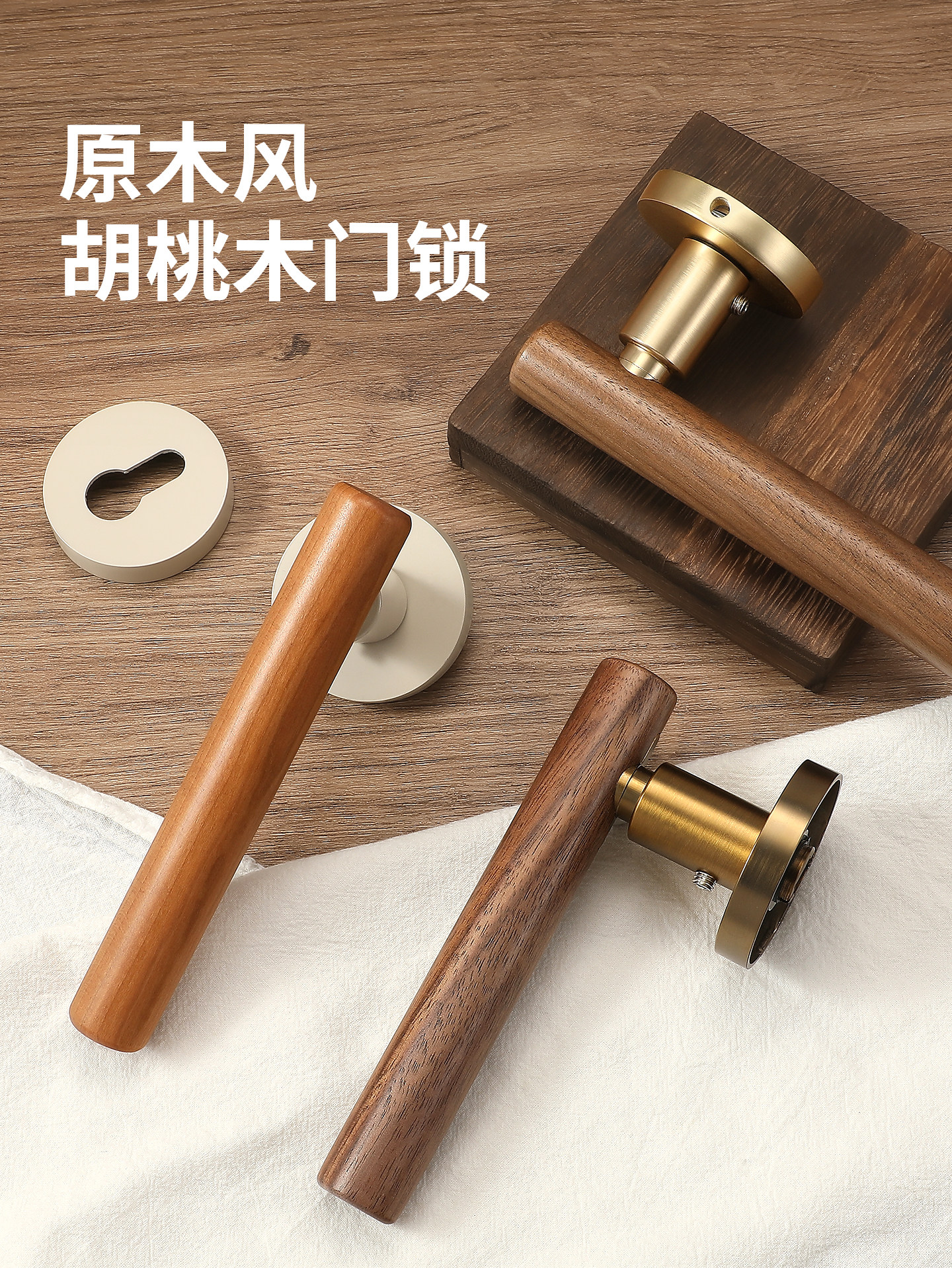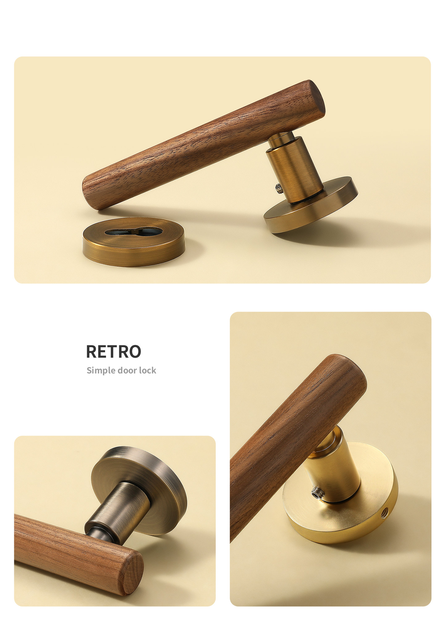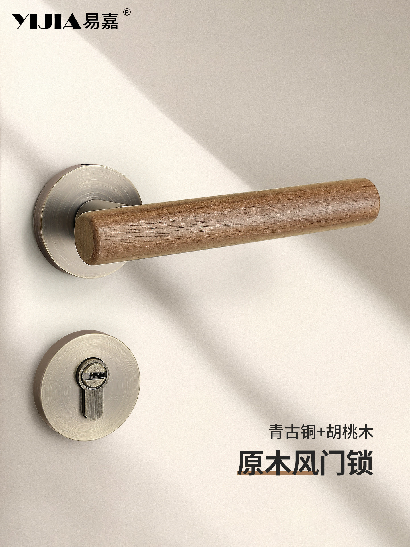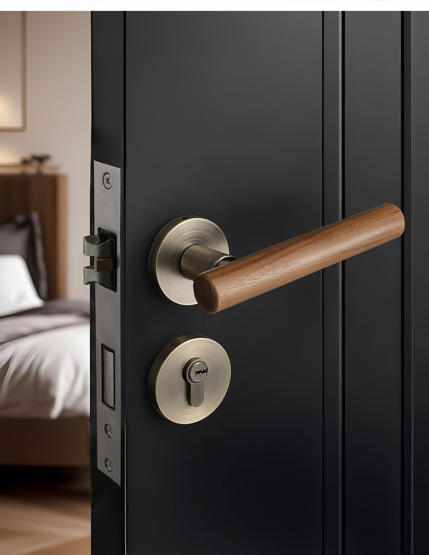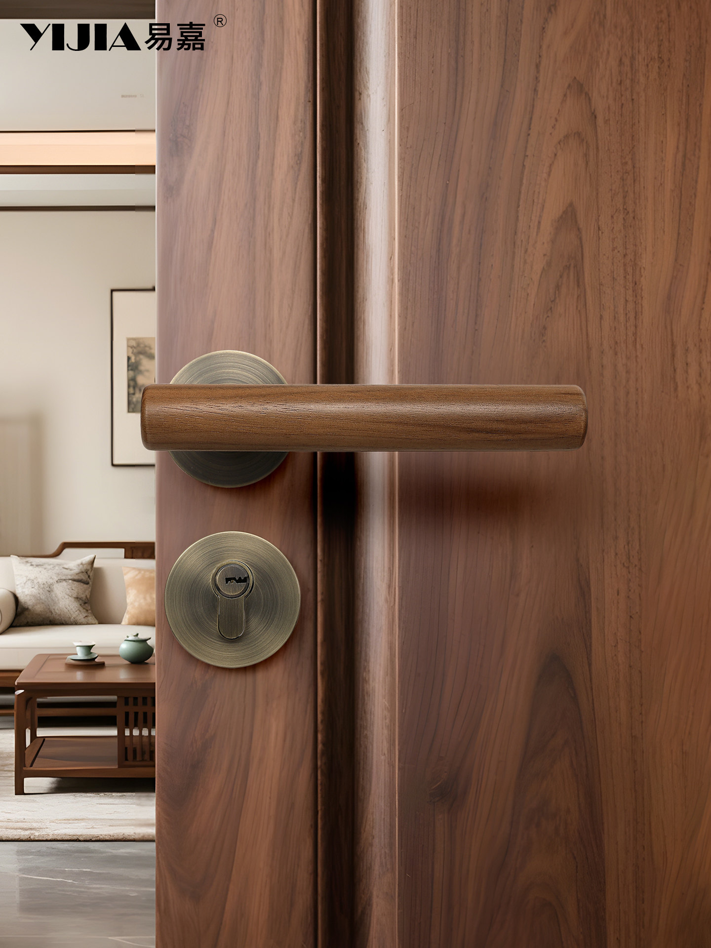 """"Mu An"" Bronze Home Bedroom Solid Wood Door Lock Indoor Retro Wooden Door Universal Wooden Door Handle