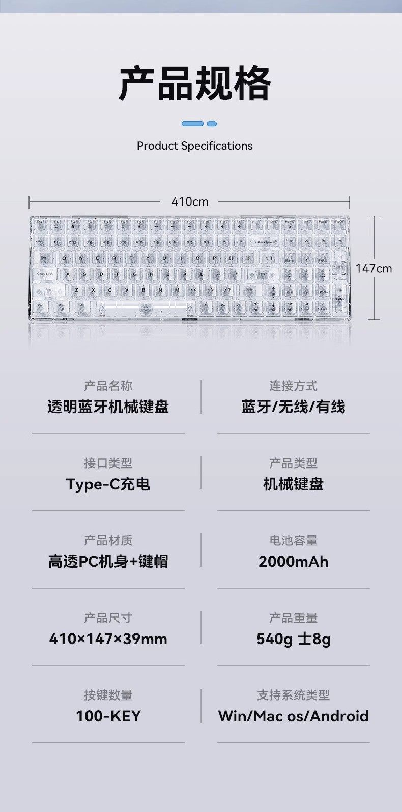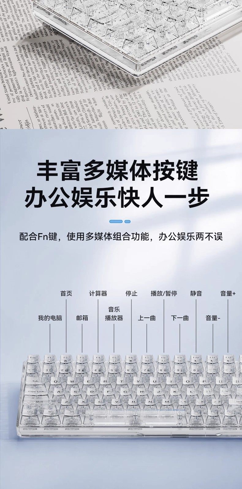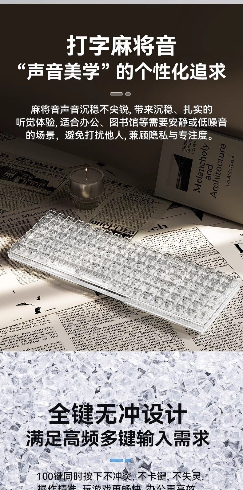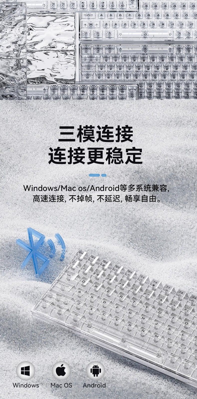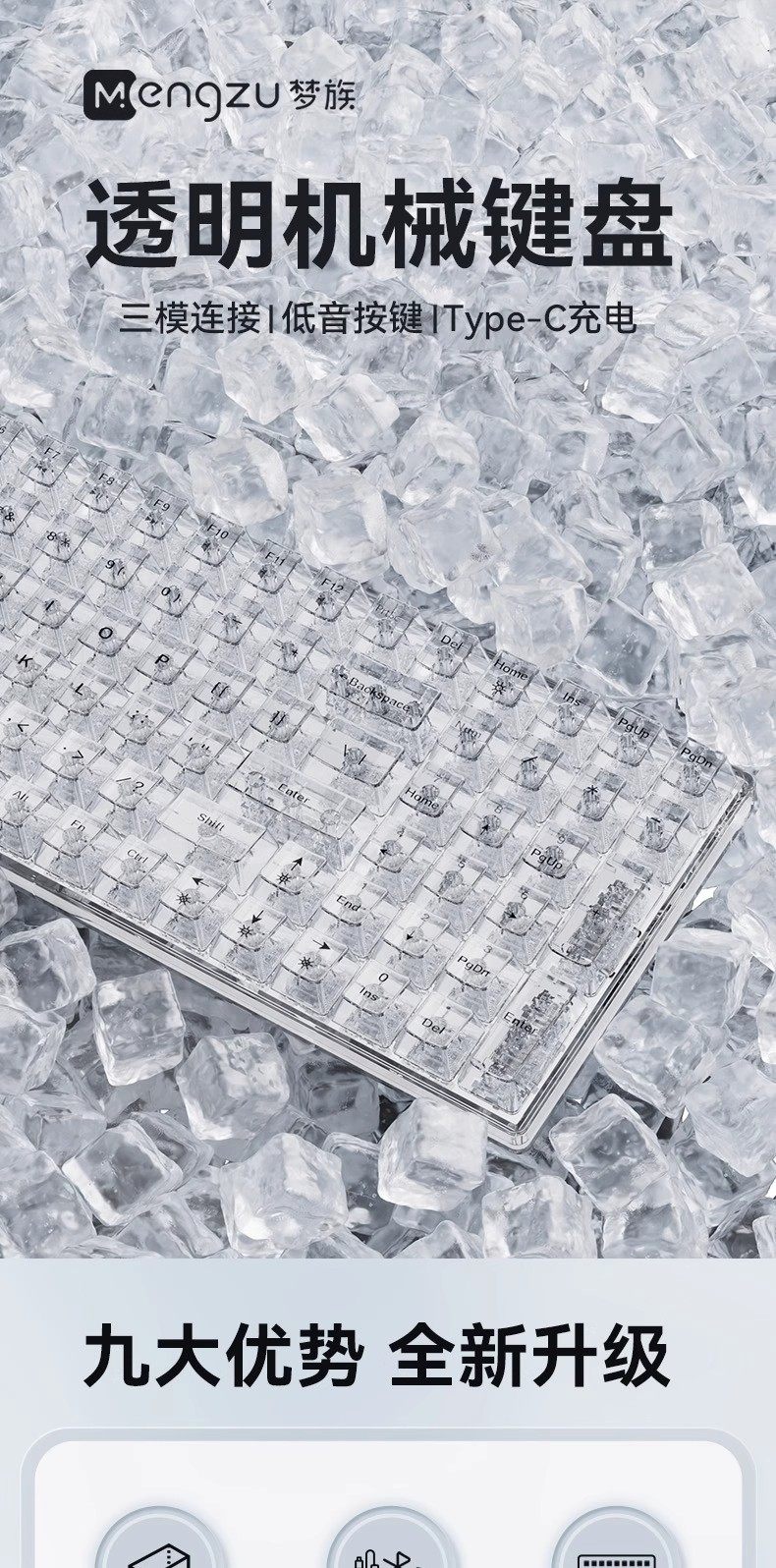 Mengzu H100 Wireless Transparent Mechanical Keyboard Ice Cube Mahjong Sound Office Desktop Computer Office Gaming Universal
