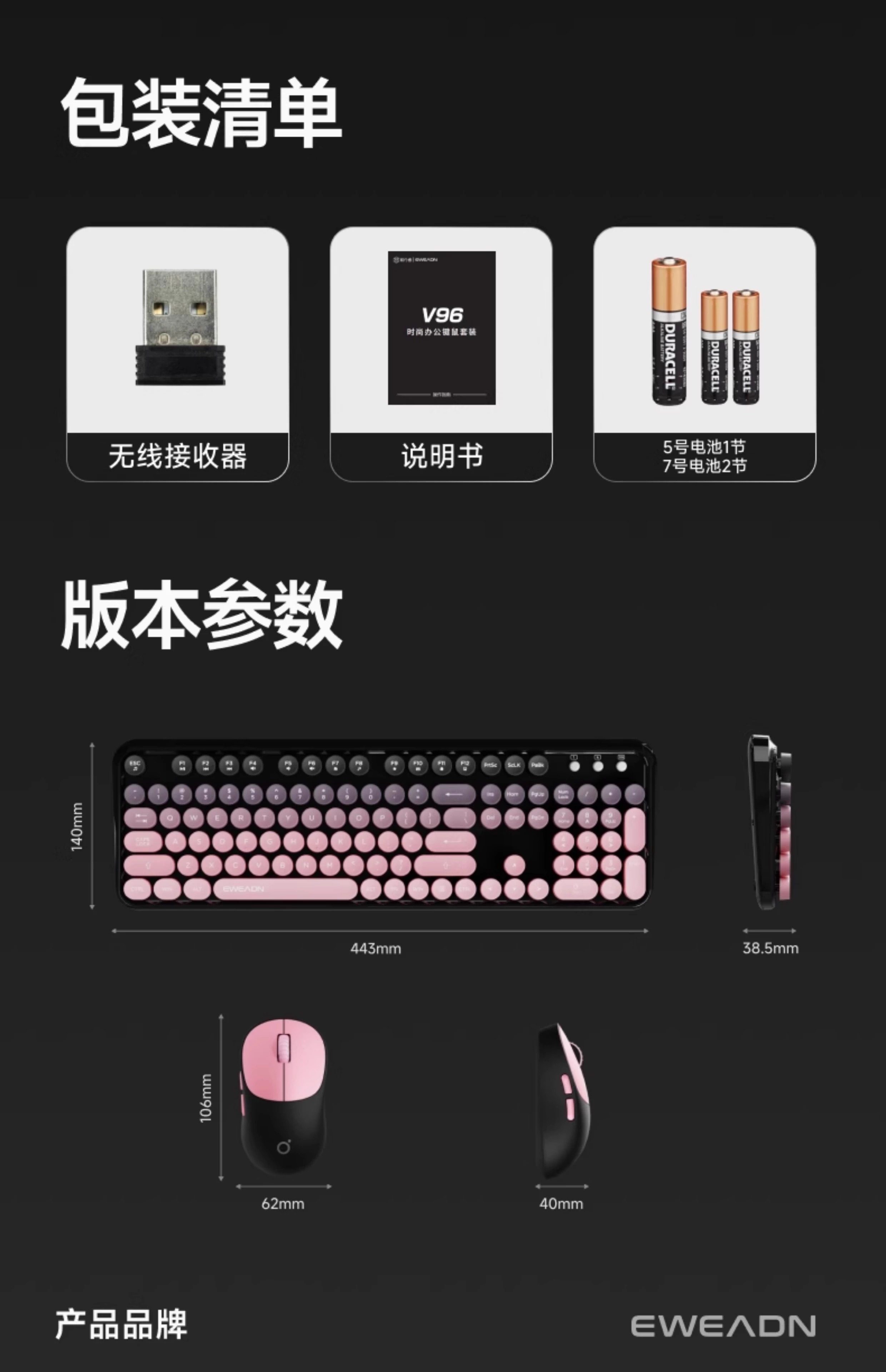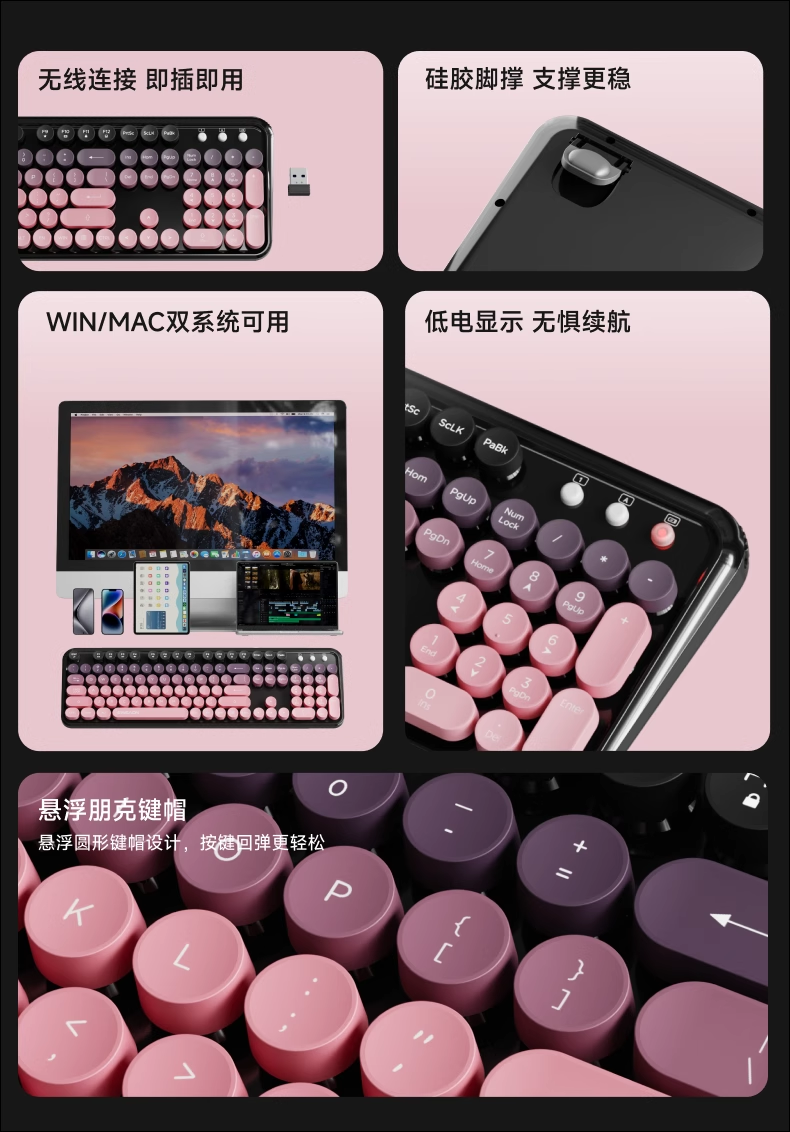 | Color Classification | Blackberry Pink-Wireless Keyboard and Mouse Set[The Keyboard and Mouse Share a Single Receiver],Sakura Pink-Wireless Keyboard and Mouse Set[The Keyboard and Mouse Share a Single Receiver],Dust Black-Wireless Keyboard and Mouse Set[Intelligent Sleep - Long-Lasting Battery Life],Chunjiangfen-Wireless Keyboard and Mouse Set[The Keyboard and Mouse Share a Single Receiver],Pine Frost Green-Wireless Keyboard and Mouse Set[The Keyboard and Mouse Share a Single Receiver],Pinhuanghui-Wireless Keyboard and Mouse Set[The Keyboard and Mouse Share a Single Receiver],Graphite Black-Wireless Keyboard and Mouse Set[Intelligent Sleep - Long-Lasting Battery Life] |