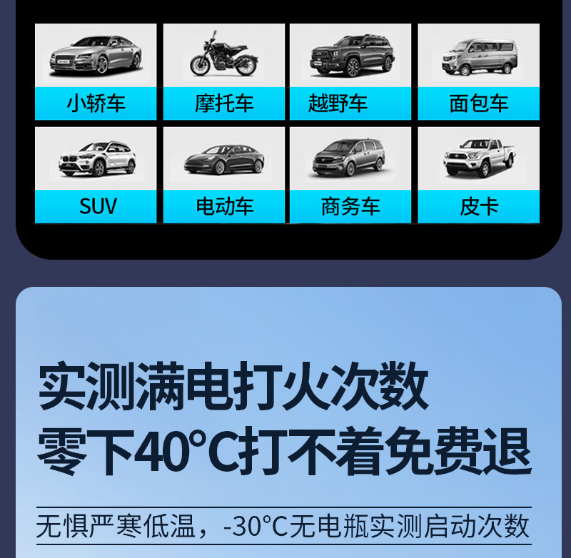 | Color Classification | [Certified by Authoritative Organizations] Quality Assurance Is More Secure★Multiple Rigorous Inspections★Use with Confidence, No False Advertising.,[Collection + Shopping Cart] Enjoy [Tmall Delivery the Next Day] Two-Year Warranty,Emergency Power Supply - 5.0t Displacement or Less [Digital Display G1] Color Box Packaging + Heavy-Duty Battery Clamps + Power Cord,Wireless Classic Model [Air Pump + Emergency Power Supply] Bold Battery Clip + Instant Start + Power Bank + Unlimited Displacement + Storage Bag,Wireless Smart Model [Air Pump + Emergency Power Supply] Anti-Reverse Smart Clamp + Instant Start + Power Bank + Unlimited Displacement + Storage Bag,Ai Extended Range Model: [Air Pump + Emergency Power Supply] - Enhanced Battery Life + Anti-Reverse Smart Clamps + Instant Cold Start + Power Bank + Universal Displacement Compatibility + Flight Case Packaging,Ai Battery Life Upgrade [Air Pump + Emergency Power Supply] - Extended Battery Life + Anti-Reverse Smart Clamps + Instant Cold Start + Power Bank + Universal Displacement Compatibility + Flight Case Packaging,German Flagship Model: [Air Pump + Emergency Power Supply] Smart Temperature Control + Anti-Reverse Smart Clamps + Extended Battery Life + Instant Cold Start in Low Power + Power Bank + Flight Case,German Flagship Pro Model: [Air Pump + Emergency Power Supply] S-Grade Battery Cells + Anti-Reverse Smart Clamps + Extended Battery Life + Instant Cold Start in Low Power + Power Bank + Aviation Case,German Flagship Max Model: [Air Pump + Emergency Power Supply] Enhanced Charging Speed + Anti-Reverse Smart Clamps + S-Grade Battery Cells + Upgraded Battery Life + Power Bank Function + Aviation Case,1 |