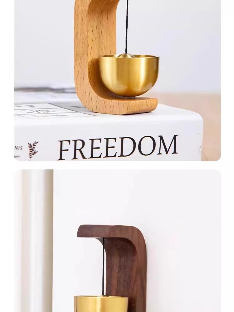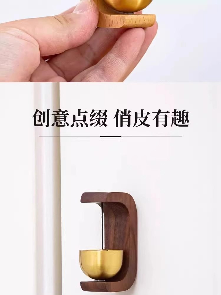 Bell Pendant Doorbell Black Walnut Dopamine Magnetic Wind Chime Home Entrance Reminder Brass Housewarming Gift Decoration