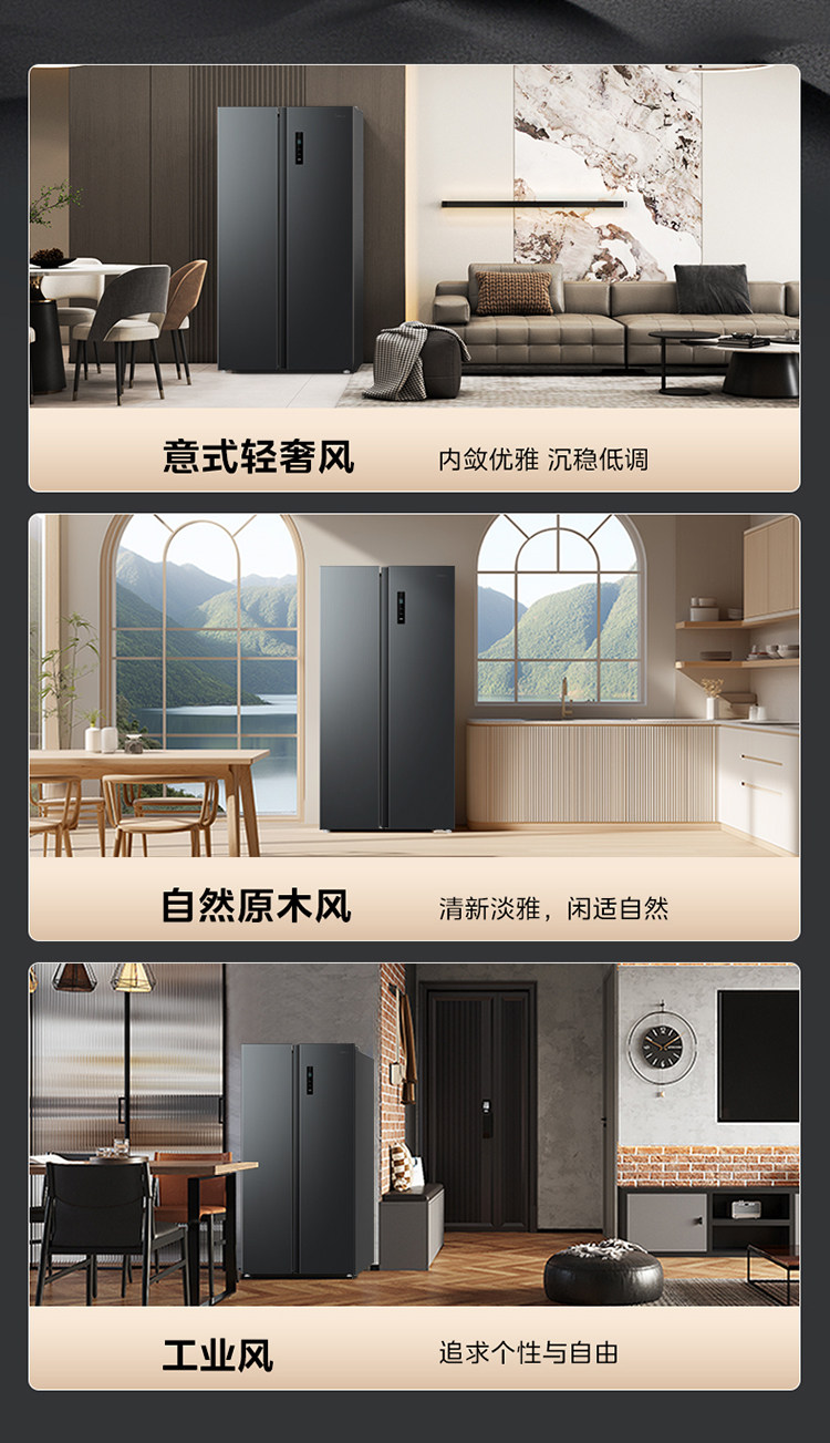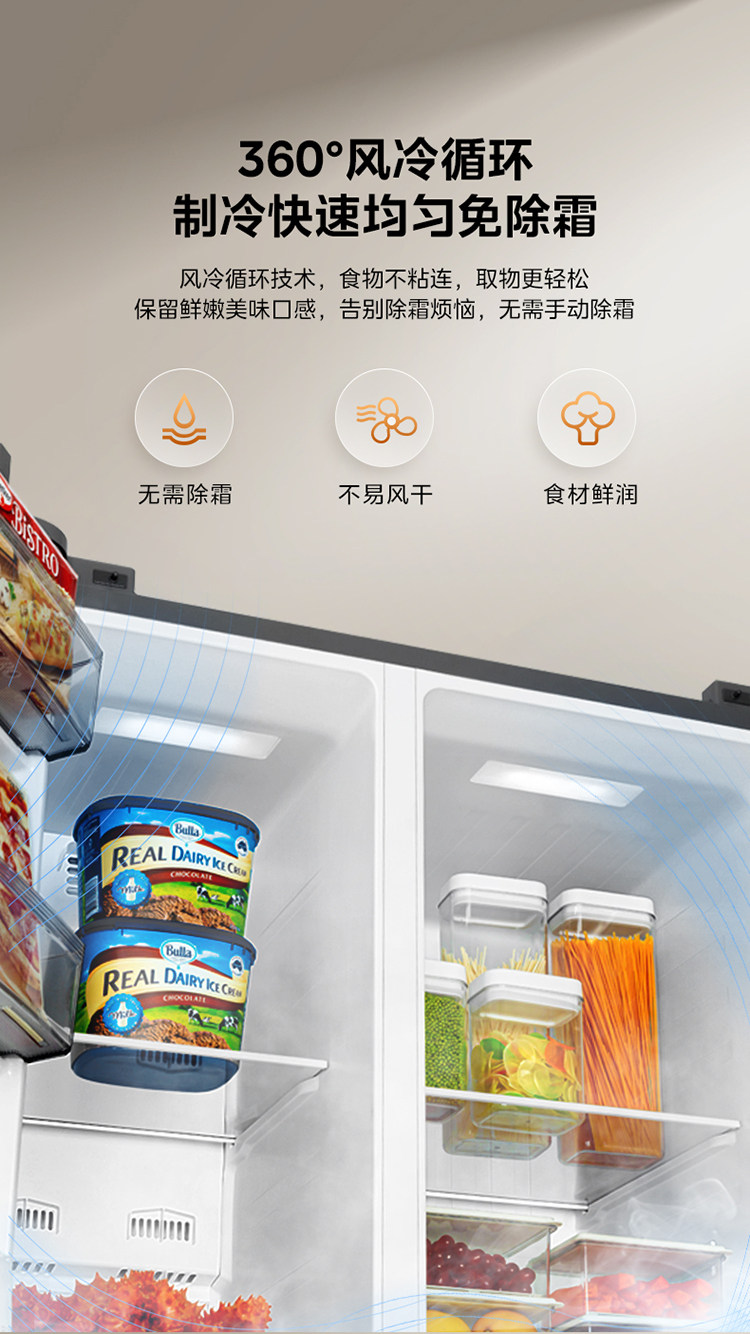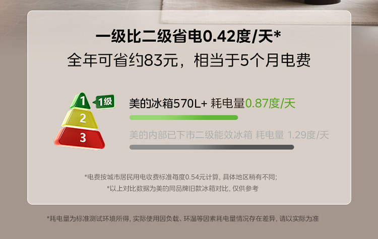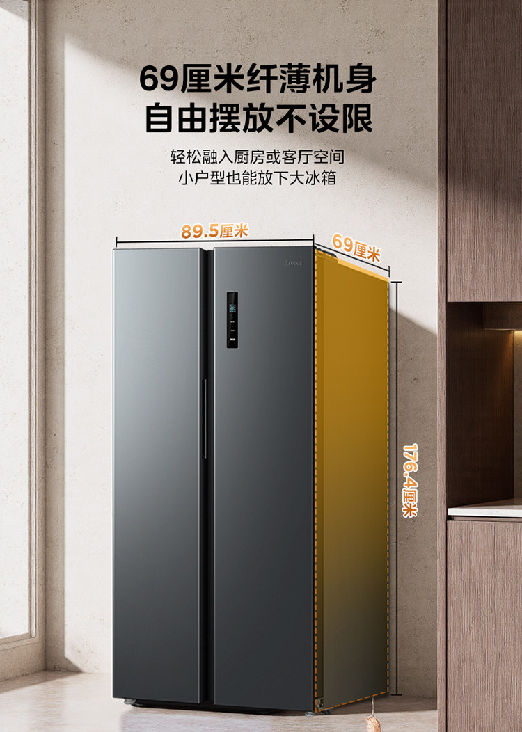 Midea 570+ Double-Door Large-Capacity Household Refrigerator, First-Class Energy-Saving, Frost-Free, Ultra-Thin
