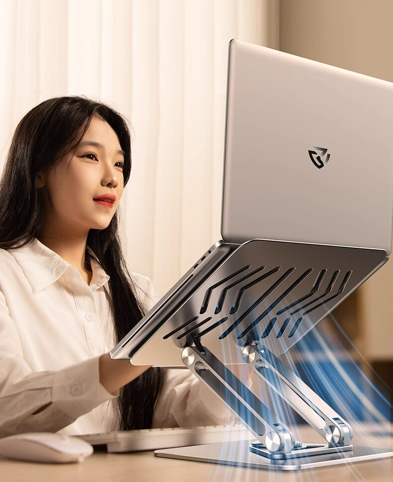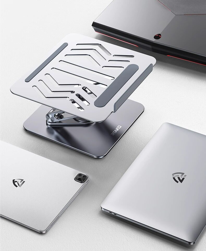 [Three-Layer Rotatable]Laptop Stand Office Portable Vertical Bracket Desktop Height Adjustable Lifting Support Suspended Cooling Aluminum Alloy Base Portable iPad Tablet Gaming Laptop