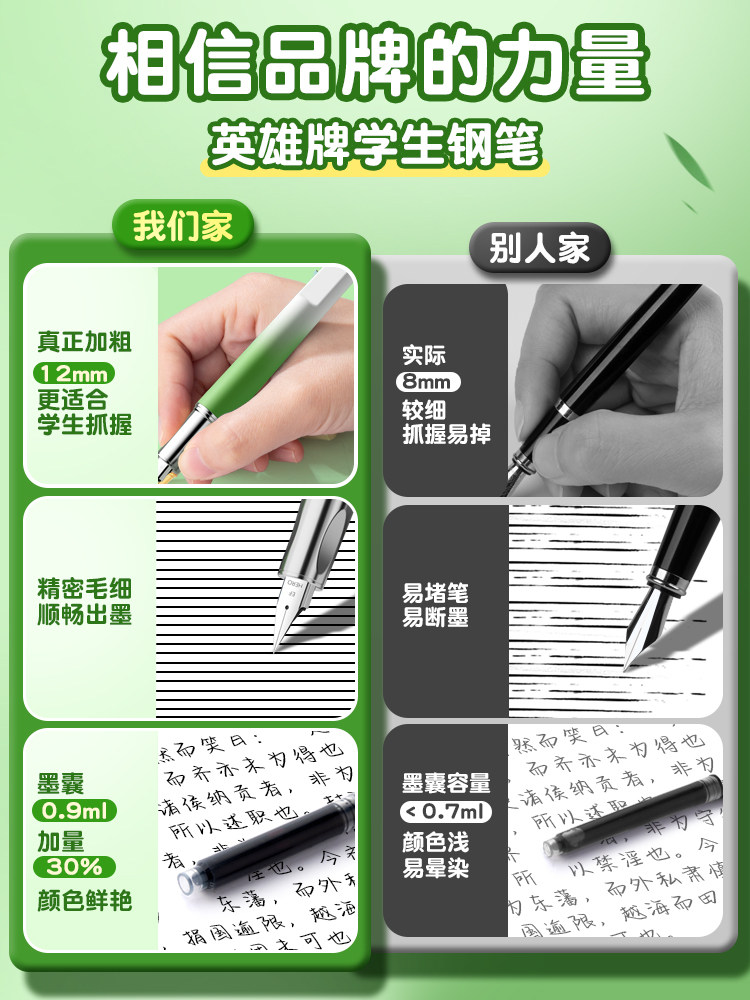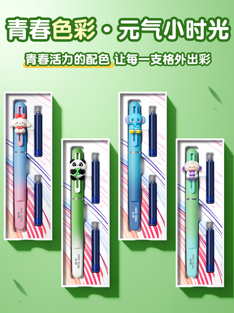 Hero Fountain Pen for Third-Grade Elementary School Students, Hard Pen Calligraphy Practice, Posture-Correcting, Replaceable Ink Cartridges, Exquisite High Aesthetic Value, Magnetic Suction, Gift Box for Middle School Students and Children, Beginner Fountain Pen, Engraving, Official Genuine Product