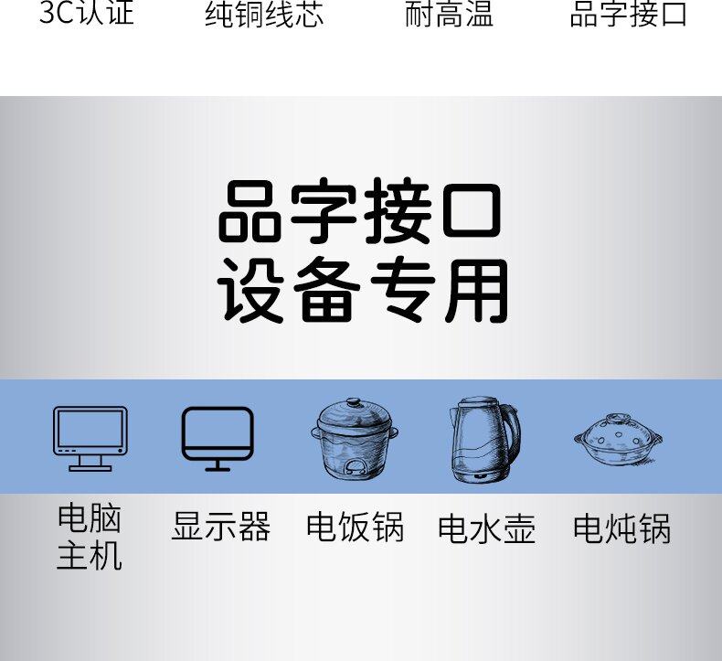 Pinzi Tail with Groove Power Cord Air Fryer Rice Cooker Rice Cooker Host Power Plug Cord Connection Line