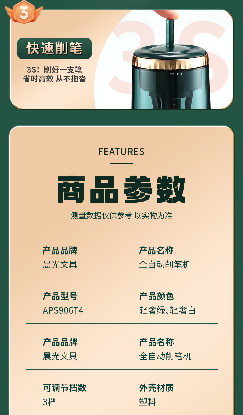 | Color Classification | [Upgraded Labor-Saving Model 3.0]Light Luxury Green - Free Power Cord,[Upgraded Labor-Saving Model 3.0]Light Luxury White - Free Power Cord,[Summer Forest Party]Fully Automatic Pencil Sharpener - Comes with Power Cord,The Above Electric Pencil Sharpeners Cannot Sharpen Thick Pencils,[Crown]Electric Pencil Sharpener - Free 2 Batteries |
