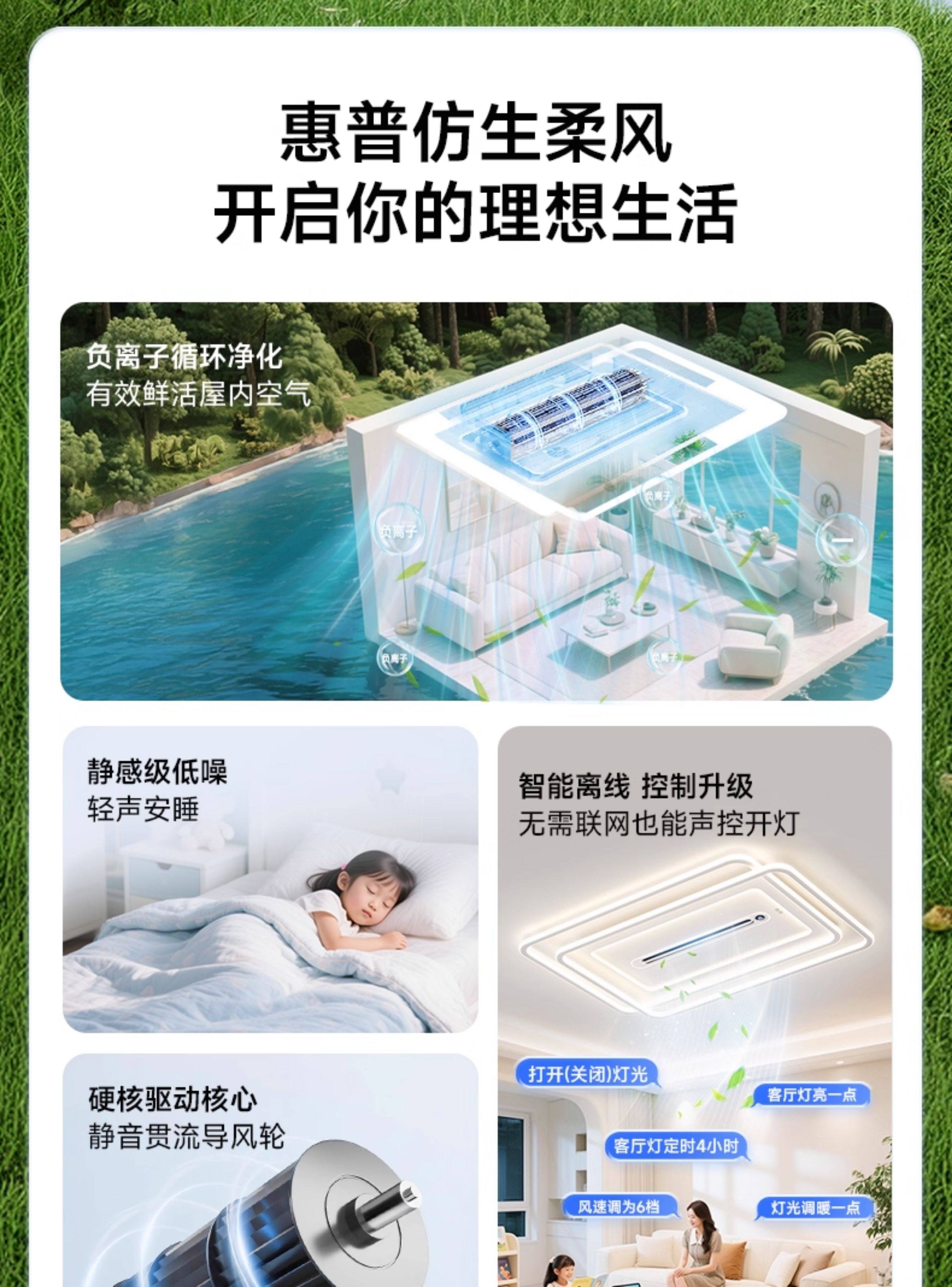 Hp Lighting Living Room Bladeless Fan Lamp Simple Modern Invisible Silent Fan Integrated Dining Room Bedroom Ceiling Lamp
