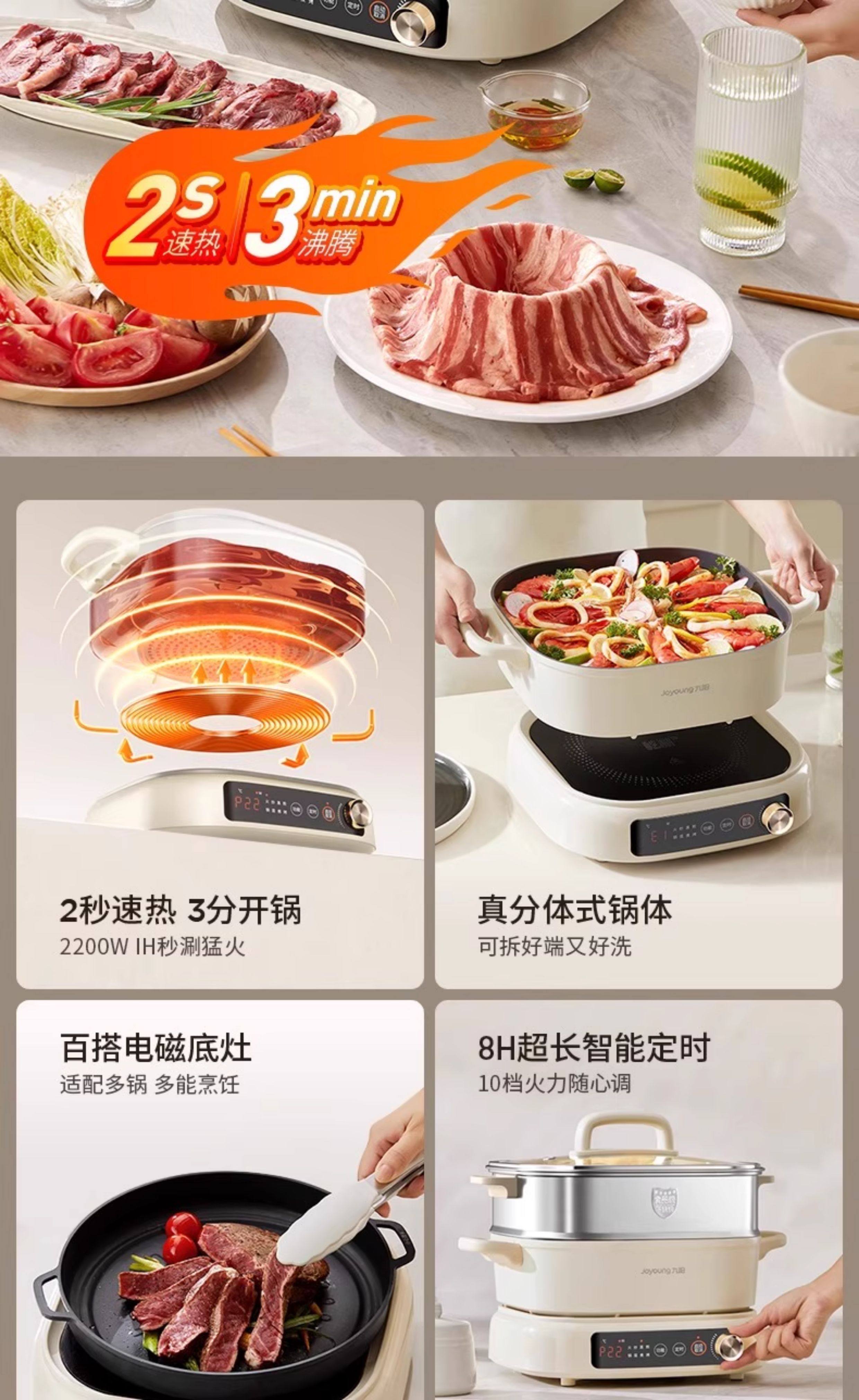 Joyoung Ih Instant Hot Pot Detachable Multifunctional Electric Cooking Pot for Home Use, Frying, Stir-Frying, Induction, Non-Stick Cooking Machine