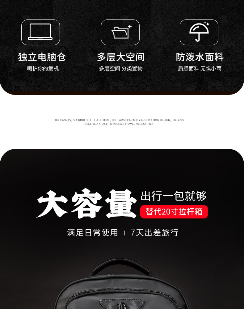 | Internal Structure | Mesh Bag,Patch Pocket,Cell Phone Bag,Dark Grid,Laminated Zipper Bag,Computer Pocket,Certificate Slot |