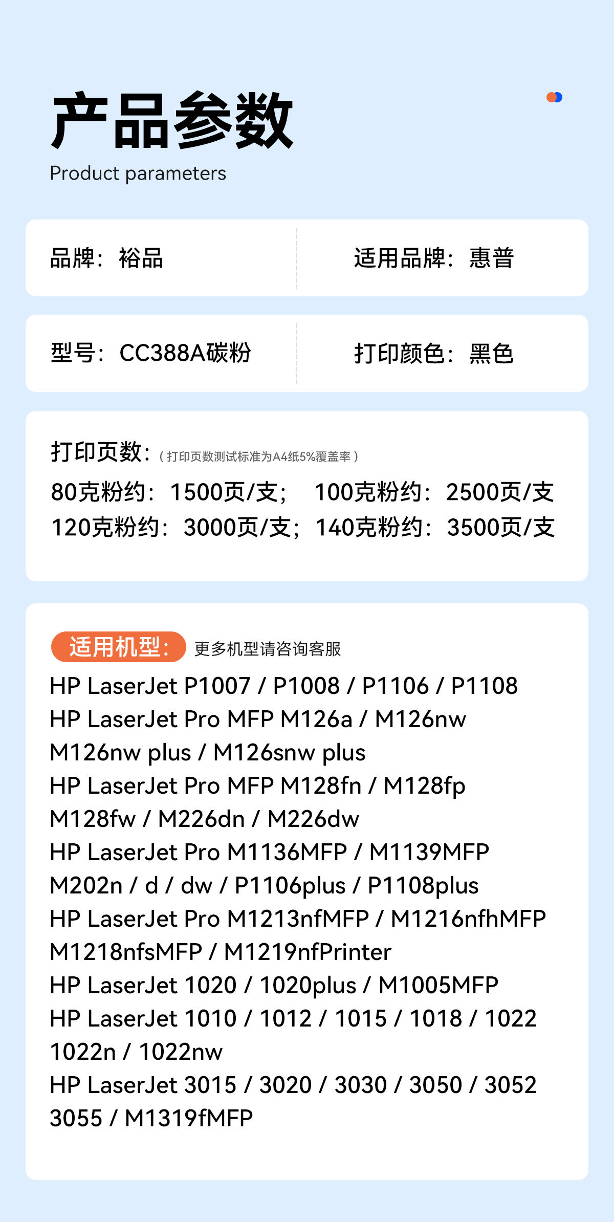 Yupin Compatible Toner for Hp Laser Printers, Universal M126A/388A/M1136/M1005/P1108/P1106/1020/12A Cartridge Cc388A/Q2612A Toner Cartridge