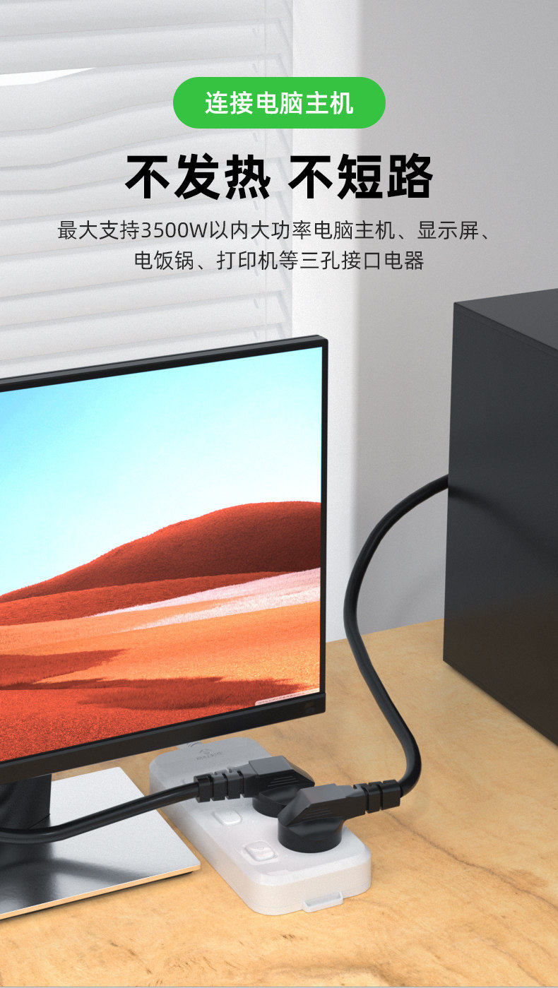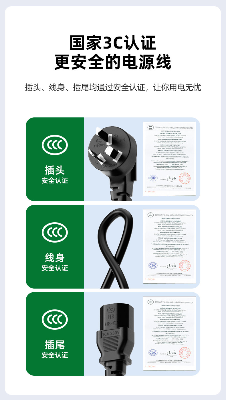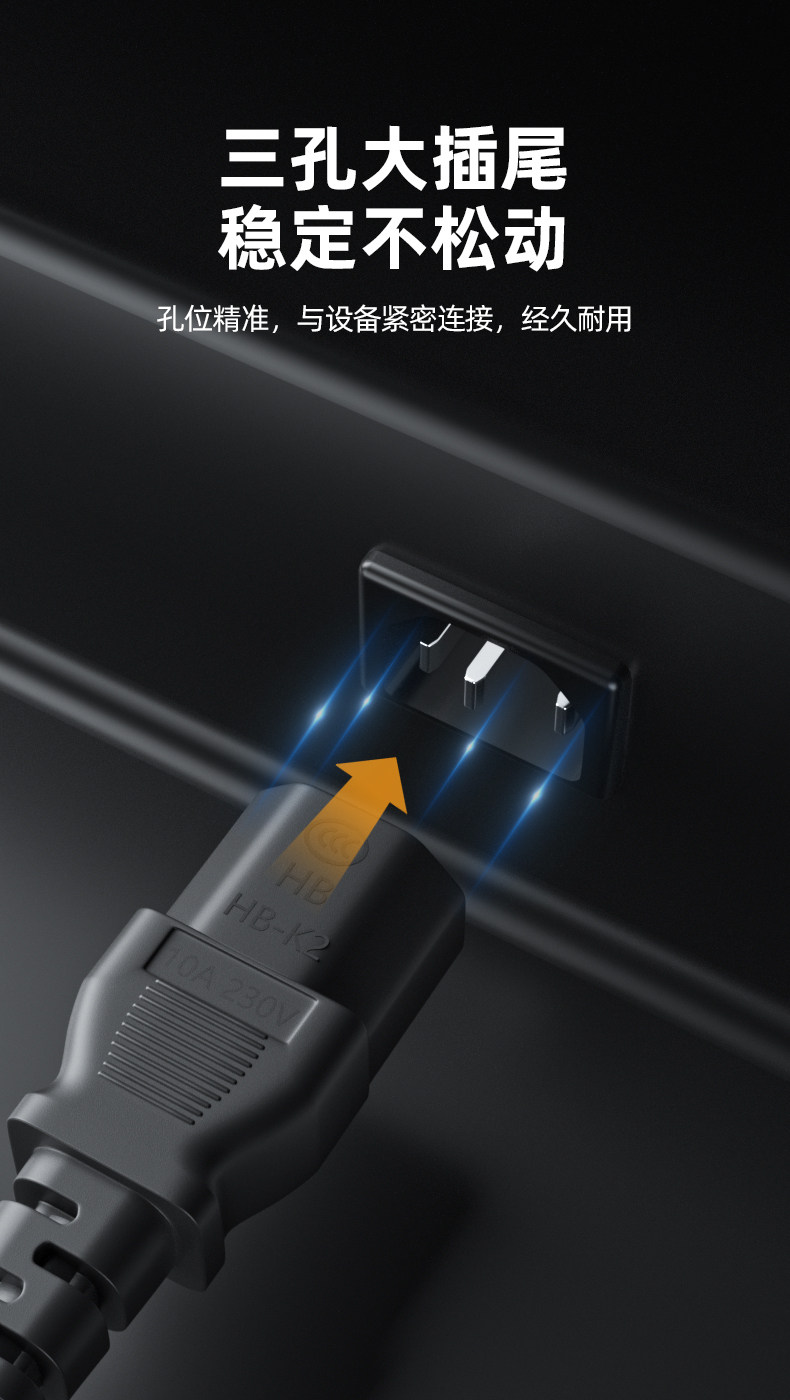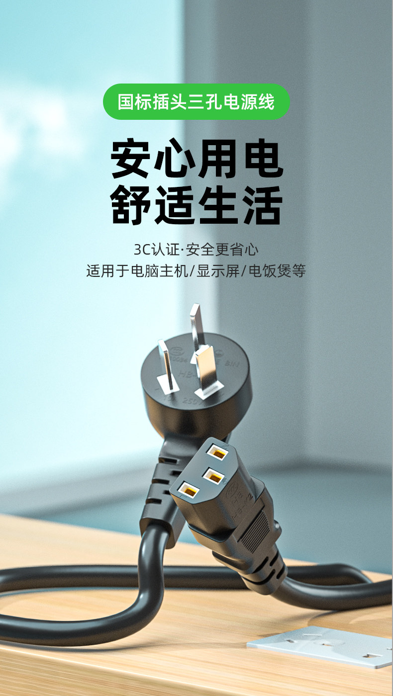 Computer Rice Cooker Power Cord with Three-Hole Line, Three-Core Water Kettle, Desktop Host Line Printer with Plug, Three Plugs