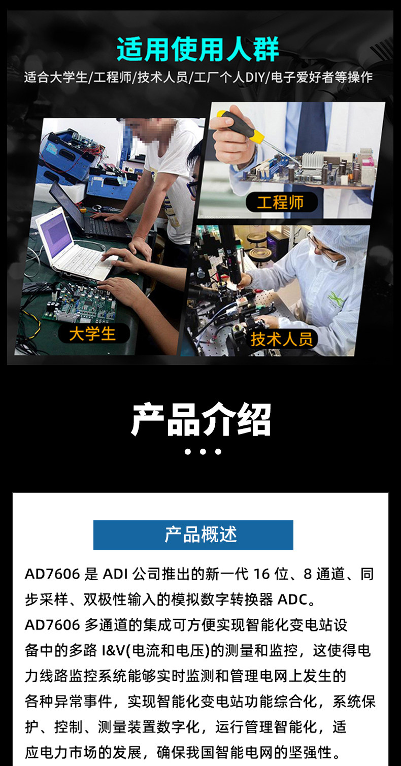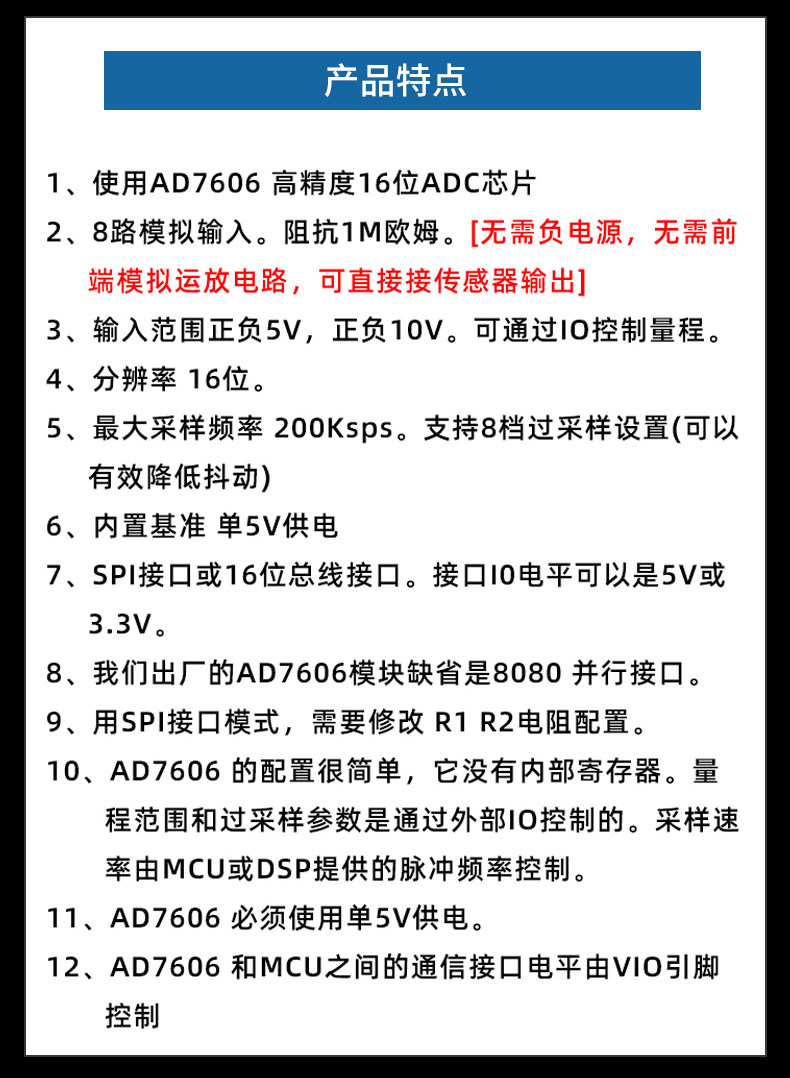 Ad7606 Data Acquisition Module 16-Bit Adc 8-Channel Synchronous Sampling Frequency 200Khz High-Precision Chip