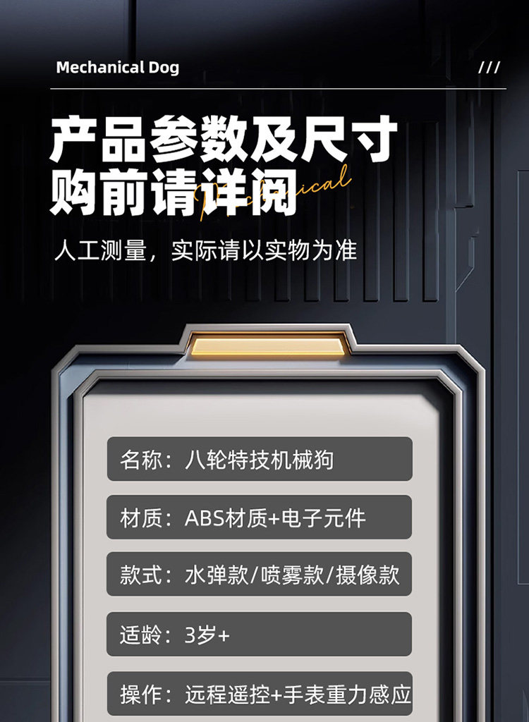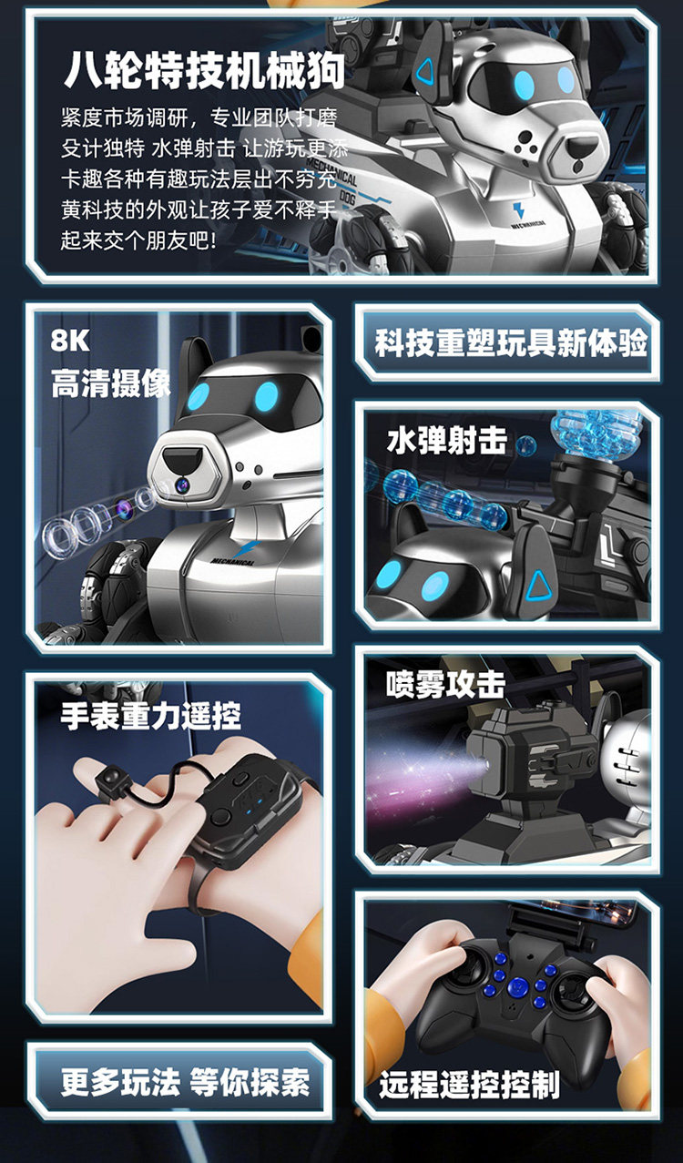 | Color Classification | Upgraded Model[Interactive Dance + Controller]Eight-Wheel Posture Switching Robot Dog,Top with Dual Controls[Interactive + Gamepad + Watch]Eight-Wheel Pose Switcher Dog,Black-Upgraded Version[Interactive Dance + Controller]Eight-Wheel Posture Switching Robot Dog,Black - Premium Dual Control[Interactive + Gamepad + Watch]Eight-Wheel Pose Switcher Dog,Advanced Remote Control Spray[Interactive + Handle]Eight-Wheel Posture Switching Robot Dog,Spray Dual Control[Interactive + Gamepad + Watch]Eight-Wheel Posture Switching Robot Dog,Black-Advanced Remote Control Spray[Interactive + Handle]Eight-Wheel Posture Switching Robot Dog,Black - Dual Spray Control[Interactive + Gamepad + Watch]Eight-Wheel Posture Switching Robot Dog,Water Bomb Battle 1W Shots[Interactive + Handle]Eight-Wheel Posture Switching Robot Dog,Water Bomb Battle 1W/Dual Control[Interactive + Gamepad + Watch]Eight-Wheel Posture Switching Robot Dog,Black - Water Bomb Battle 10,000 Rounds[Interactive + Handle]Eight-Wheel Posture Switching Robot Dog,Black - Water Bomb Battle 1W/Dual Control[Interactive + Gamepad + Watch]Eight-Wheel Posture Switching Robot Dog,Water Bomb Battle 5W Shots[Interactive + Handle]Eight-Wheel Posture Switching Robot Dog,Water Bomb Battle 5W/Dual Control[Interactive + Gamepad + Watch]Eight-Wheel Posture Switching Robot Dog,Black - Water Bomb Battle 50,000 Rounds[Interactive + Handle]Eight-Wheel Posture Switching Robot Dog,Black - Water Bomb Battle 5W/Dual Control[Interactive + Gamepad + Watch]Eight-Wheel Posture Switching Robot Dog,8K Remote Real-Time Reconnaissance Recording Video & Photo Capture[Interactive + Gamepad + Mobile Phone]Dual Control,8K Remote Real-Time Reconnaissance Recording Video & Photo Capture[Interactive + Gamepad + Mobile Phone & Watch Triple Control],Black-8K Remote Real-Time Reconnaissance Video Recording and Photo Taking[Interactive + Gamepad + Mobile Phone]Dual Control,Black-8K Remote Real-Time Reconnaissance Video Recording and Photo Taking[Interactive + Gamepad + Mobile Phone & Watch Triple Control] |