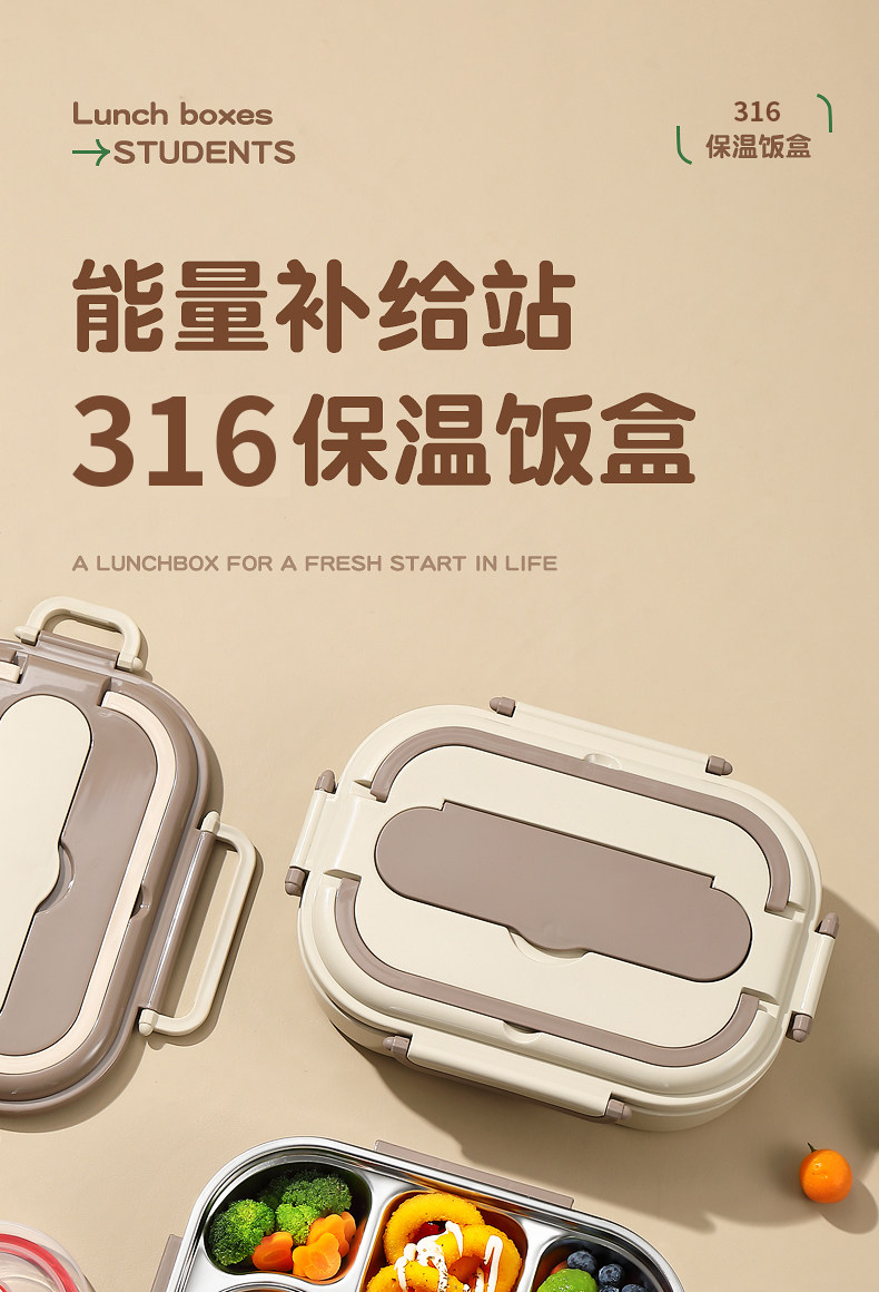 316 Stainless Steel Insulated Lunch Box, Student-Specific Portable Microwave-Heatable Food Tray, Canteen Lunch Box with Heat Preservation