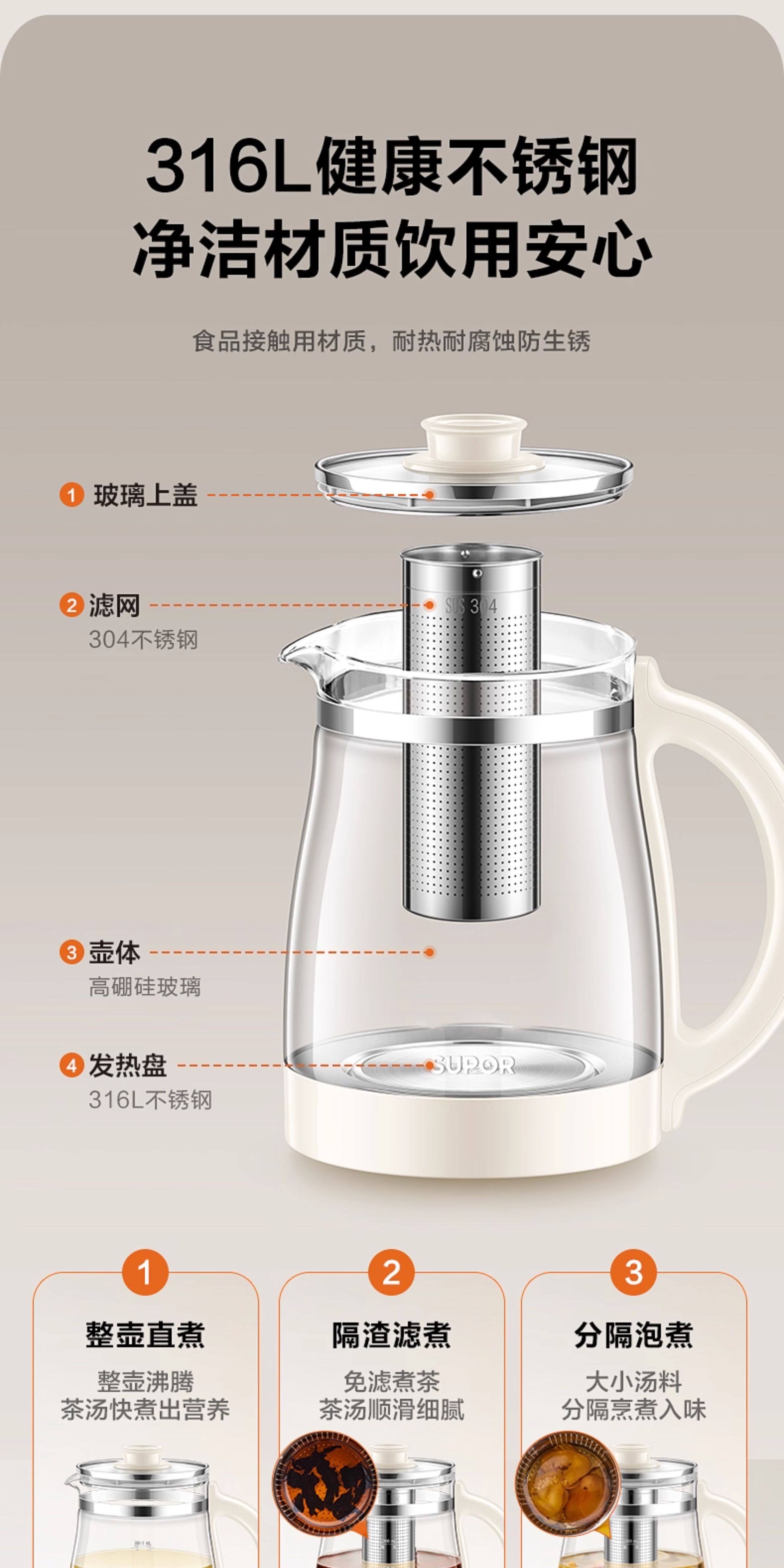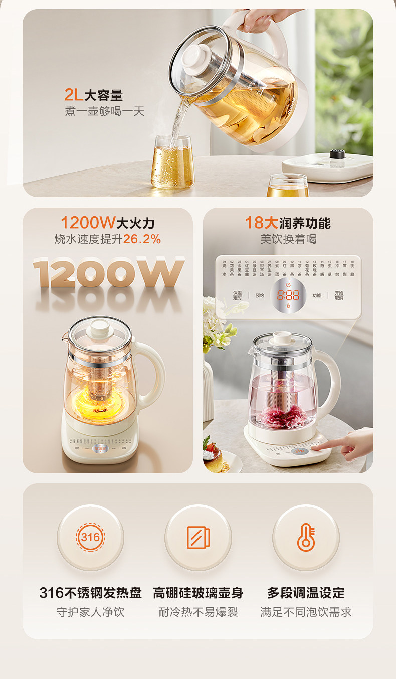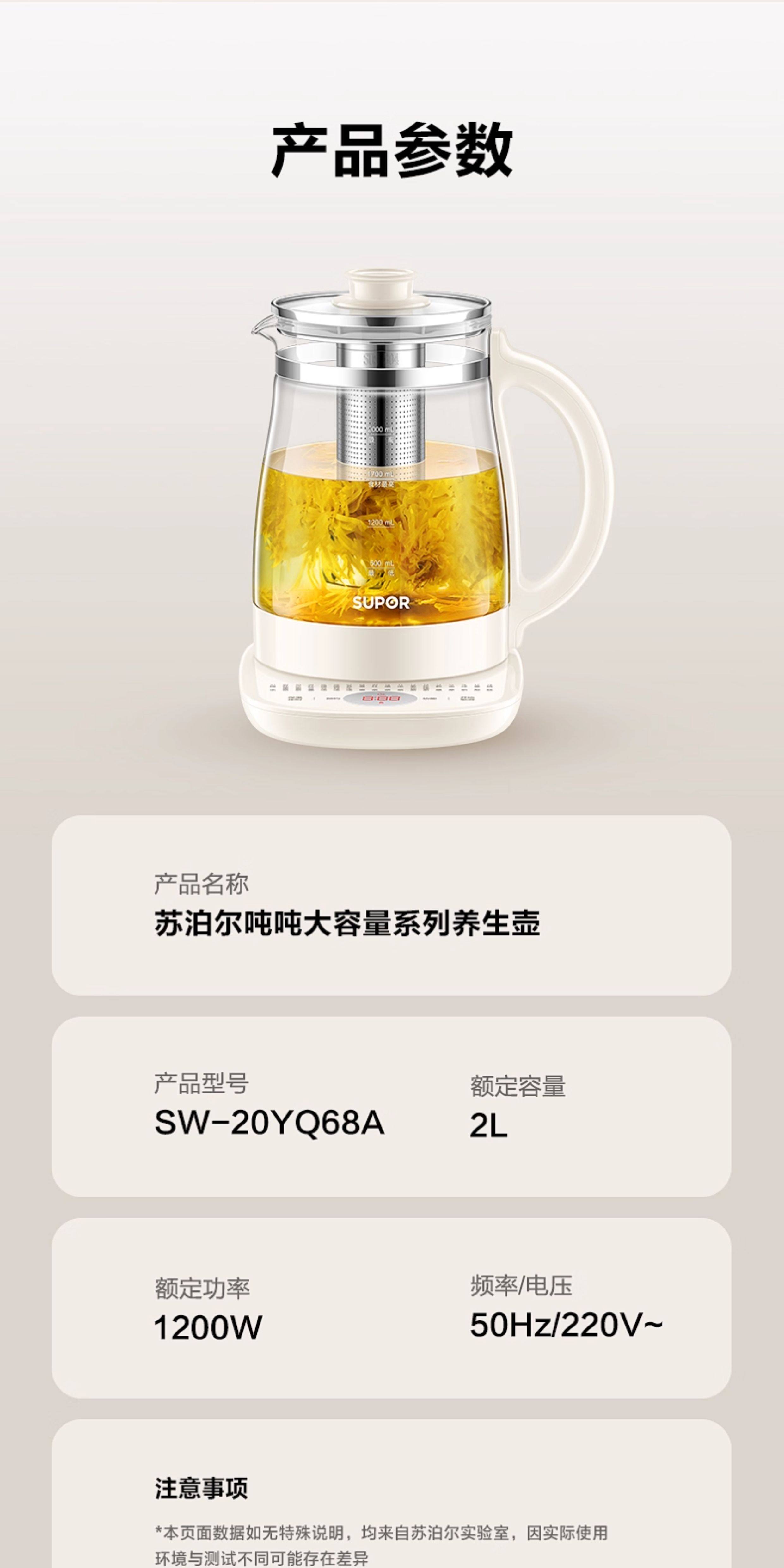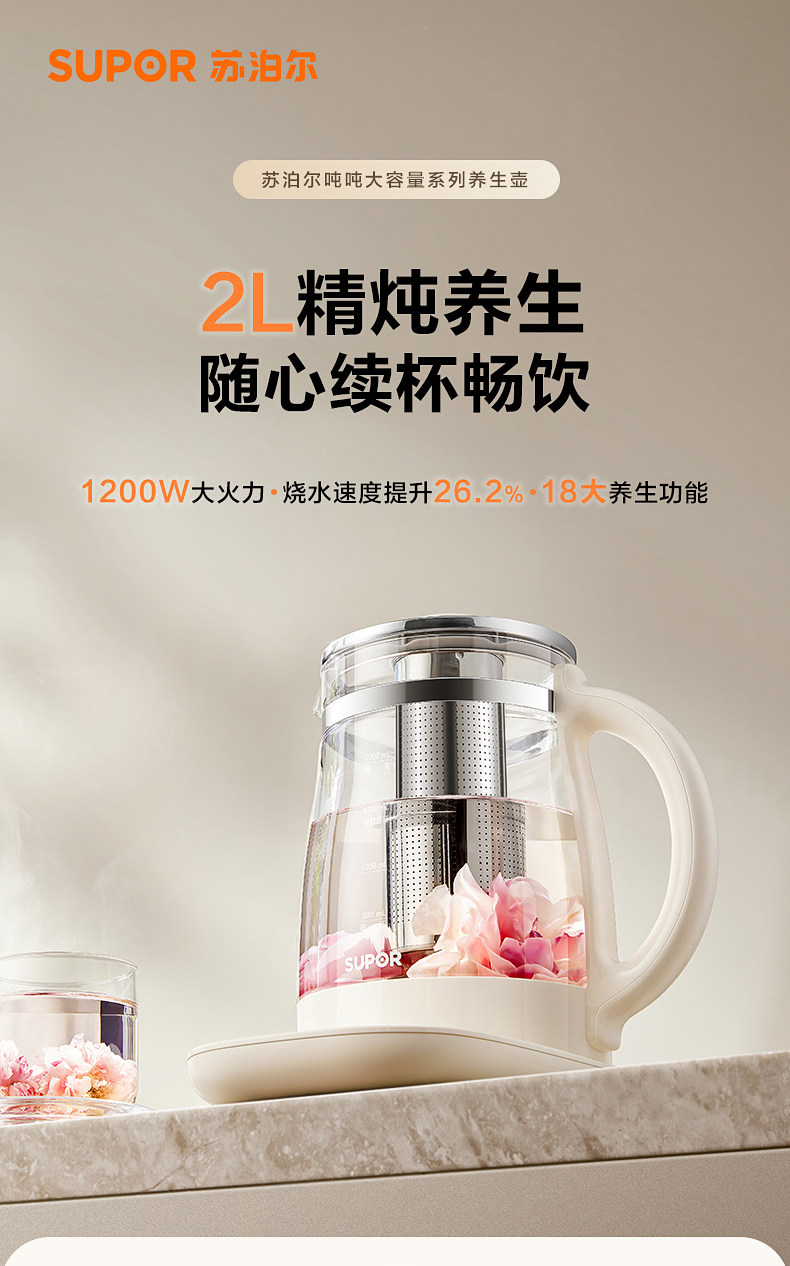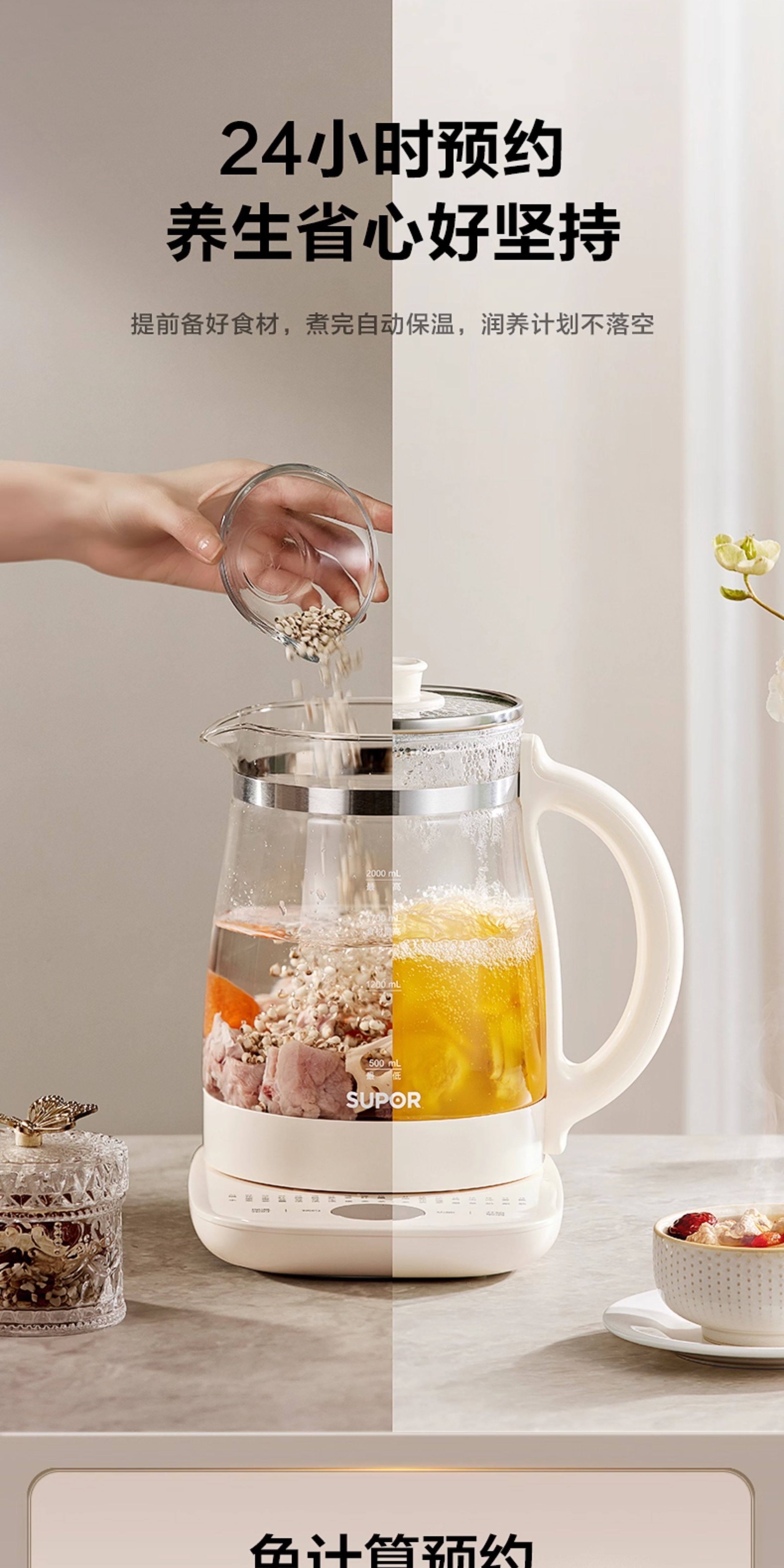 Supor 2-Liter Health Pot Stew All-In-One Household Multi-Functional Fully Automatic Boiling Water Teapot Medicated Meal Pot New Style