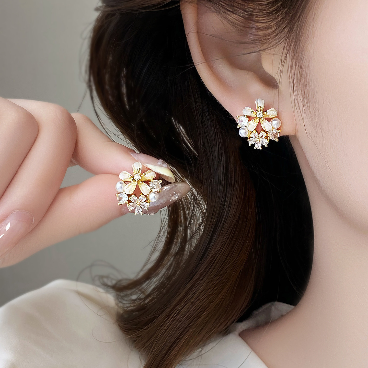 Fresh and Simple Flower Earrings 2026 New Popular Style, High-End, Popular, Feminine, Suitable for Round Faces, Women's Earrings