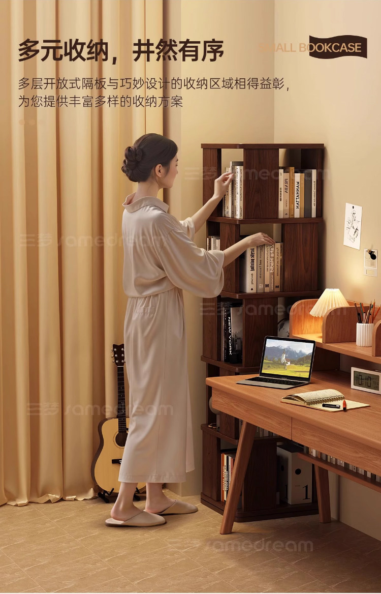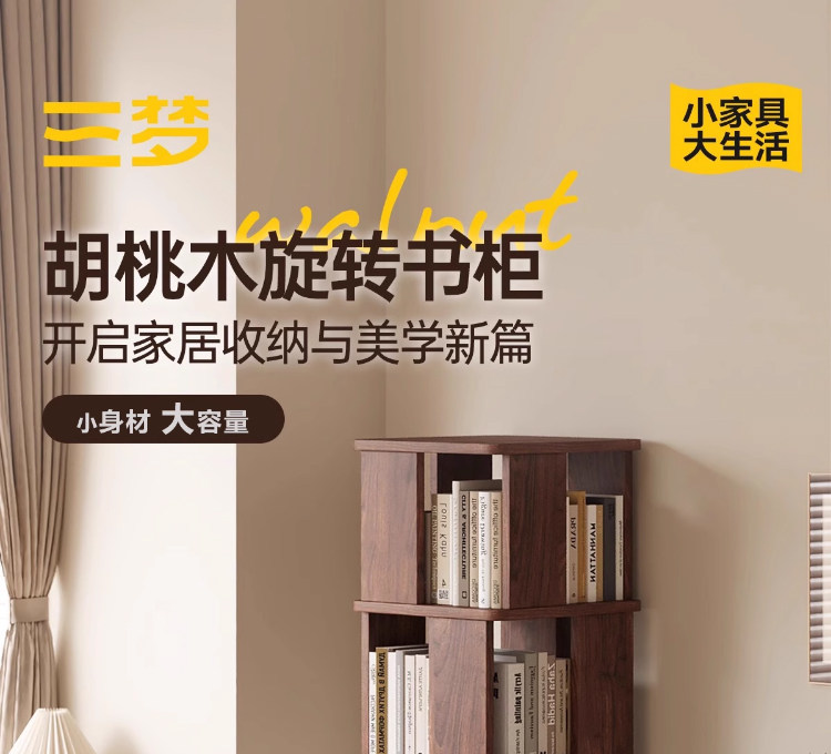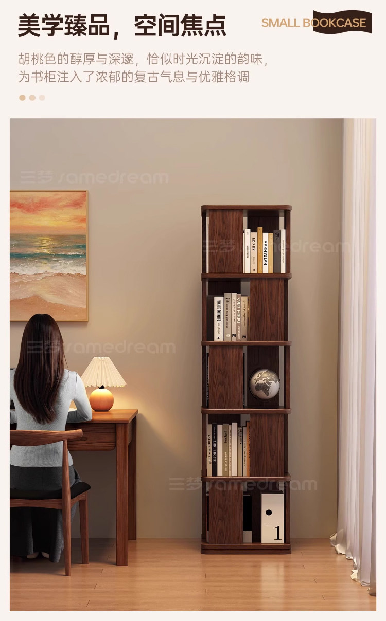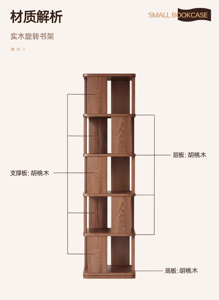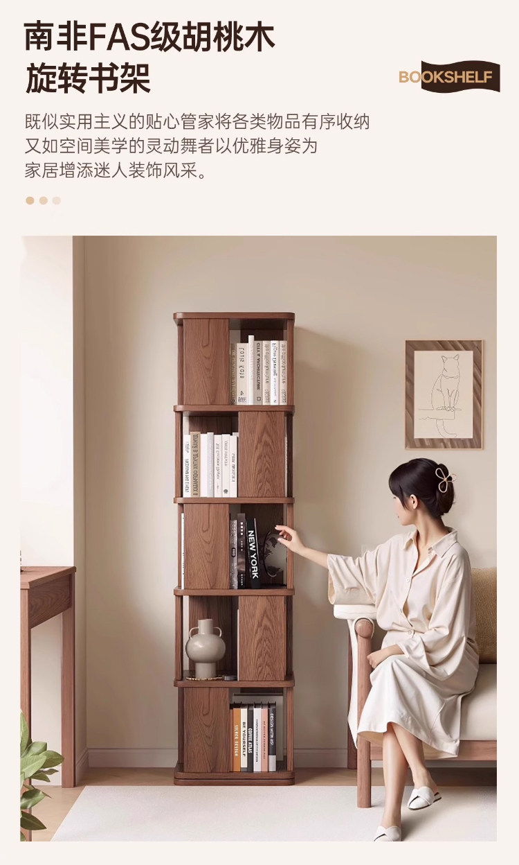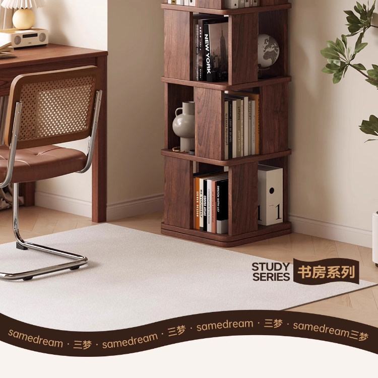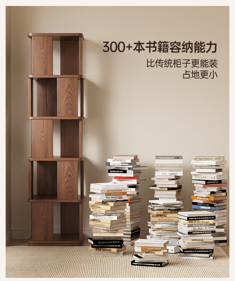 Sanmeng Rotating Bookshelf 360-Degree Solid Wood Bookcase Floor-Standing Storage Rack Integrated Wall-Mounted Living Room Home Storage Cabinet