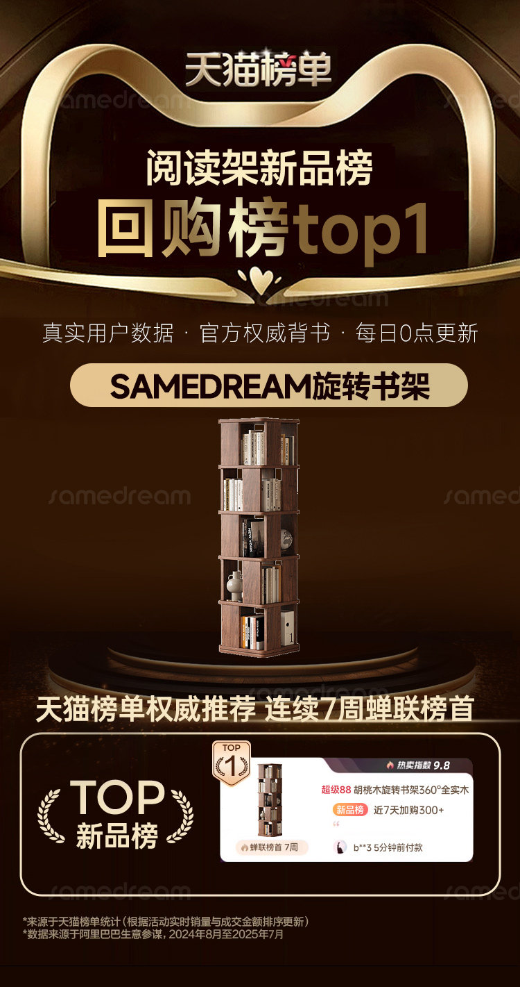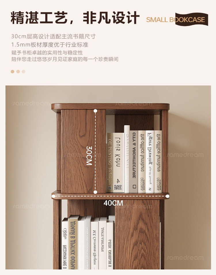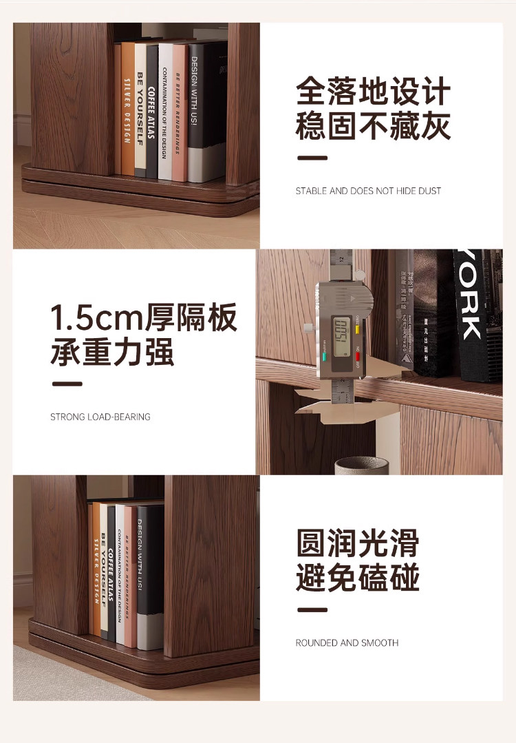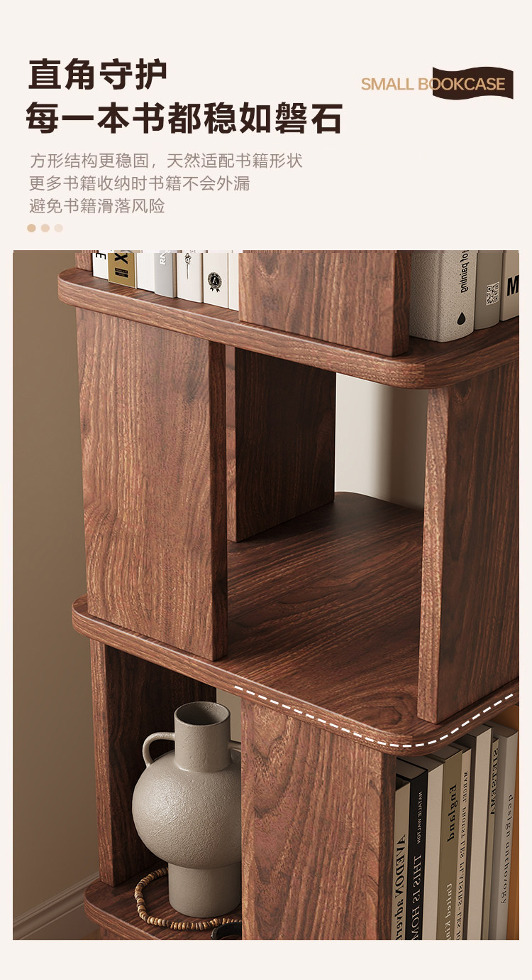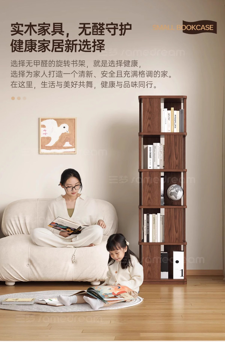 Sanmeng Rotating Bookshelf 360-Degree Solid Wood Bookcase Floor-Standing Storage Rack Integrated Wall-Mounted Living Room Home Storage Cabinet