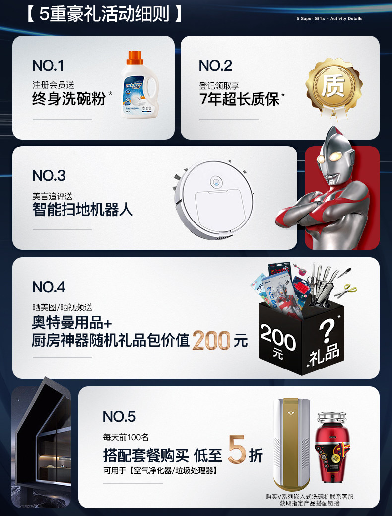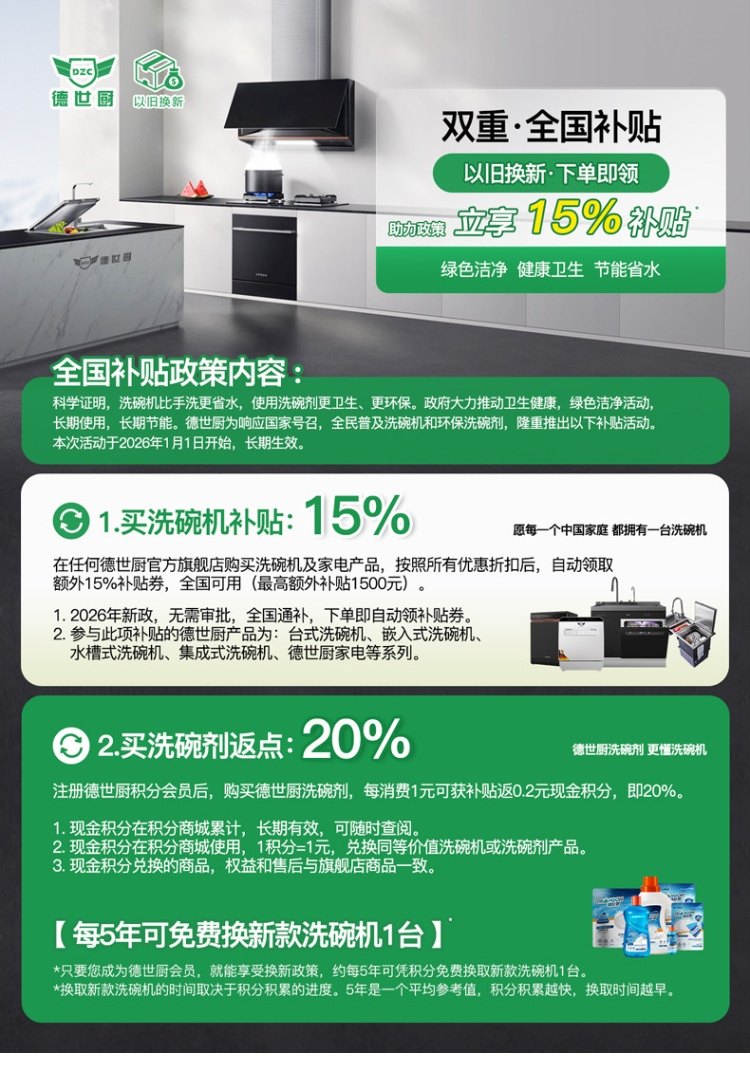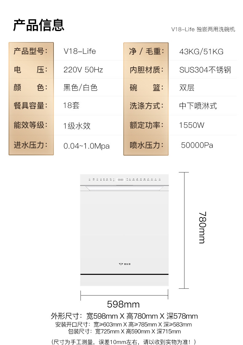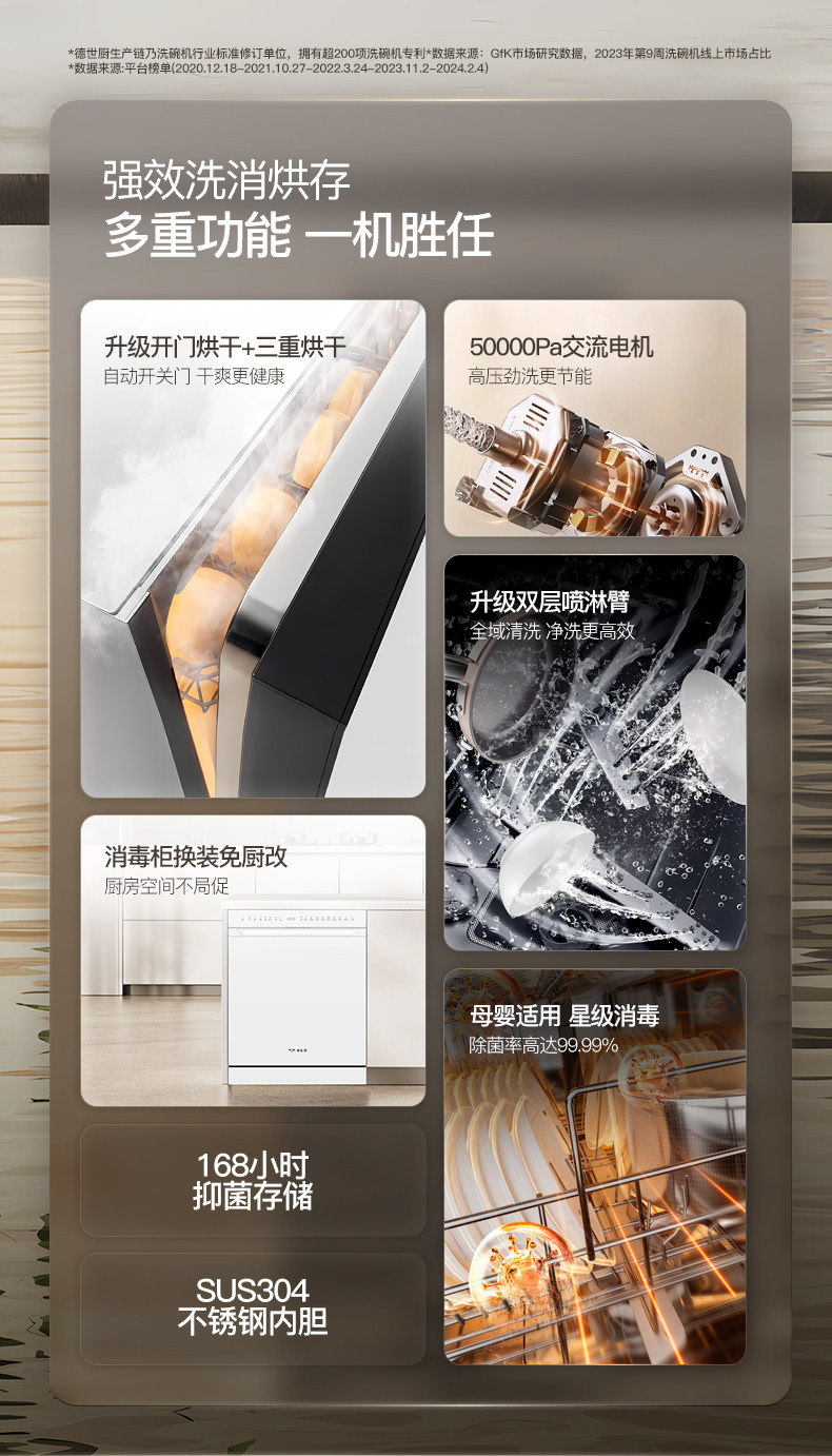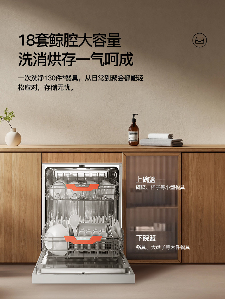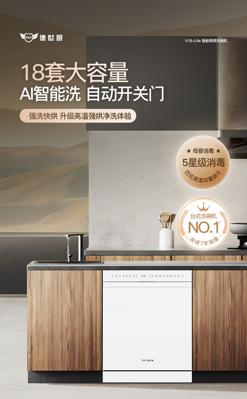 Deshi Kitchen's New Product V18-Life First-Class Water Efficiency Embedded Dishwasher with Disinfection and Drying, Smart and Fully Automatic for Home Use
