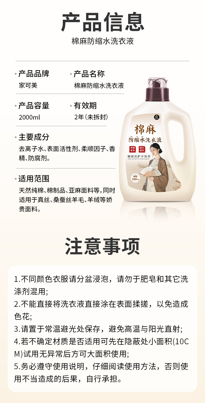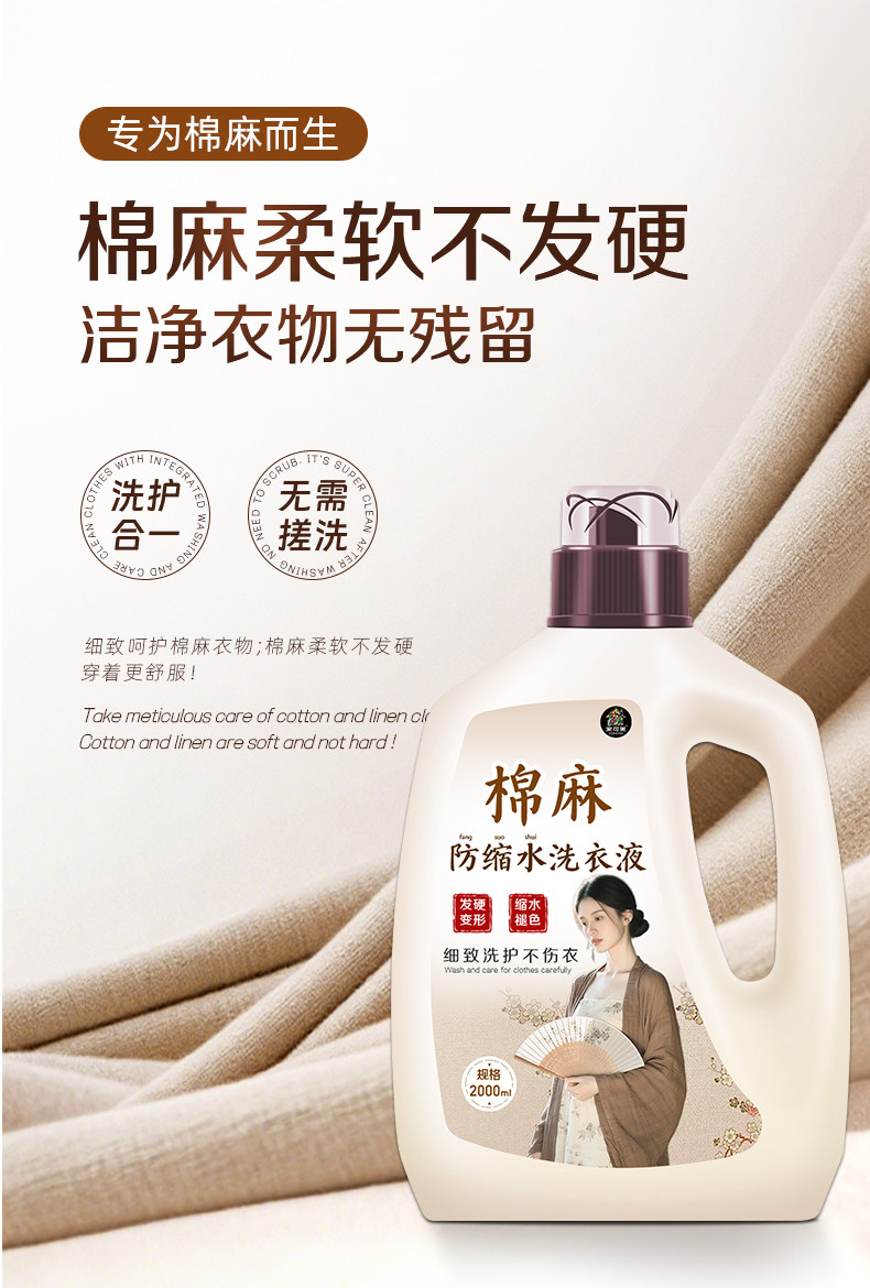 Special Laundry Detergent for Cotton, Linen, and Pure Cotton, Neutral for Silk, Color-Protecting, Fragrance-Retaining, Anti-Wrinkle, Anti-Shrinkage Care Detergent