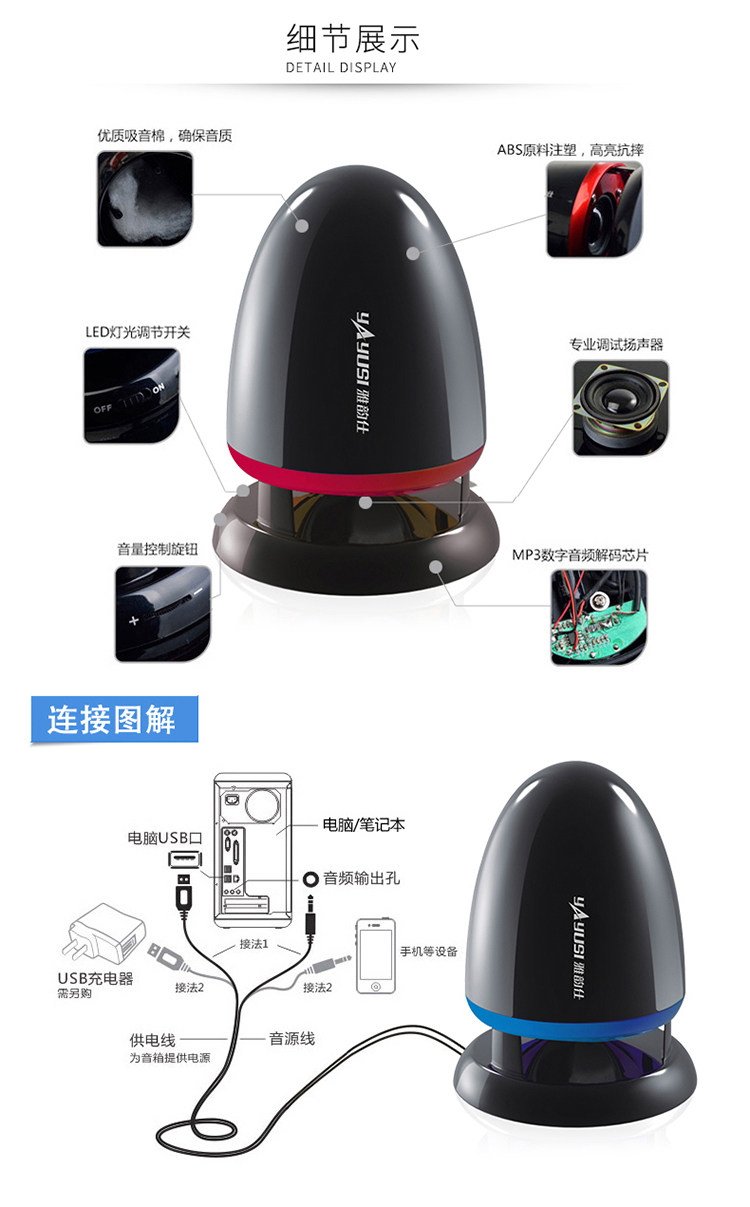 Yayunshi A801 Computer Audio Desktop External Home Wired High-Quality Speaker Plug-In Single 2025 New Model