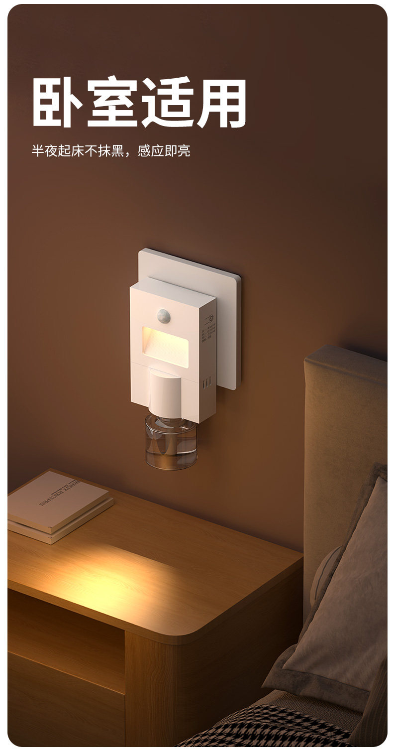 Induction Night Light with Timer, Electric Mosquito Repellent, Mosquito Repellent Liquid Heater, Mosquito Repellent Device, Plug-In Type for Home Use