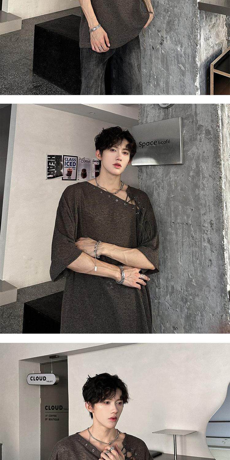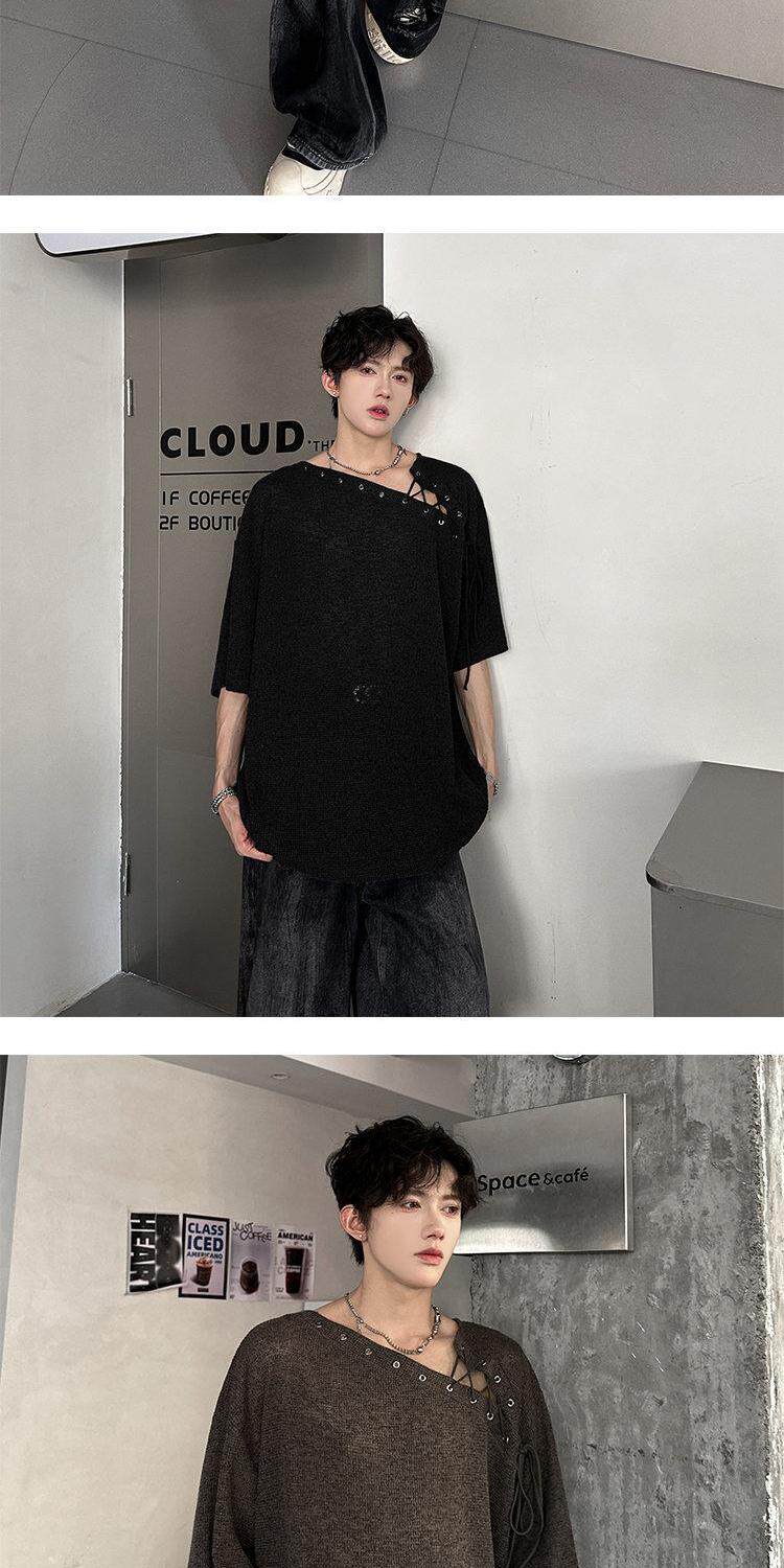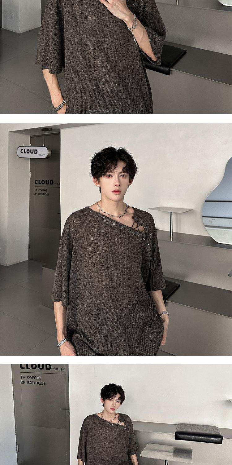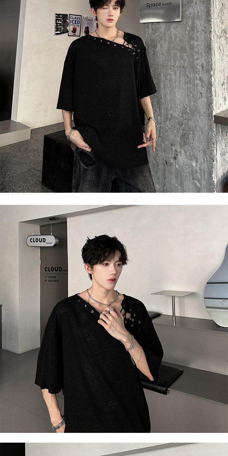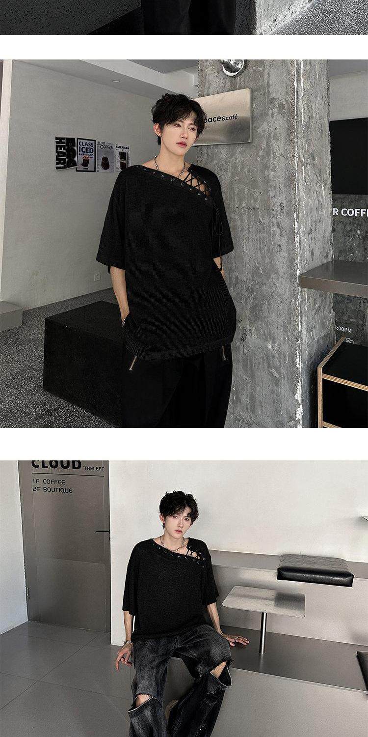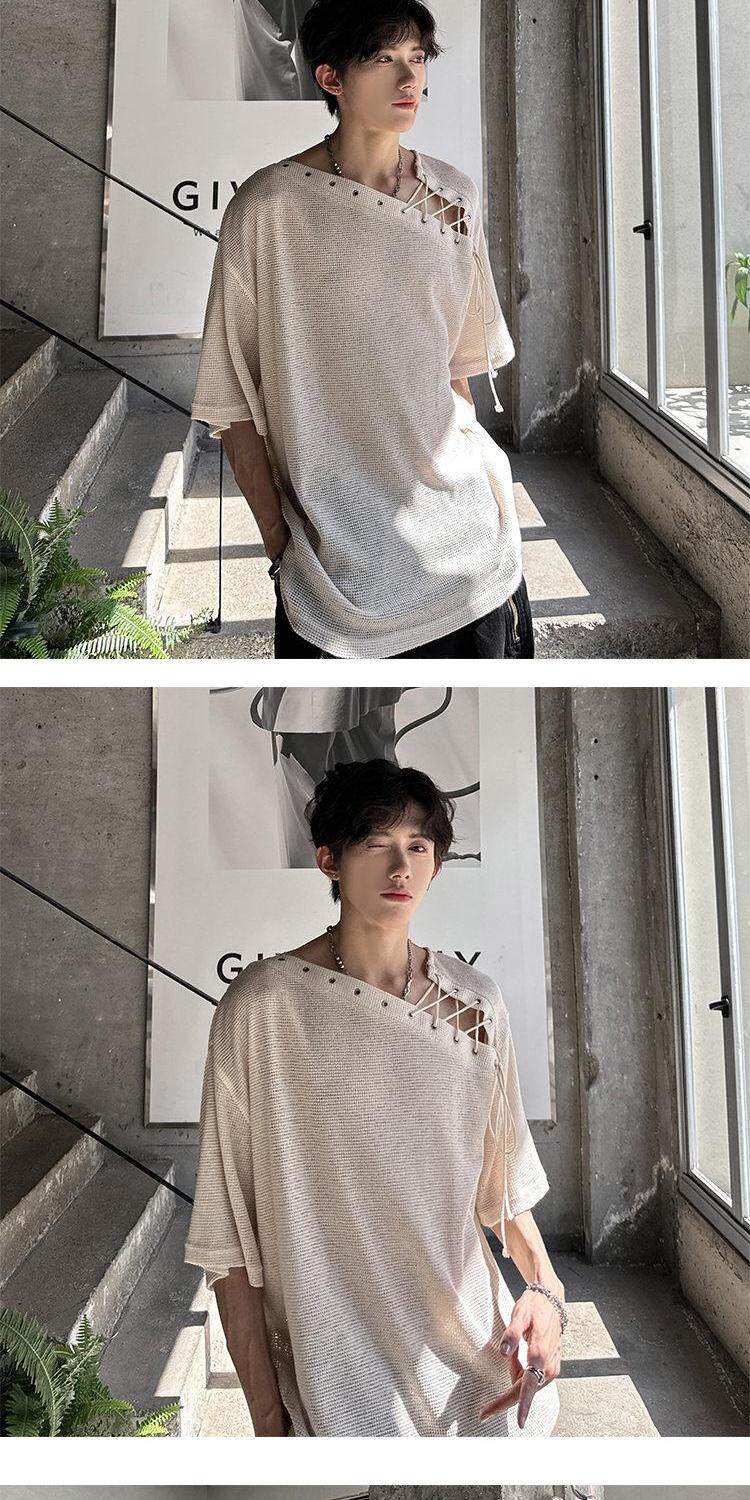 Irregular Design, Tie-Up, Off-Shoulder, Short-Sleeved, Unisex, Popular Summer Outfit, Niche, Relaxed Knit T-Shirt