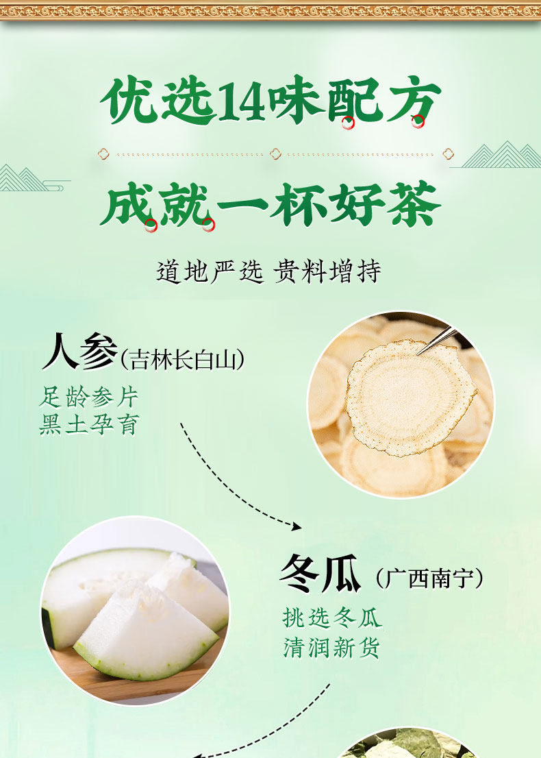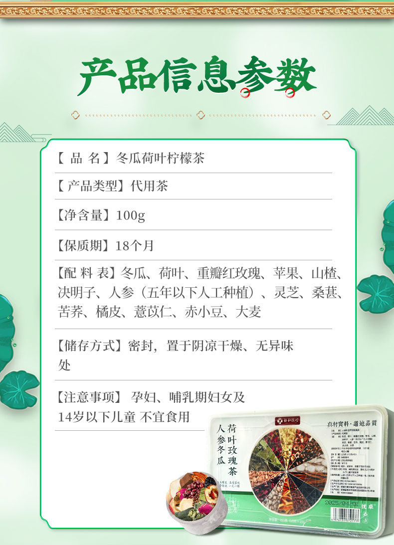 | Series | Customized Youzhuo Ginseng, Winter Melon, Lotus Leaf and Rose Tea 225G/Box |