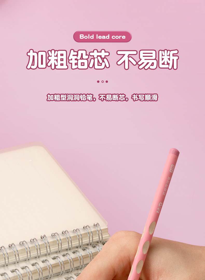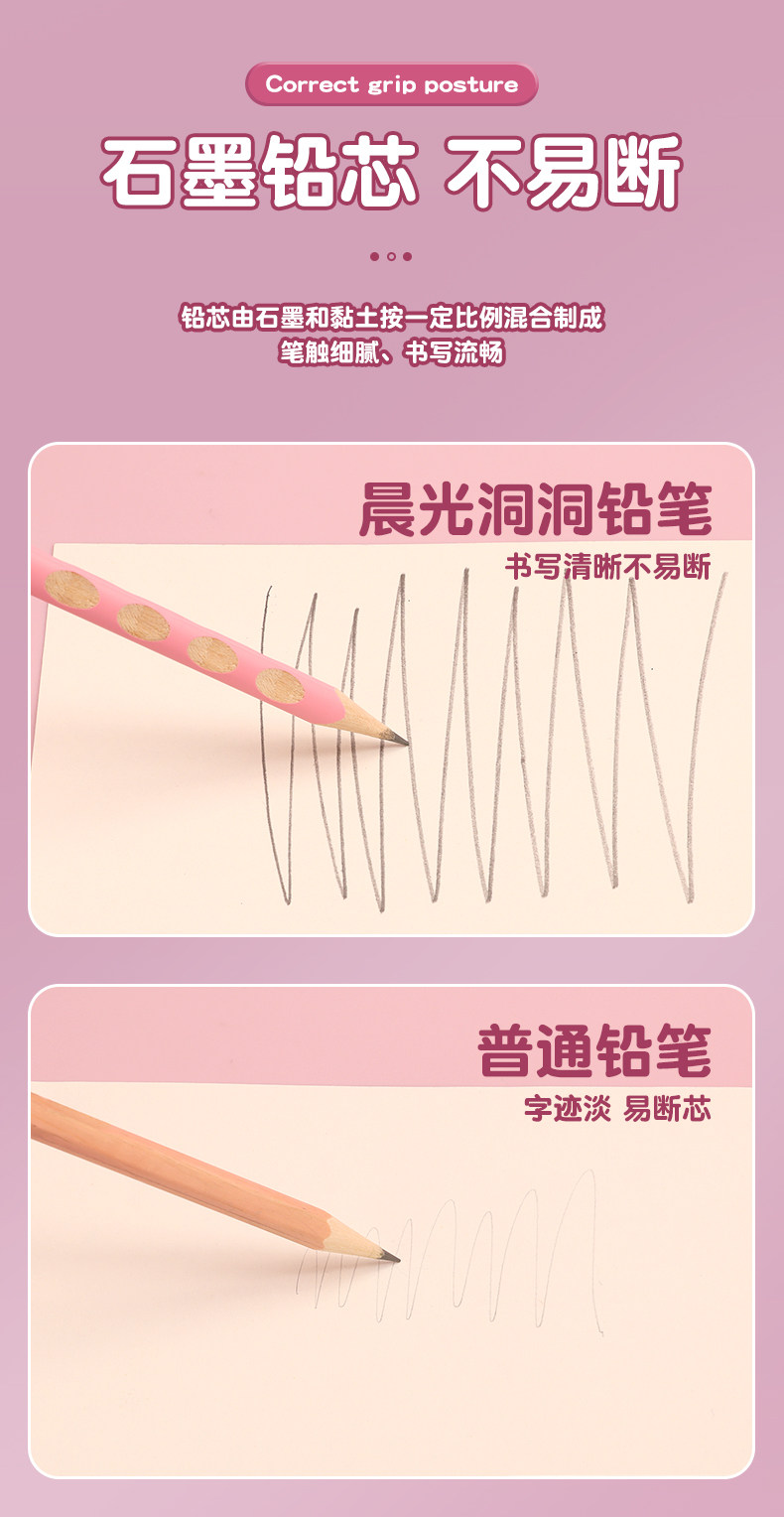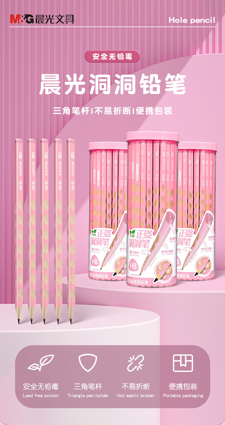 Morning Light Hole Pencil Primary School Students Non-Toxic First Grade Kindergarten Thick Rod Special Thick Hole Pen Large Triangle Rod Student Kidsren Genuine Hb Positive Posture 2B2 Than Beginners Posture Correction Cherry Blossom Powder