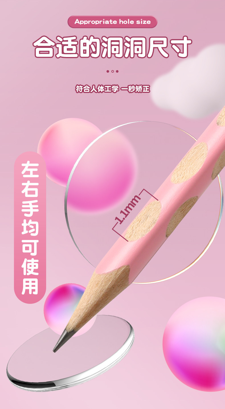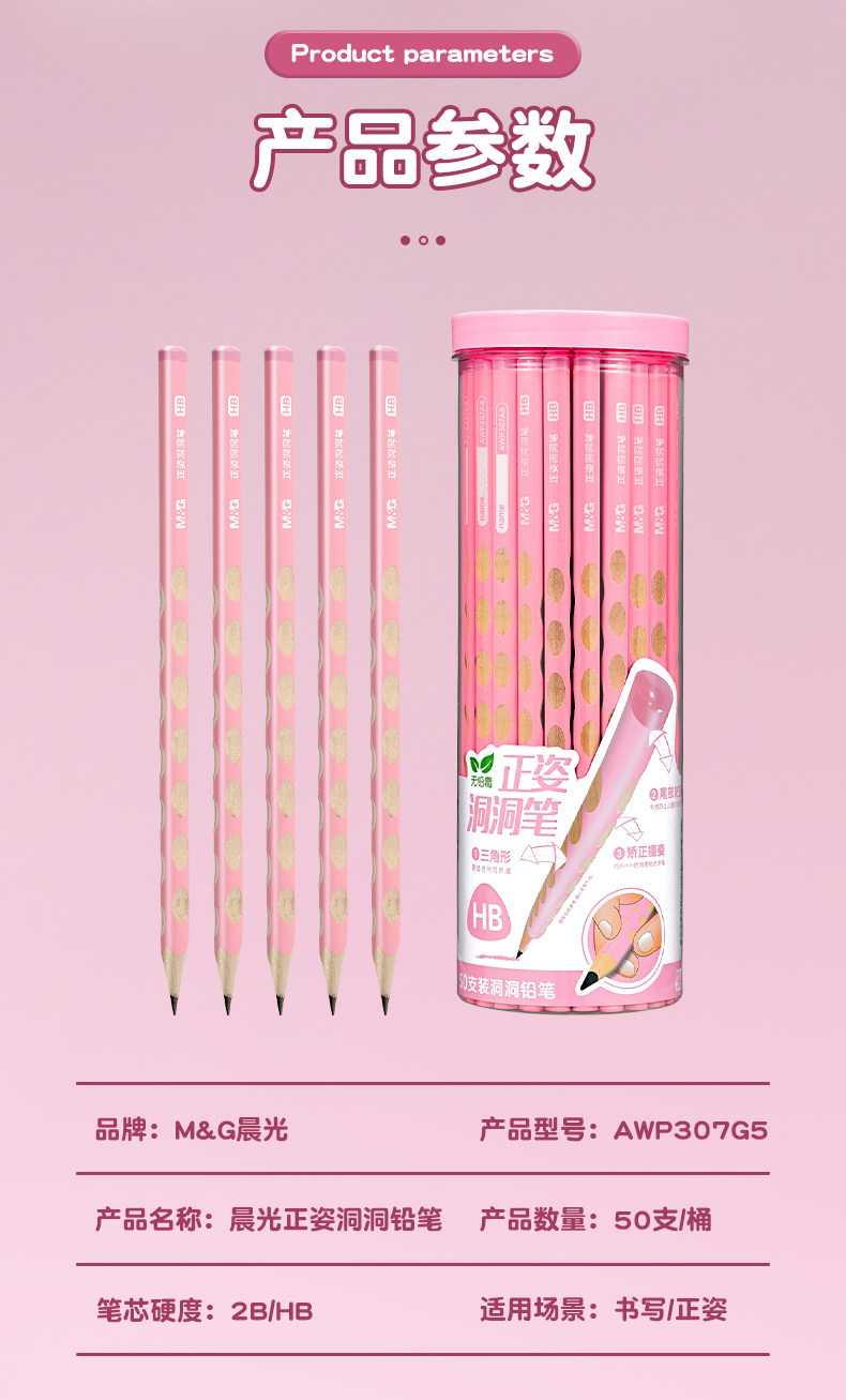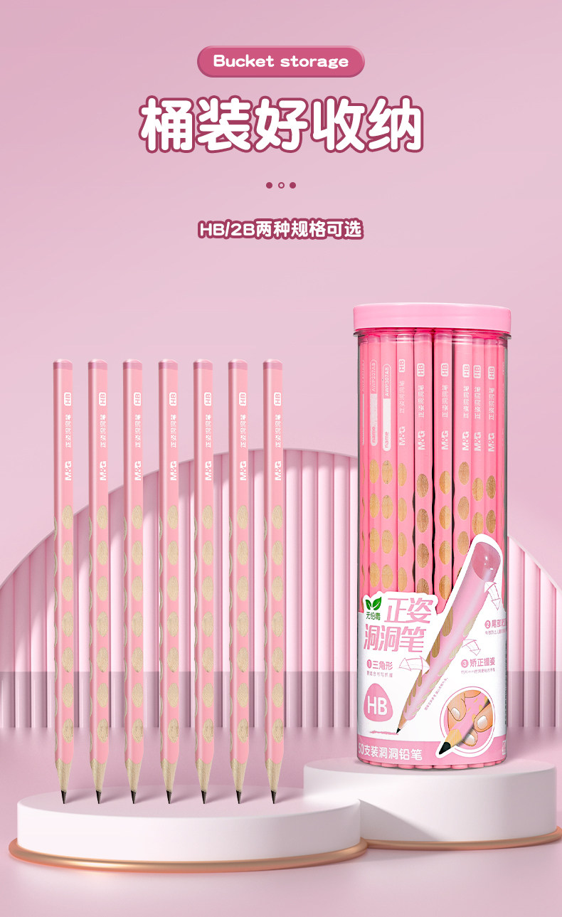 Morning Light Hole Pencil Primary School Students Non-Toxic First Grade Kindergarten Thick Rod Special Thick Hole Pen Large Triangle Rod Student Kidsren Genuine Hb Positive Posture 2B2 Than Beginners Posture Correction Cherry Blossom Powder