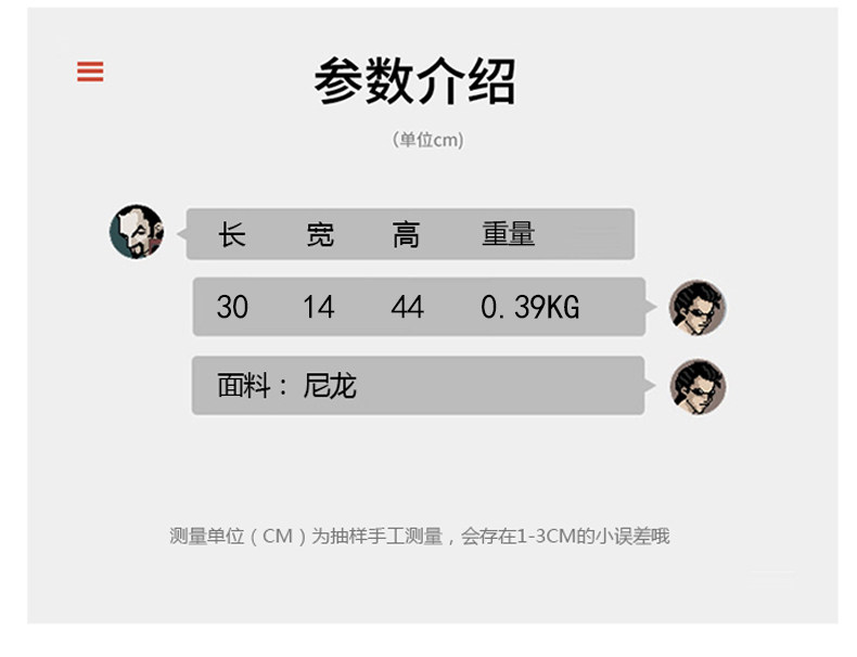 | Color Classification | Black (Single Bag Without Pendant),Blue (Single Package Without Pendant),Khaki (Single Bag Without Pendant),Red (Single Package Without Pendant),Black + Pendant,Blue + Charm,Khaki + Pendant,Red + Pendant |