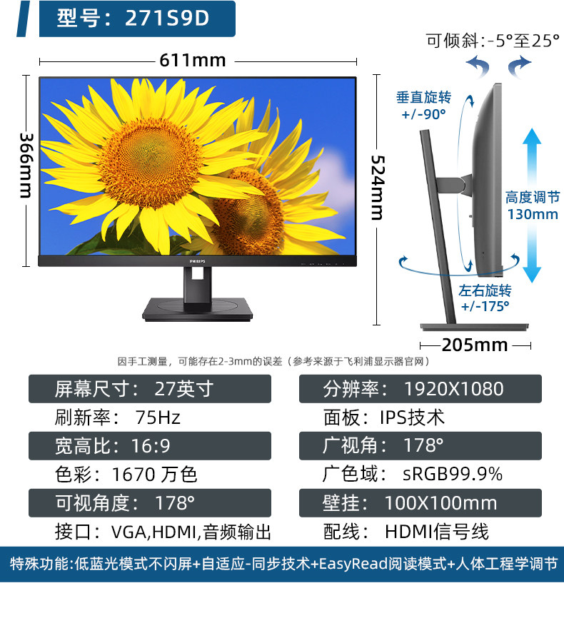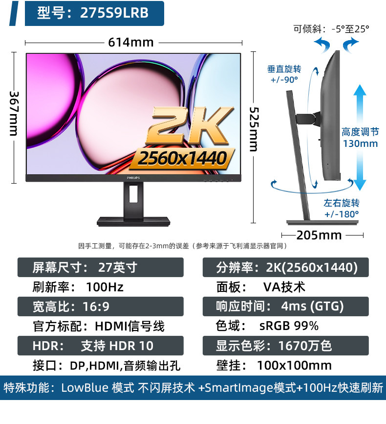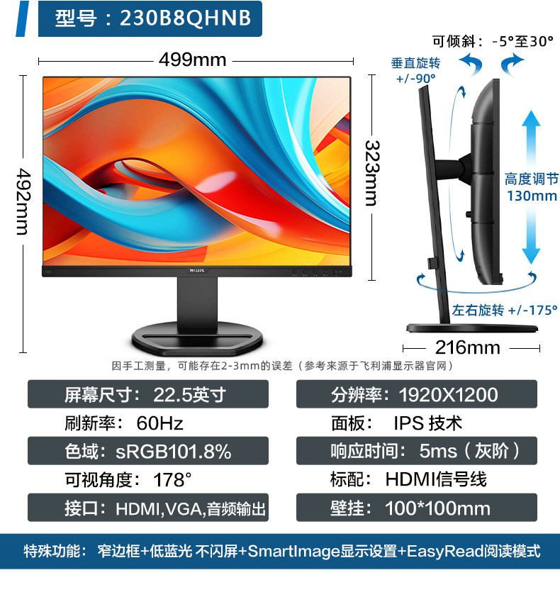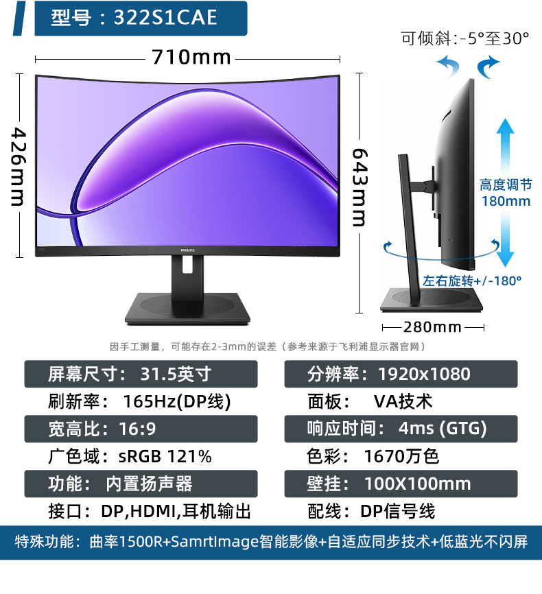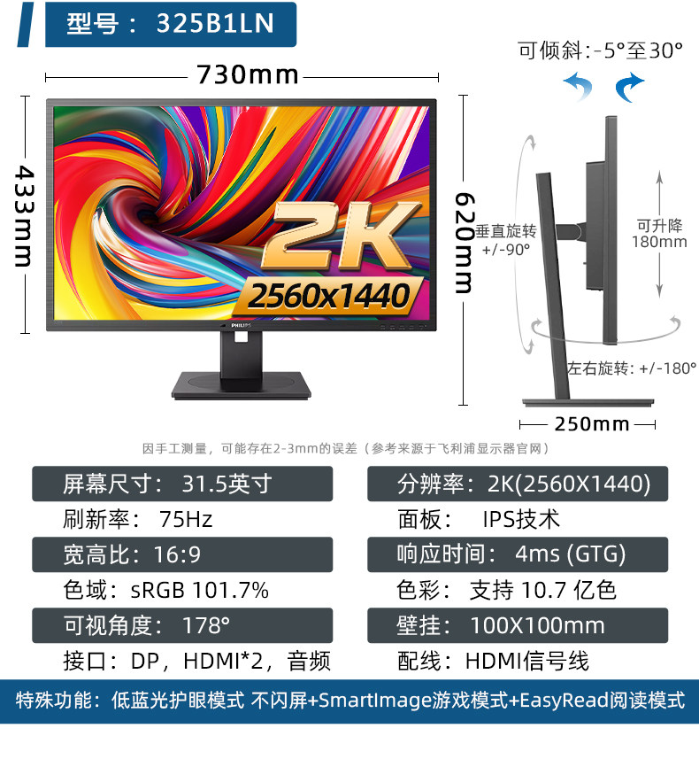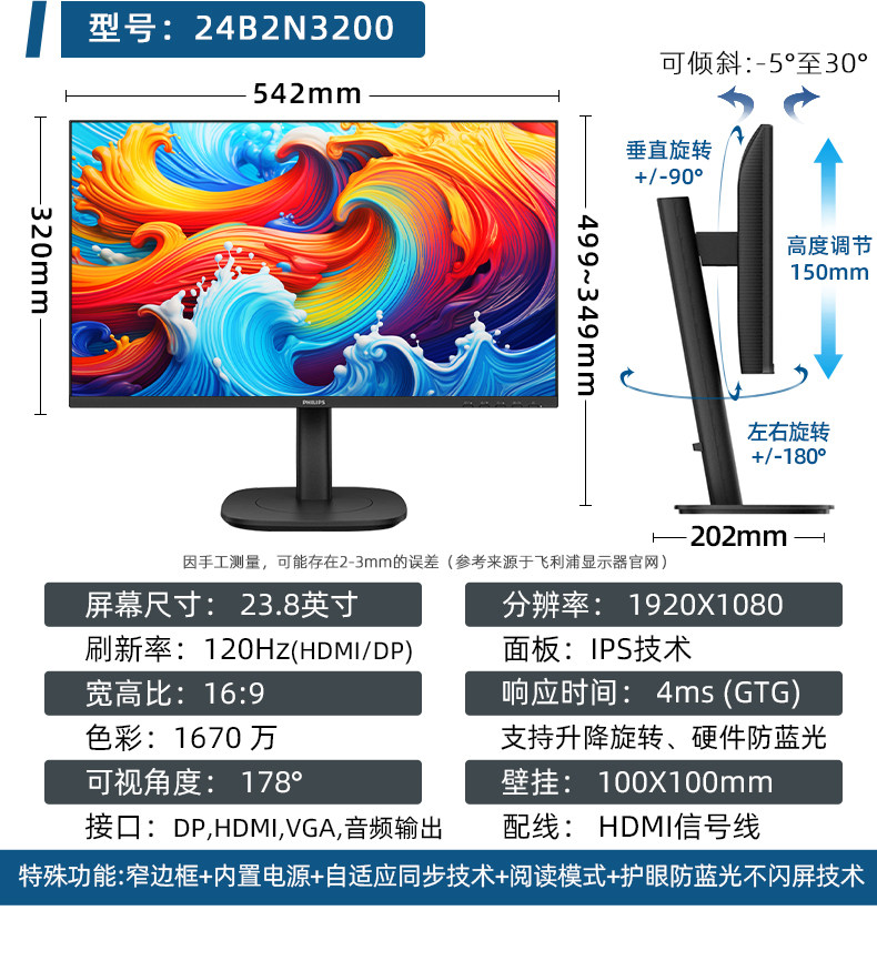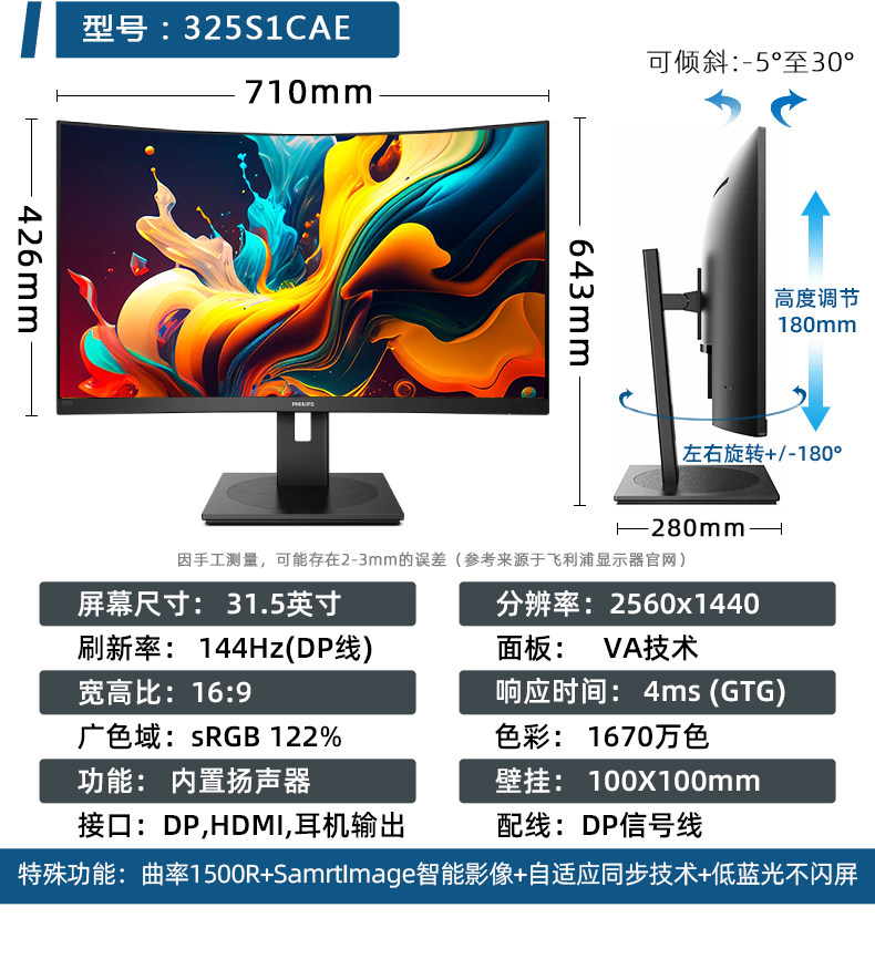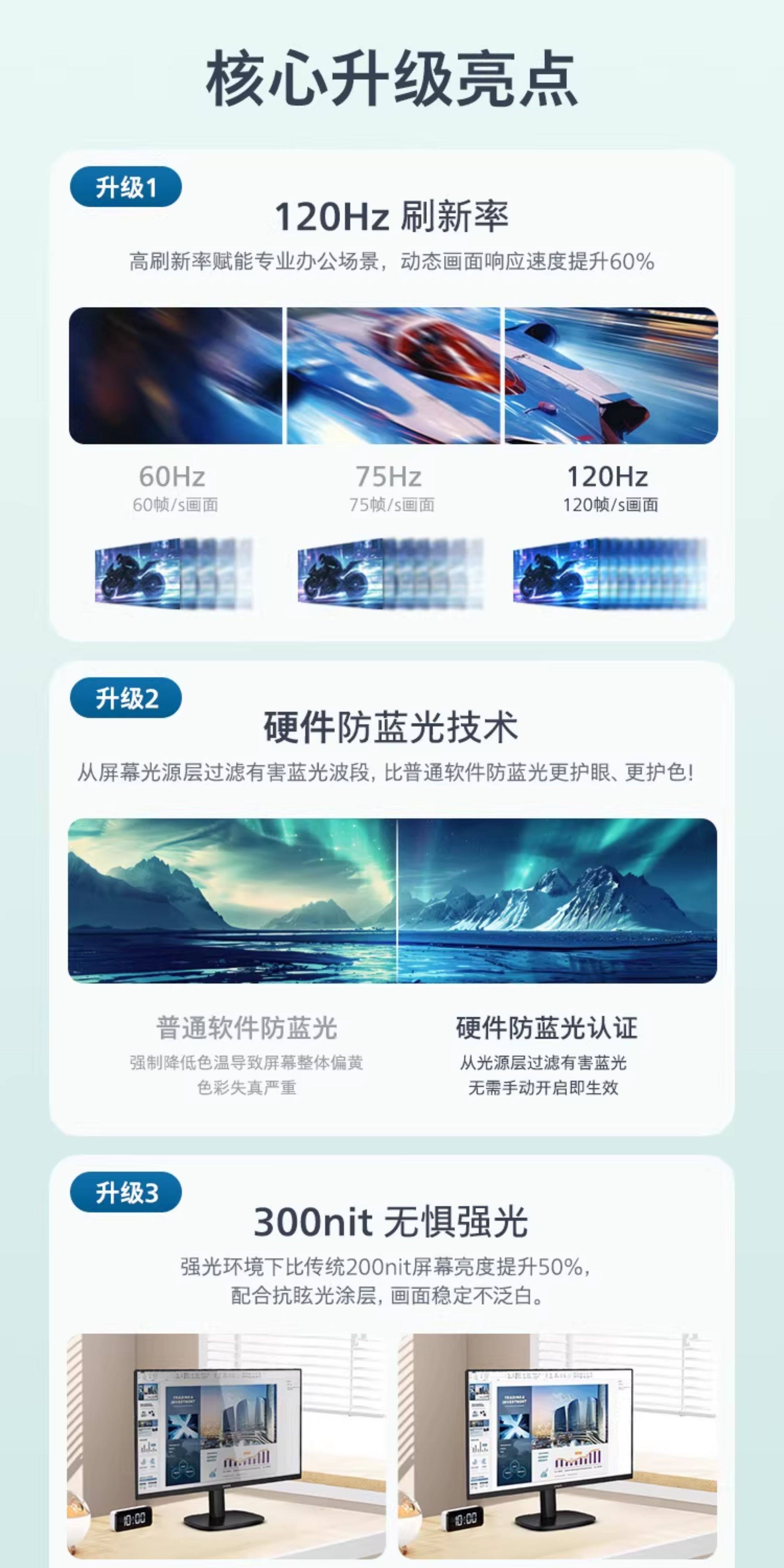 | Color Classification | 230B8QHNB[22.5inch /Fhd/120Hz/Low Anti-Blue Light/Lift and Rotate],24B2N3200[23.8inch /Fhd/120Hz/Hardware Anti-Blue Light/Lift and Rotate],275S9LRB[2K Hd 100Hz/Low Blue Light/Lift and Rotate],27B1N5500B[2K Hd 100Hz/Low Blue Light/Lift and Rotate],322S1CAE[31.5inch Curved Screen/165Hz/Built-In Speaker/Lift and Rotate (No Vertical Rotation)/Low Blue Light],325B1LN[31.5inch /2K/ Low Blue Light/Lift and Rotate],325S1CAE[31.5inch Curved Screen/2K/144Hz/Low Blue Light/Lift and Rotate (No Vertical Rotation)] |
