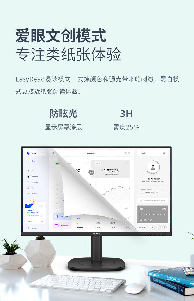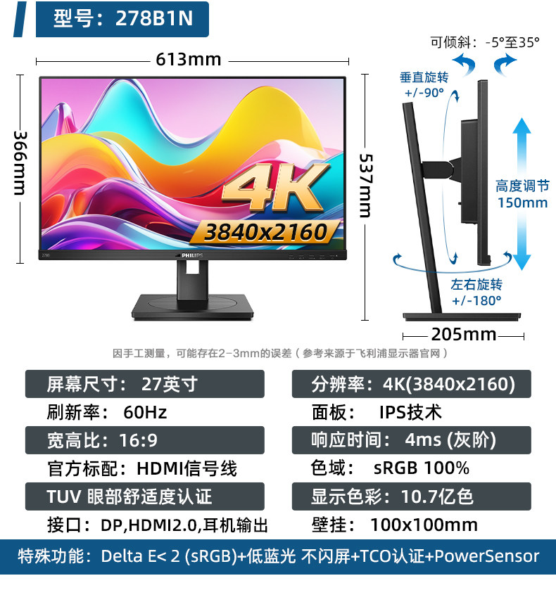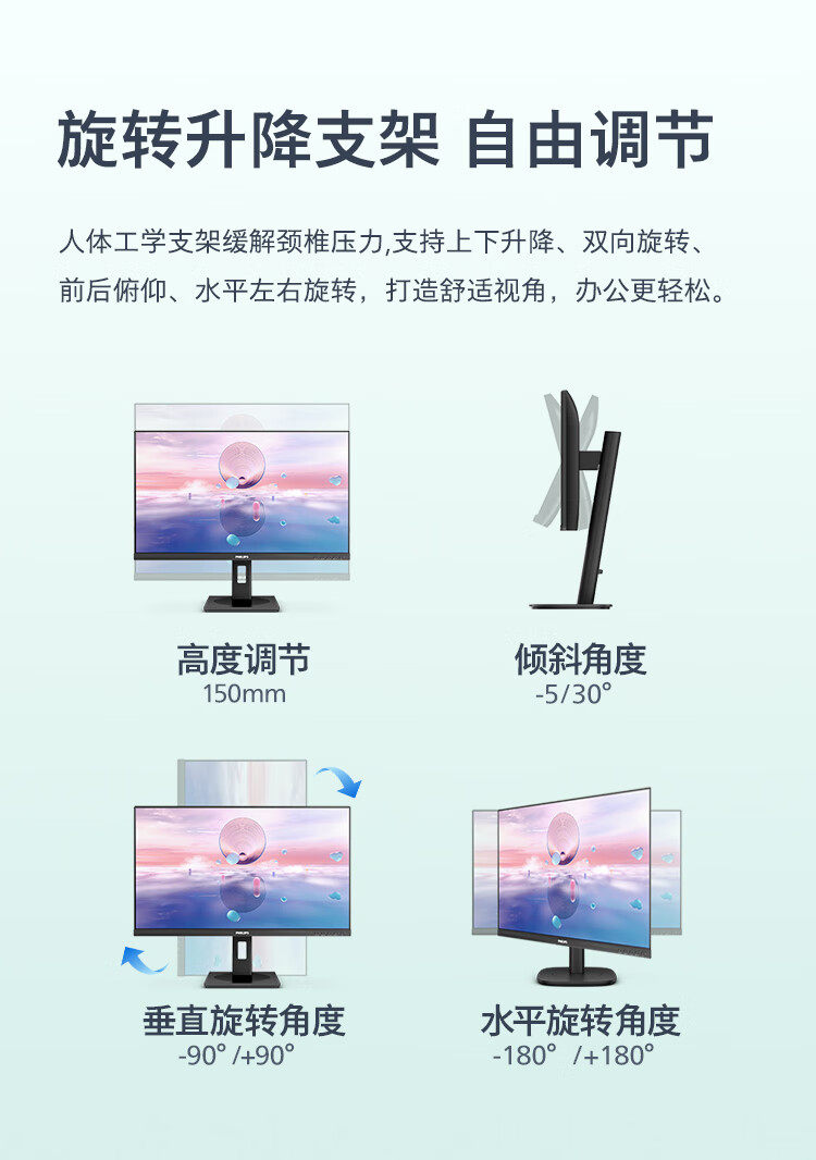 Philips Adjustable and Rotating Computer Monitor 2K4 Programmer Designer Vertical Screen 144Hz Anti-Blue Light Eye Protection Screen