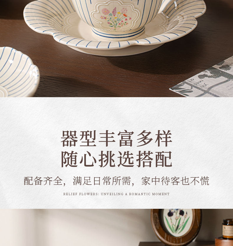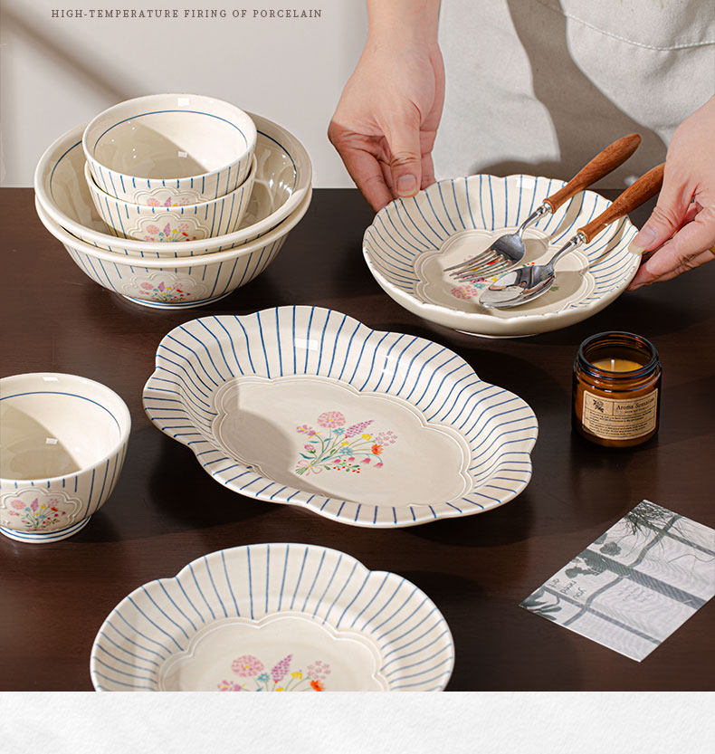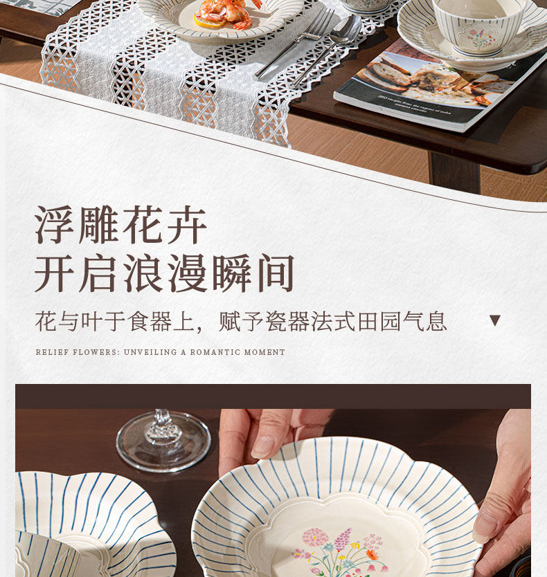 French-Style Embossed Flower Tableware Set, High-Value Ceramic Bowls and Plates for Home Use, Housewarming and Wedding Gift Box, 2026 New Model