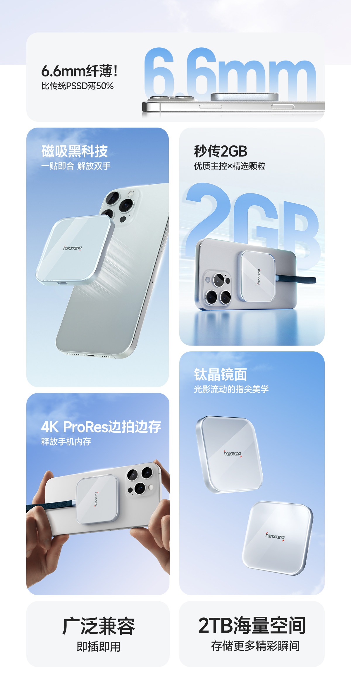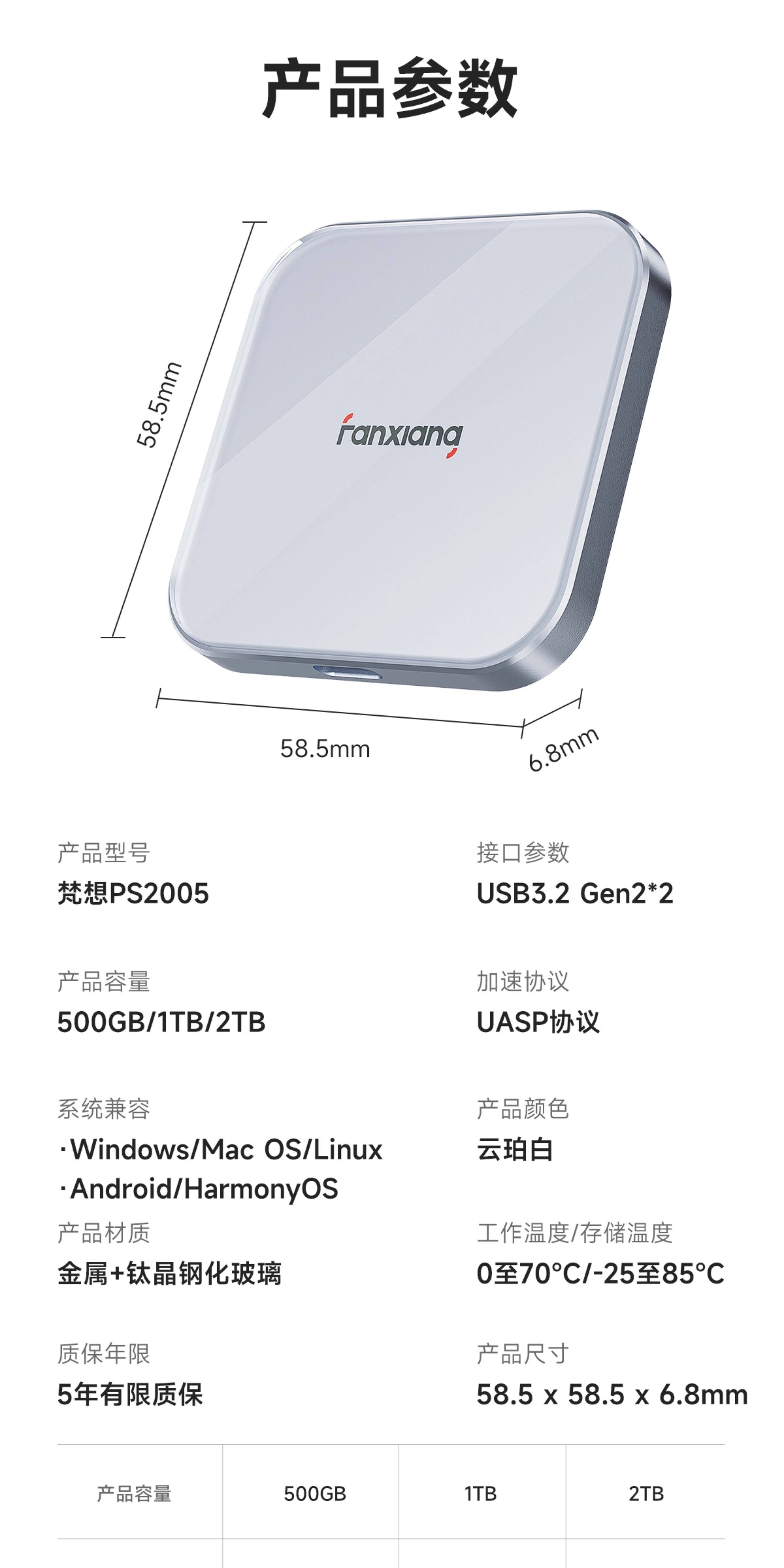 Fanxiang Mobile Solid-State Drive Ps2005 Magnetic 1Tb Large Capacity Suitable for Apple Mobile Phones and Computers External Pssd